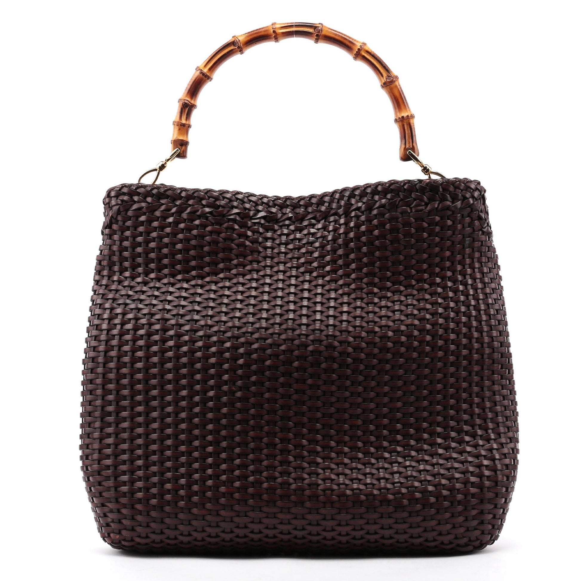 1996 Large Brown Woven Bamboo 2-Way Bag
