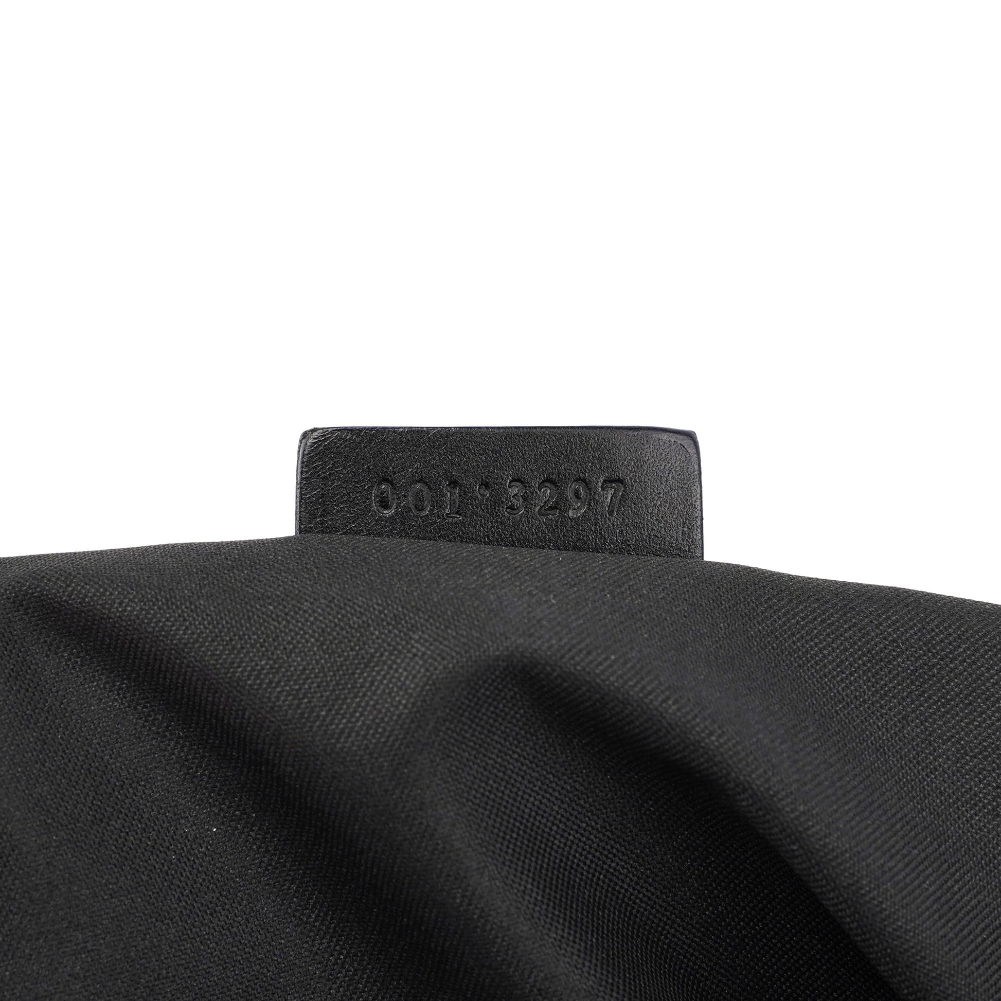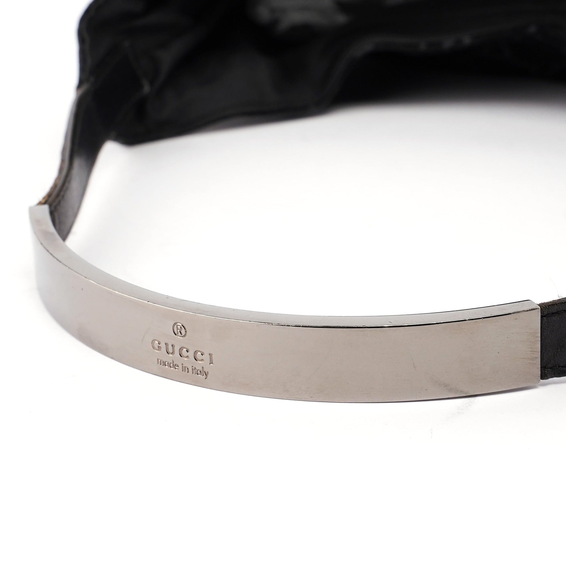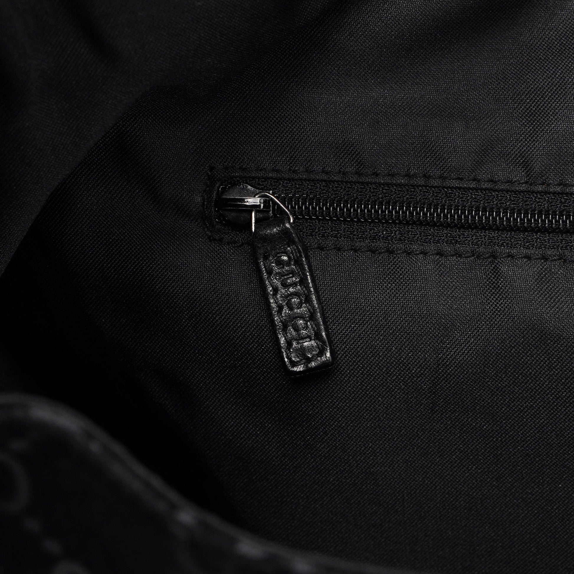Unveil the elegance of the Gucci GG suede shoulder bag, designed by Tom Ford in 1997. This luxurious piece features silver-tone hardware with engraved Gucci logo, complemented by black calfskin leather trim. The interior compartment is lined in satin, featuring a convenient zipper pocket.