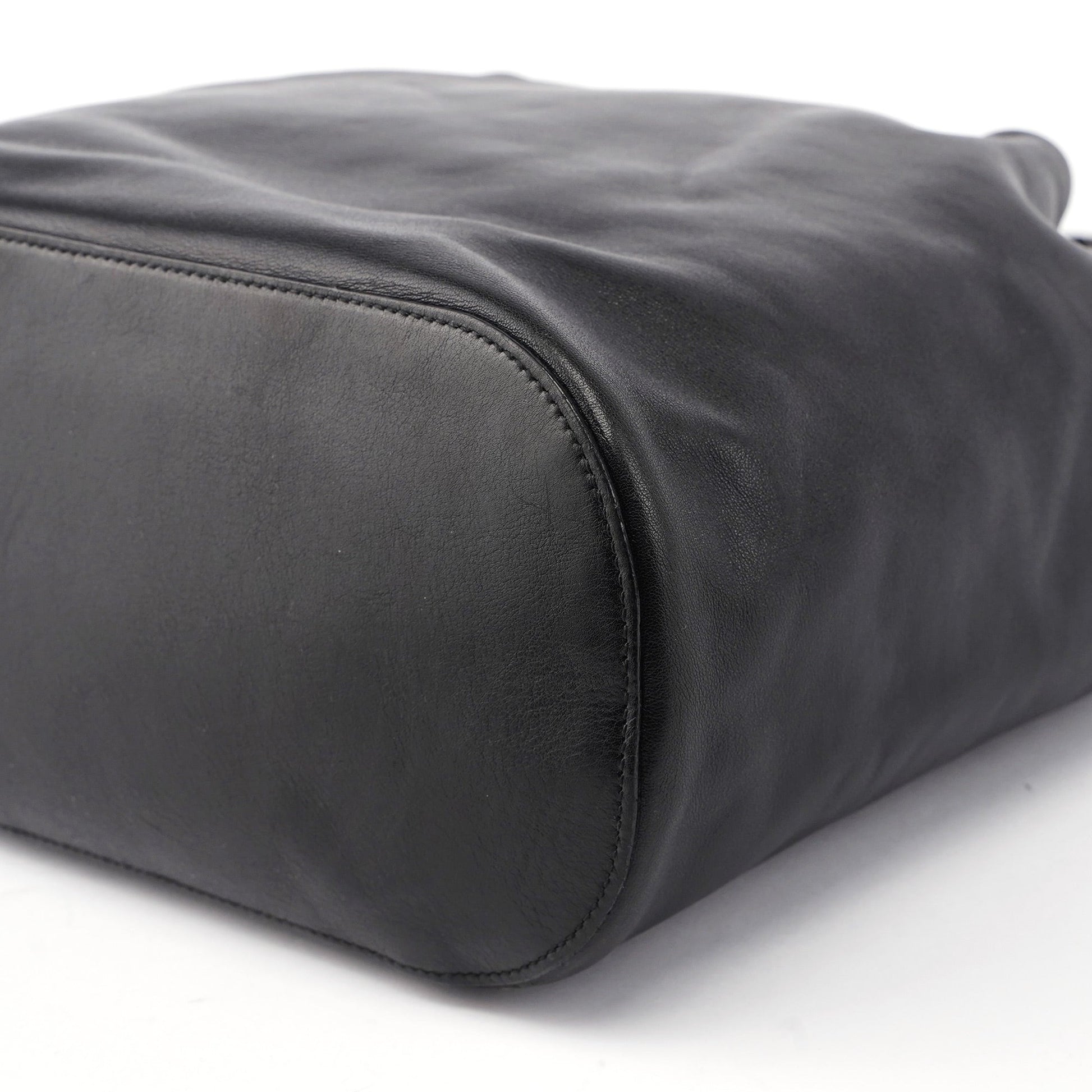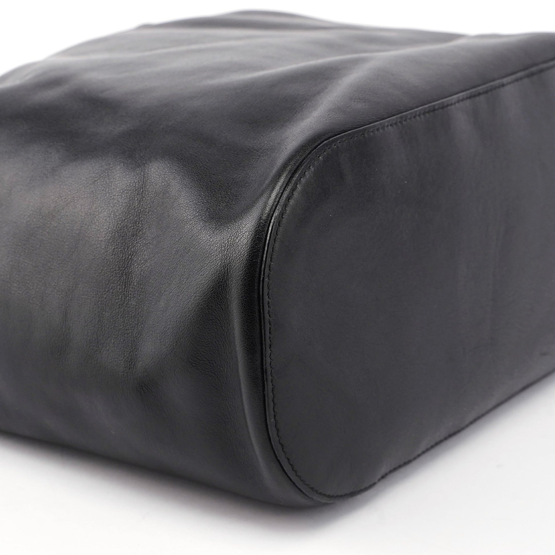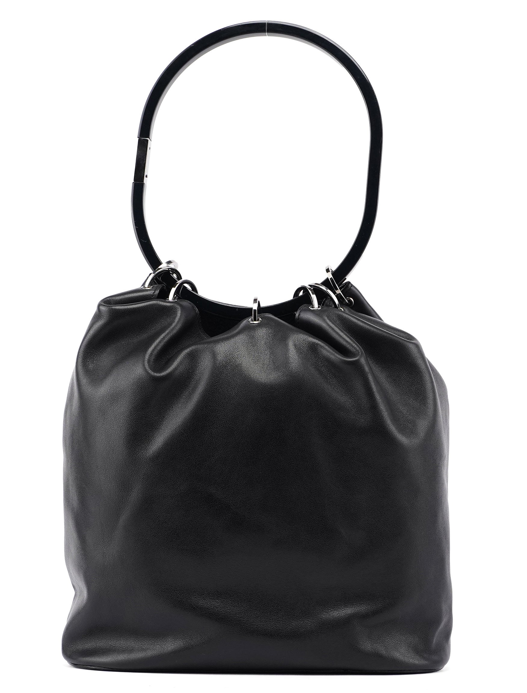 Handcrafted from black calfskin leather, this Gucci Ring bag by Tom Ford from 1999 features silver-tone hardware engraved with the Gucci logo, a plastic handle, and a suede-lined interior with an interior zipper pocket, showcasing timeless elegance.