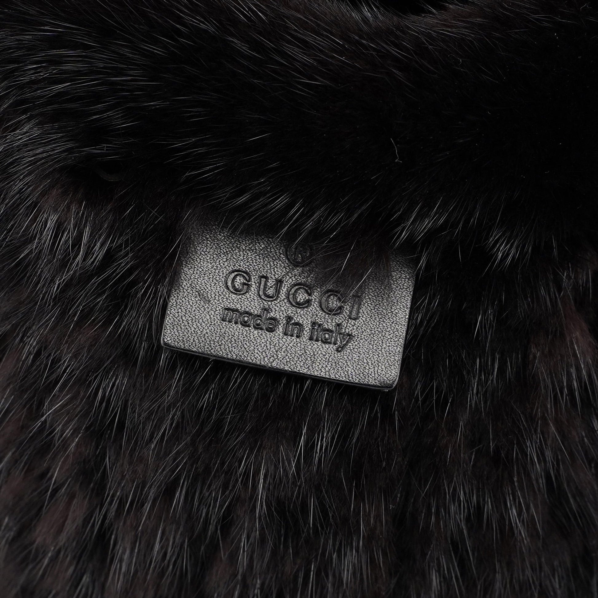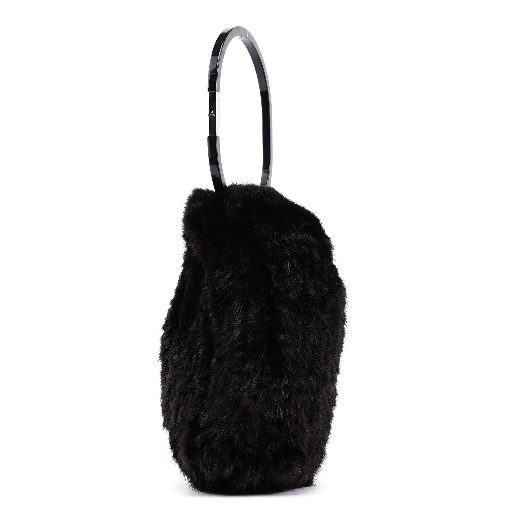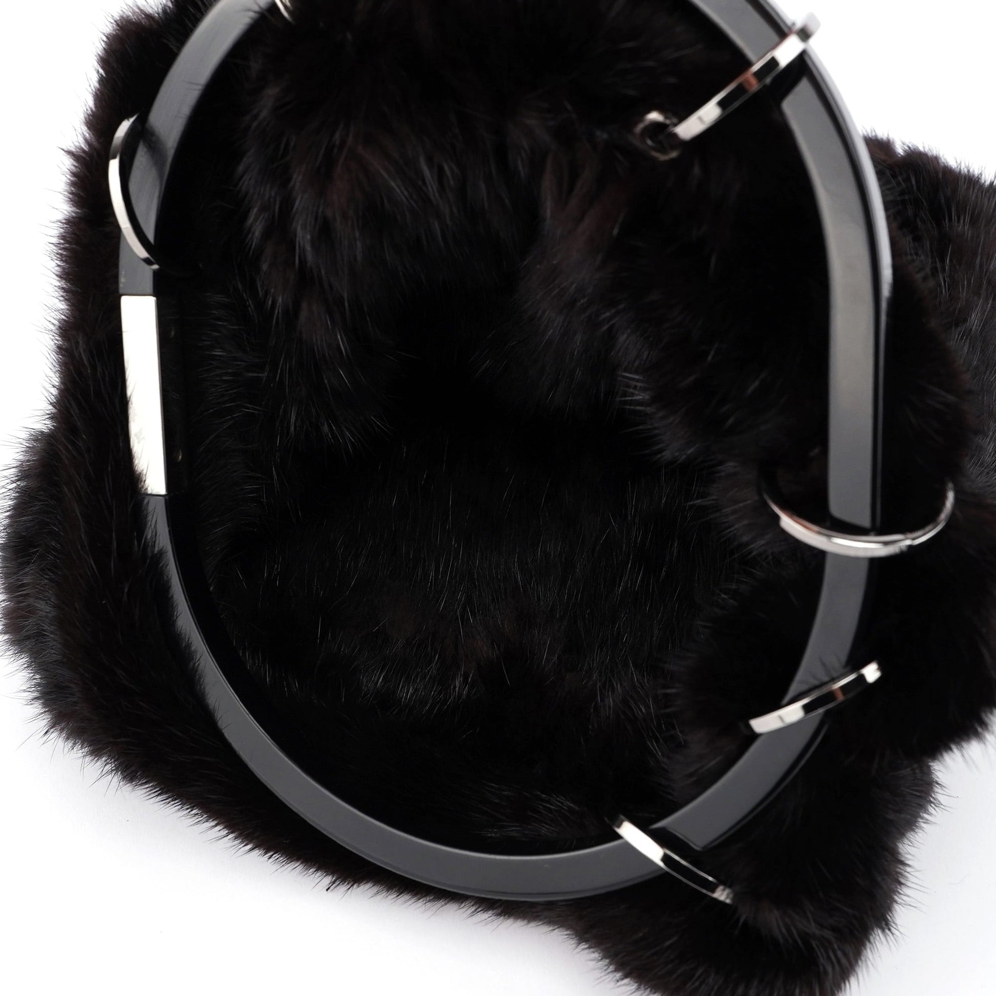 Discover the incredibly rare Gucci Ring bag from Tom Ford’s 1999 collection, the only one of its kind available online. This exquisite piece is handcrafted from luxurious mink fur with calfskin leather trim and features silver-tone hardware. The iconic Gucci ring handle, emblematic of the collection, is crafted in black plastic with Gucci logo engraving. A leather strip bearing the Gucci logo adorns the front, adding an exclusive touch to this unique collector’s item.