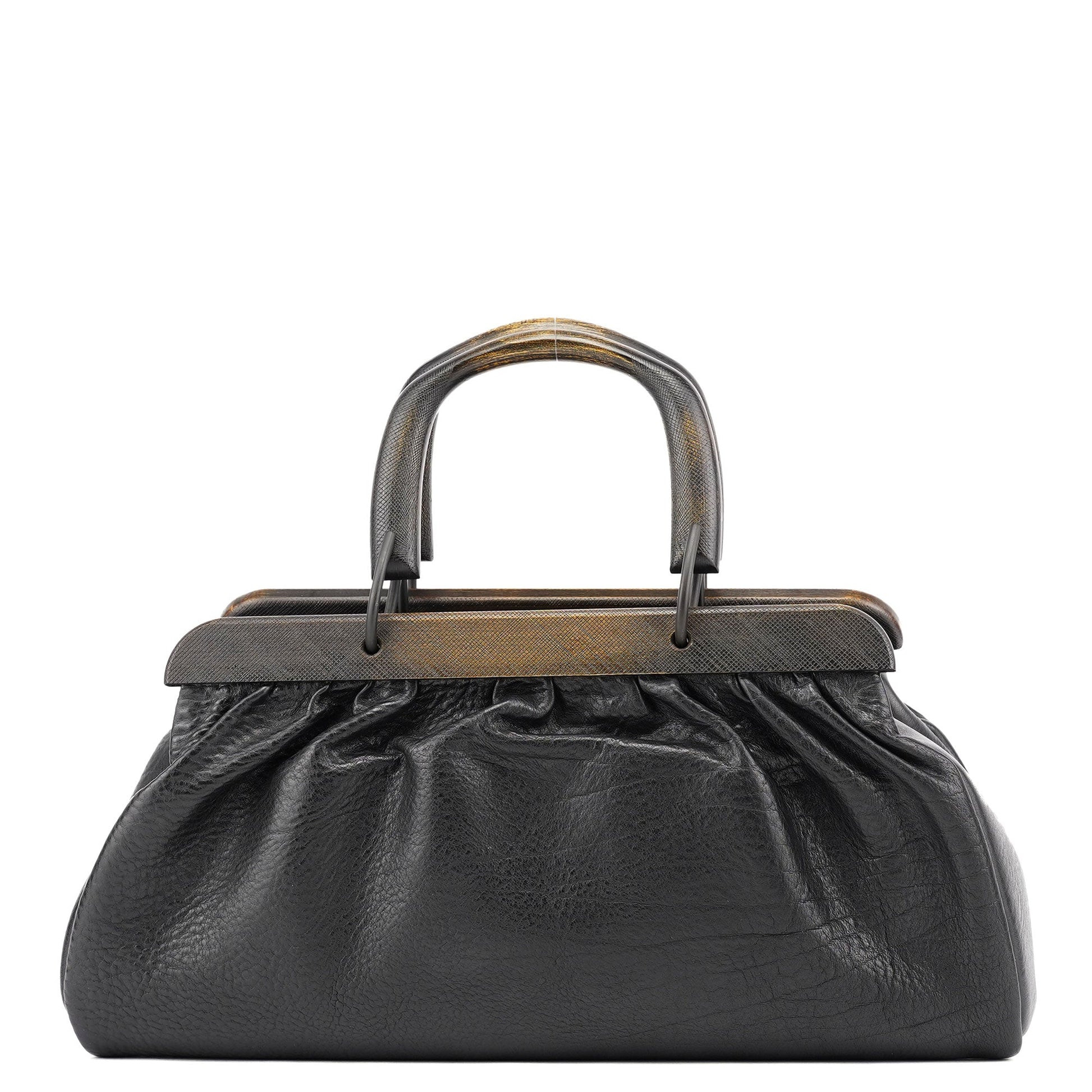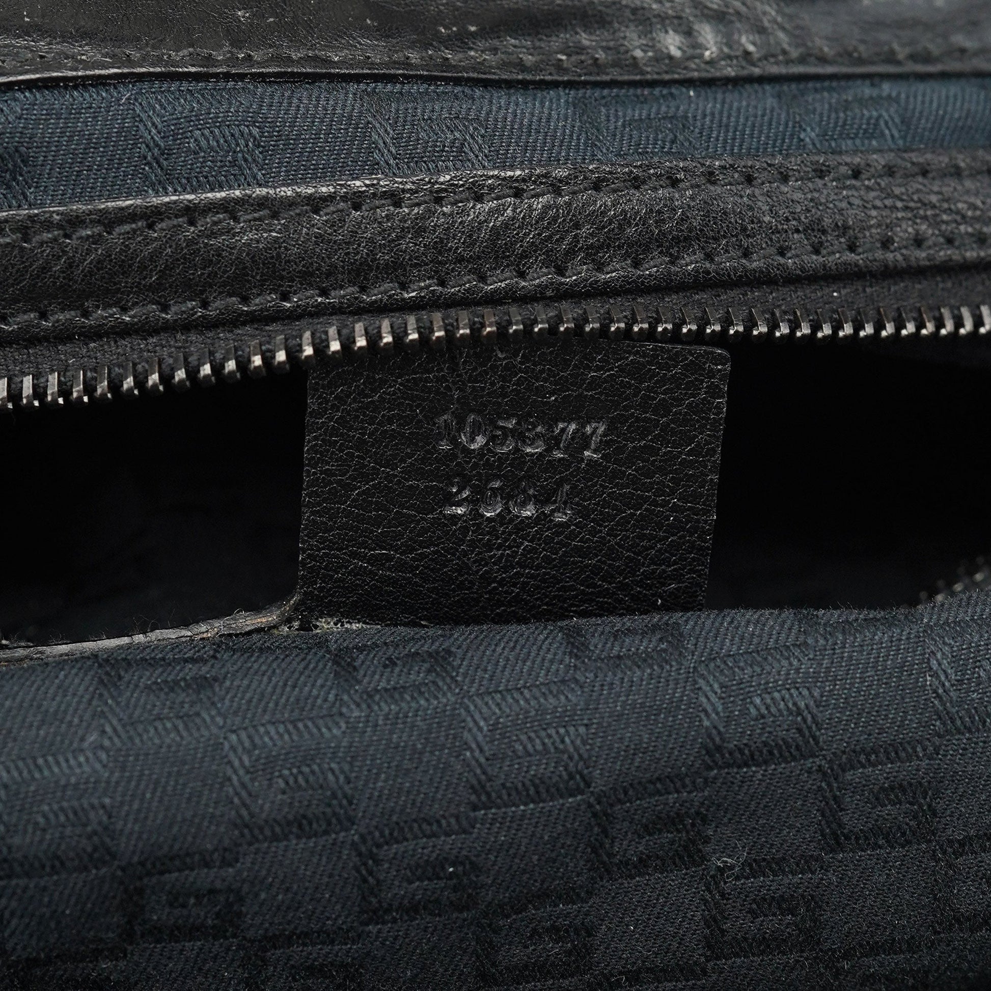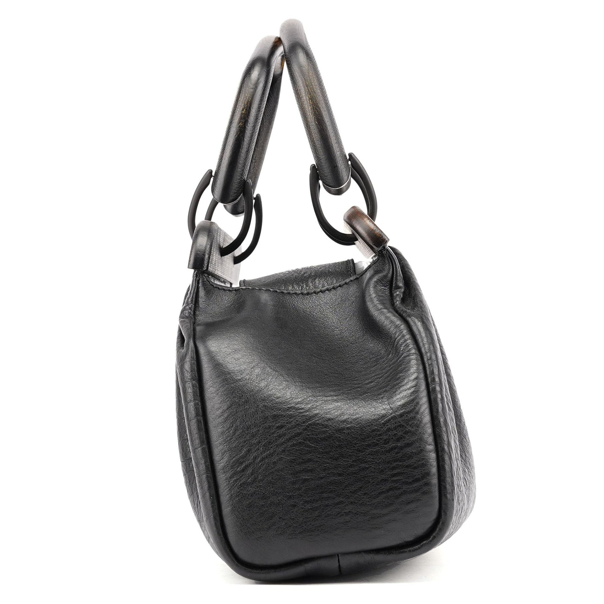 Designed by Tom Ford for the Fall 2002 collection, this Gucci Doctor bag was shown on the runway. Handcrafted from black bison leather with distinctive wooden handles, it captures the bold sophistication of the era. The GG cotton-lined interior includes a zipper pocket for organization, while a subtle Gucci plaque at the front adds a signature touch.