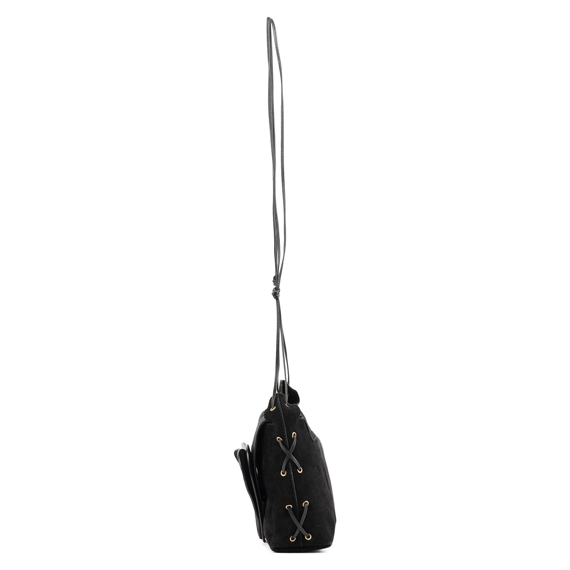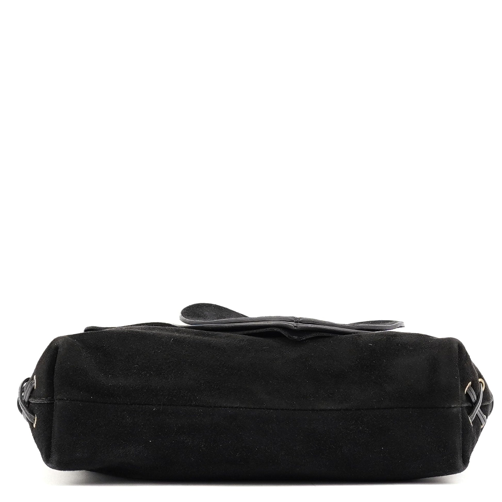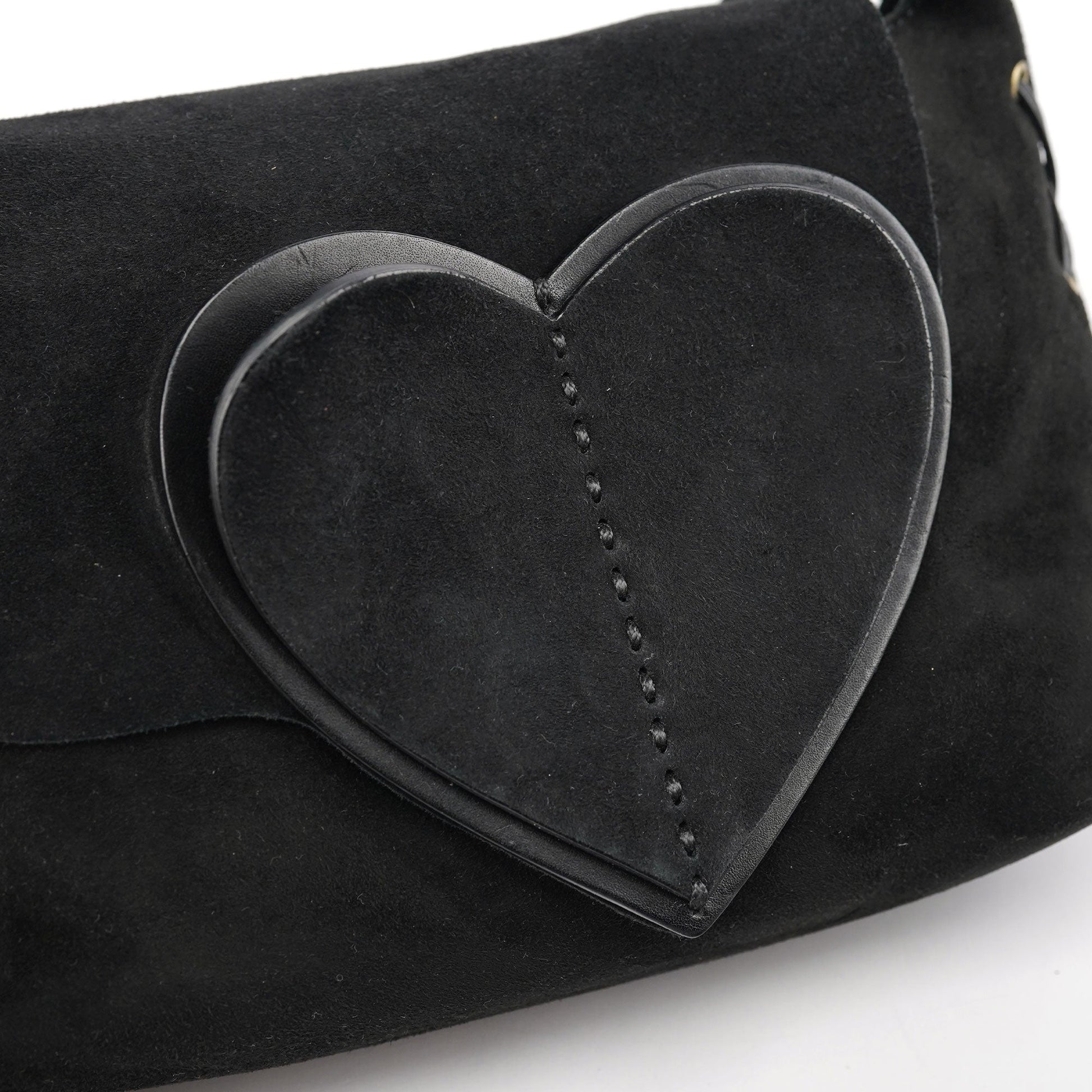 Designed by Tom Ford for the Spring 2002 collection, the Gucci Heart shoulder bag is handcrafted from black suede with tonal calfskin leather trim. It features brass hardware, a suede-lined interior with a pocket, and a Gucci logo plate at the back.