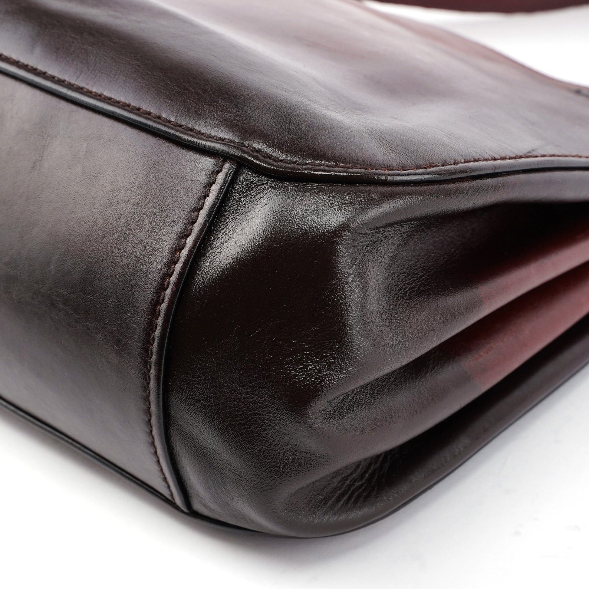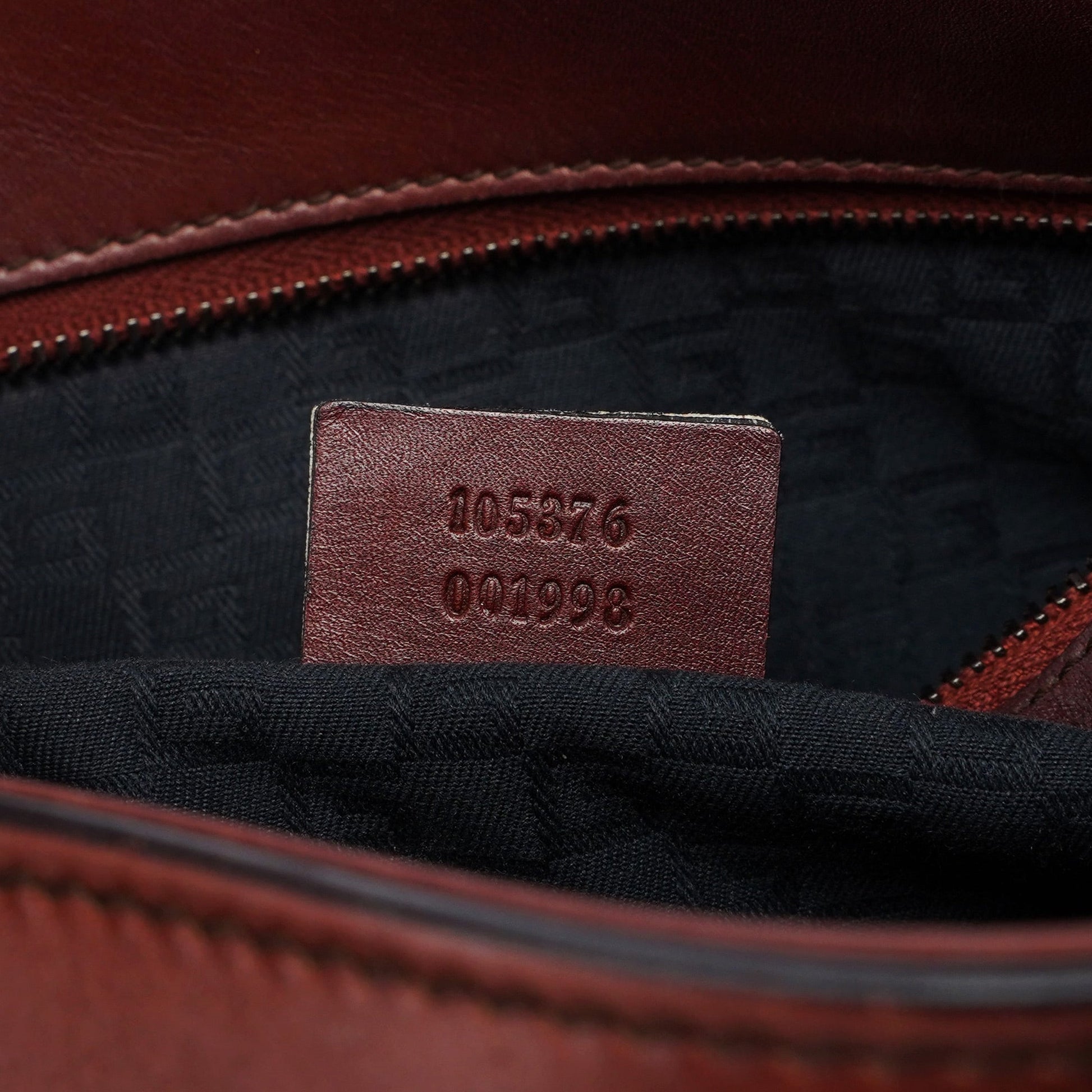 Handcrafted from luxurious burgundy calfskin leather, this Gucci shoulder bag by Tom Ford from the 2002 collection features matte black hardware. The interior is lined in GG monogram satin with an interior zipper pocket, showcasing timeless elegance.