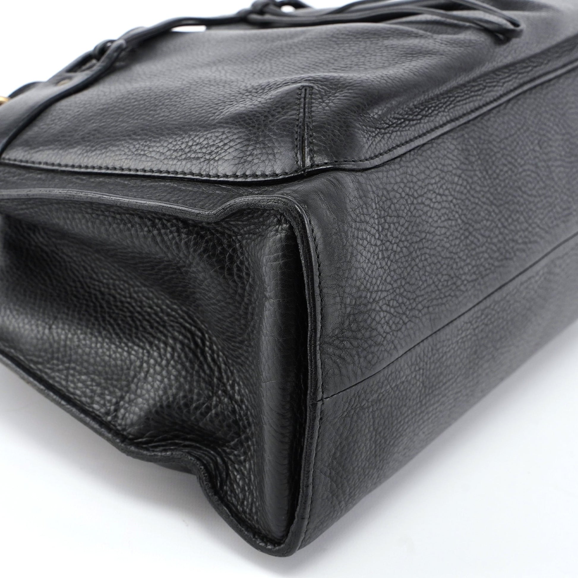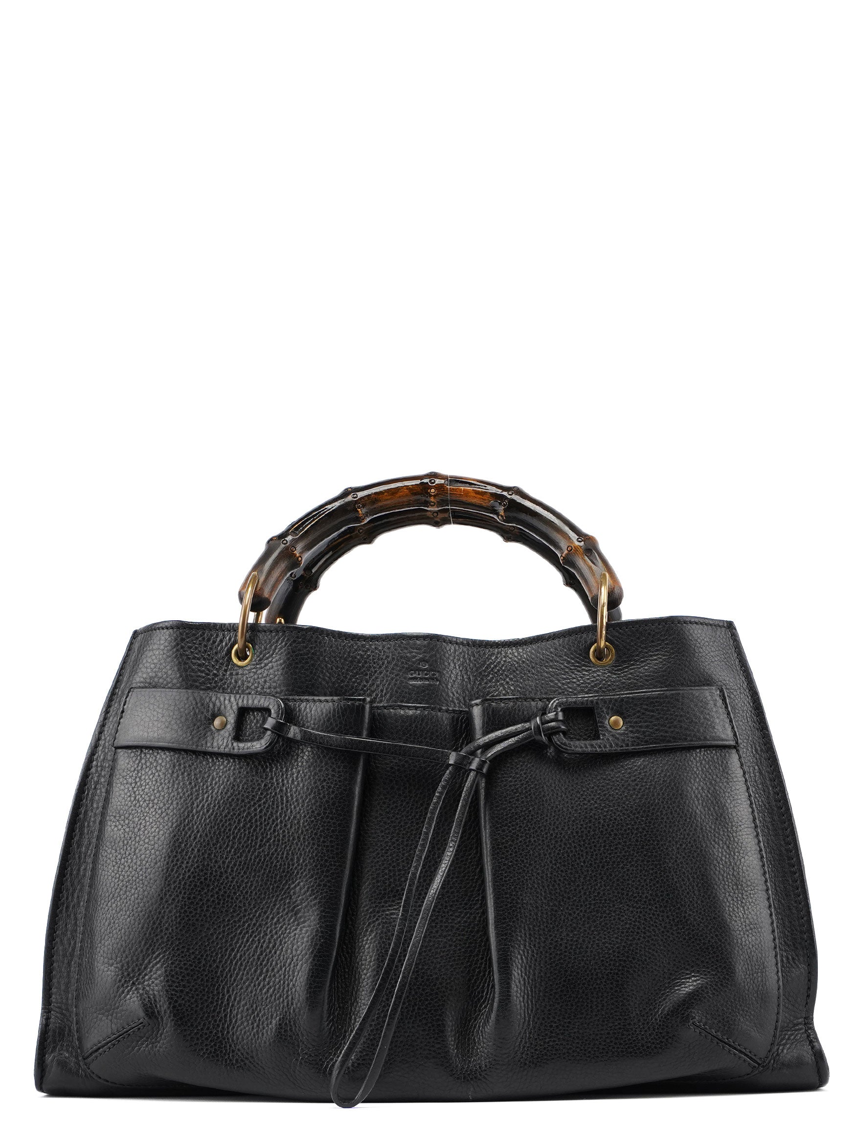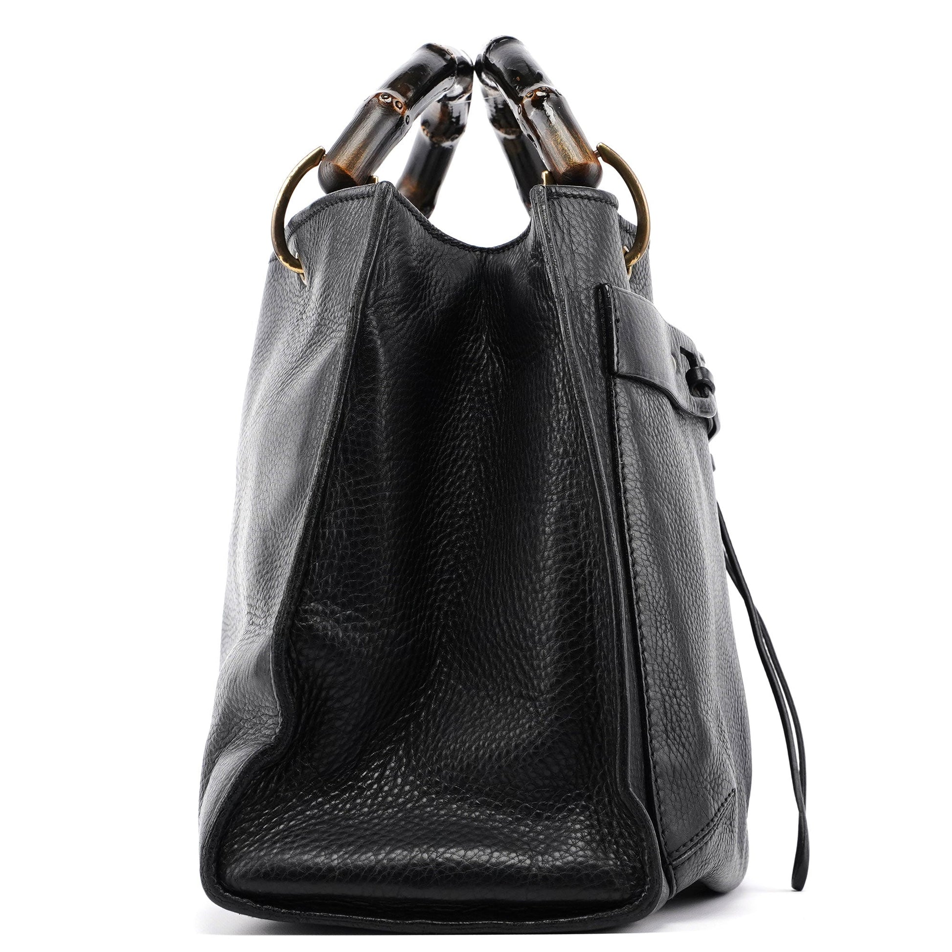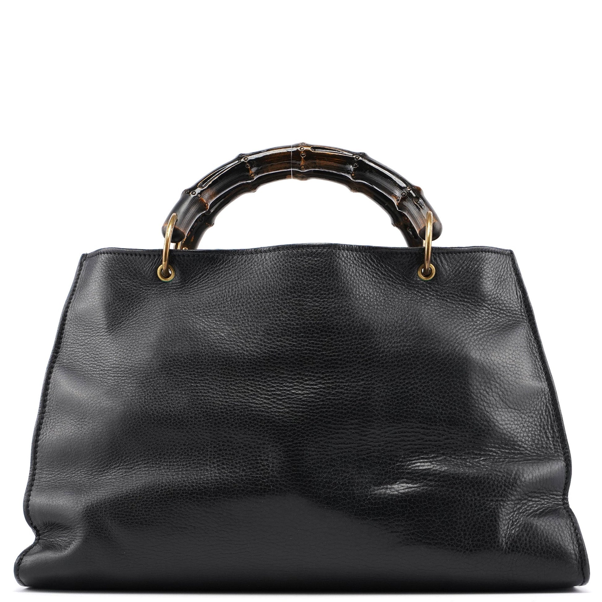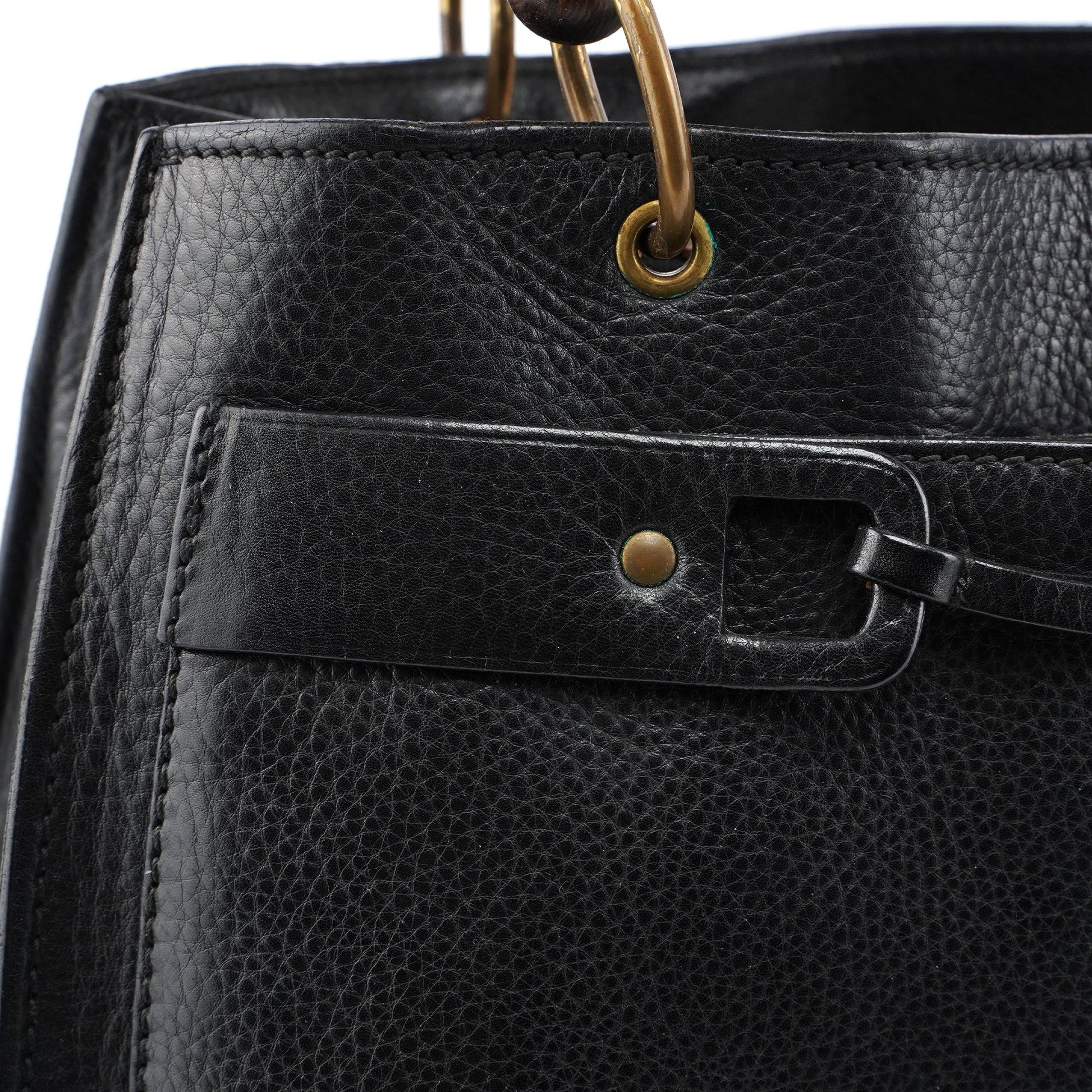 2003 Black Leather Bamboo Top Handle Bag