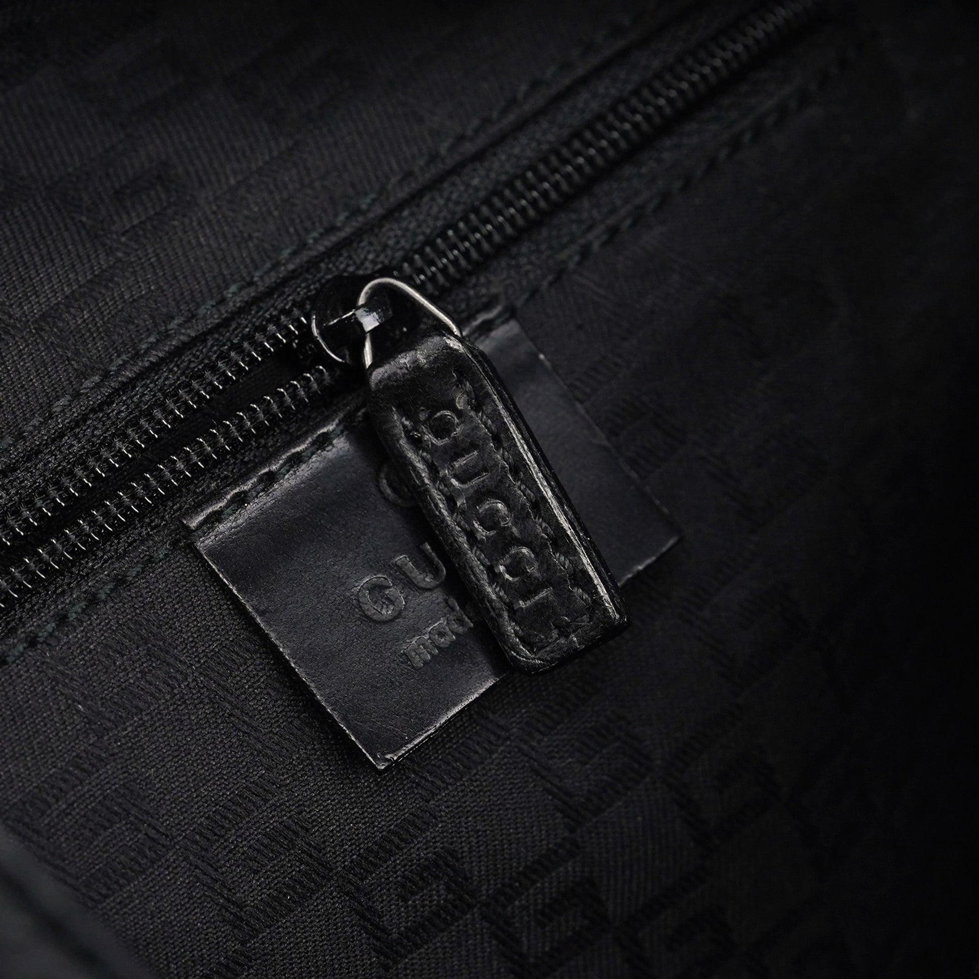 Designed by Tom Ford for the iconic 2003 collection, this Gucci hobo shoulder bag is handcrafted from black calfskin leather. It features black hardware, a zipper closure, and a satin-lined interior with an interior zipper pocket. The Gucci logo is embossed at the front, showcasing timeless elegance.