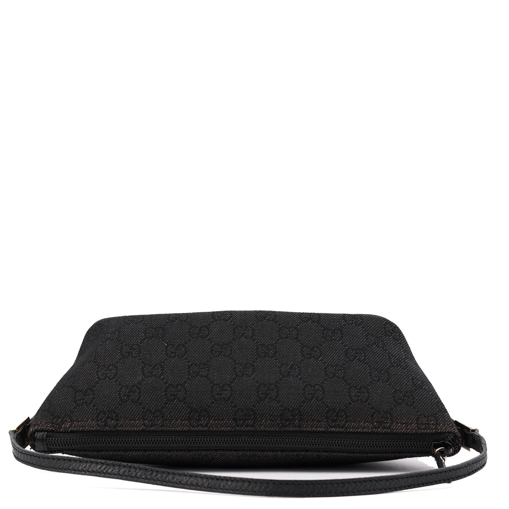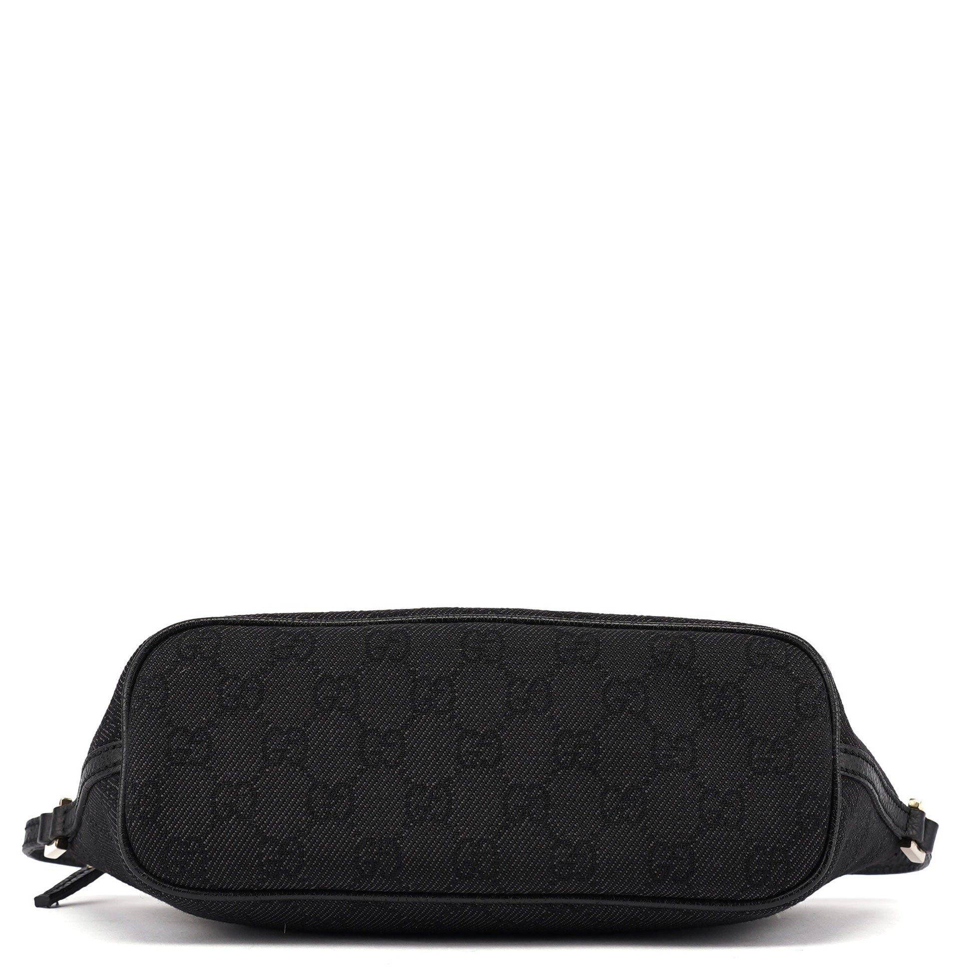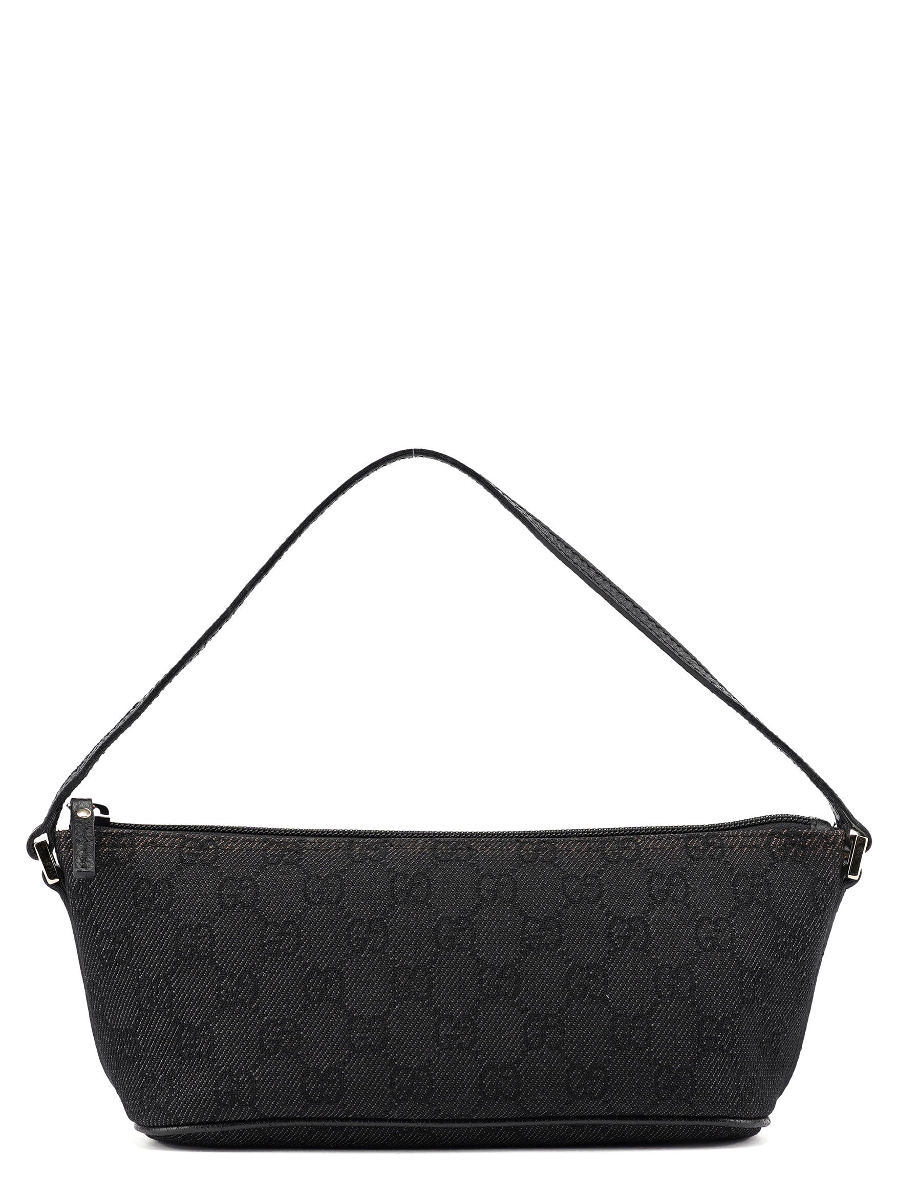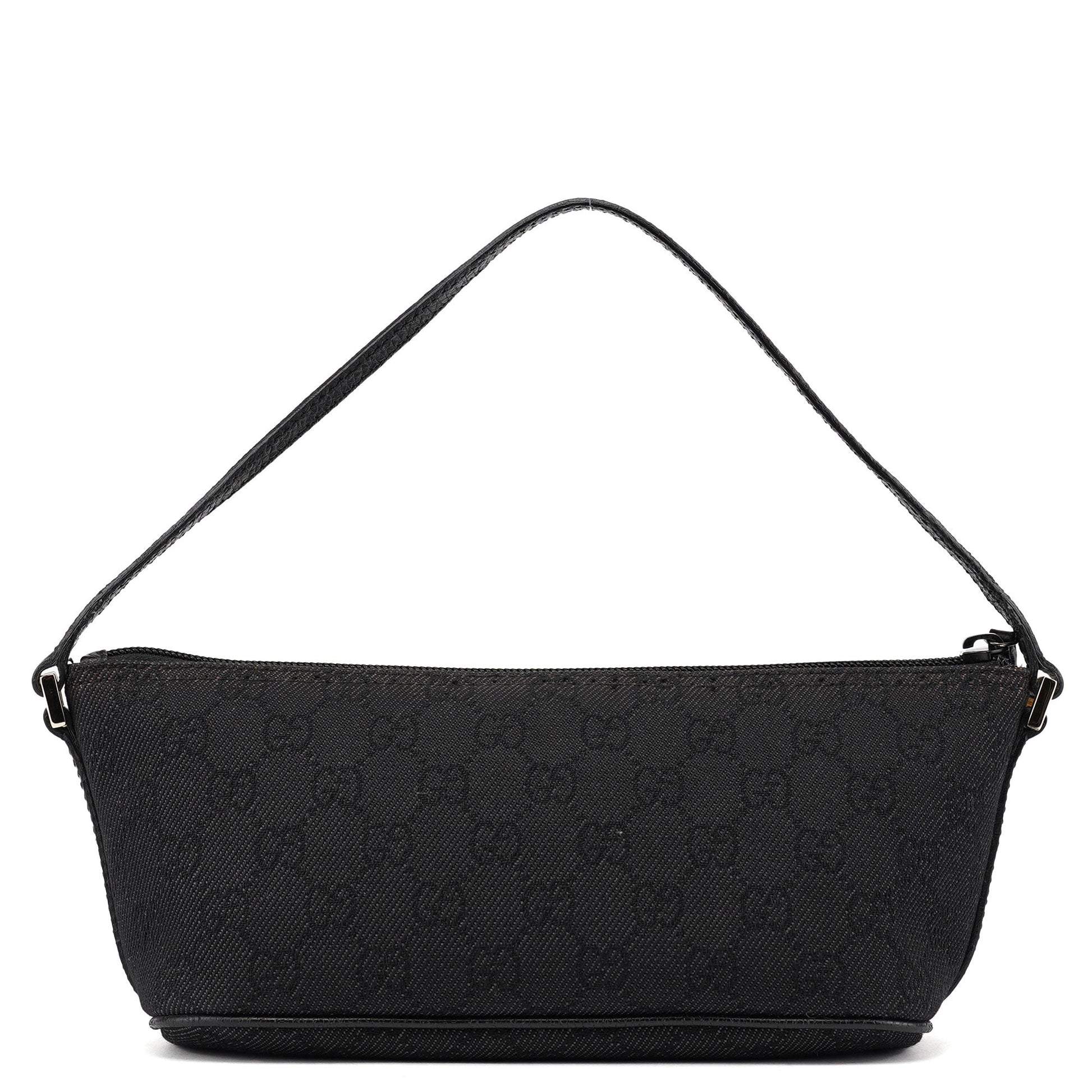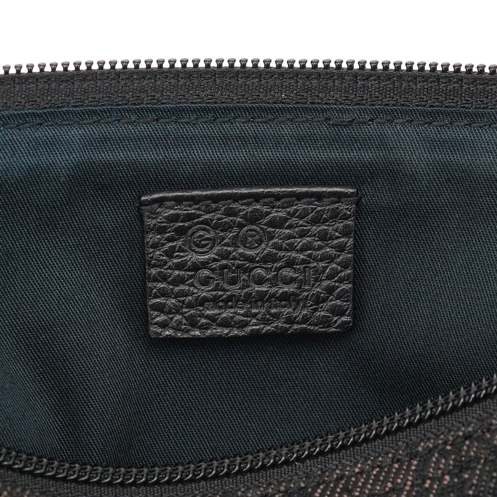 Explore timeless elegance with the Gucci GG Boat Pochette by Tom Ford, circa late 1990s. This exquisite piece combines anthracite GG canvas with tonal leather trim and silver-tone hardware. Its secure zip closure and satin-lined interior offer luxury and practicality.