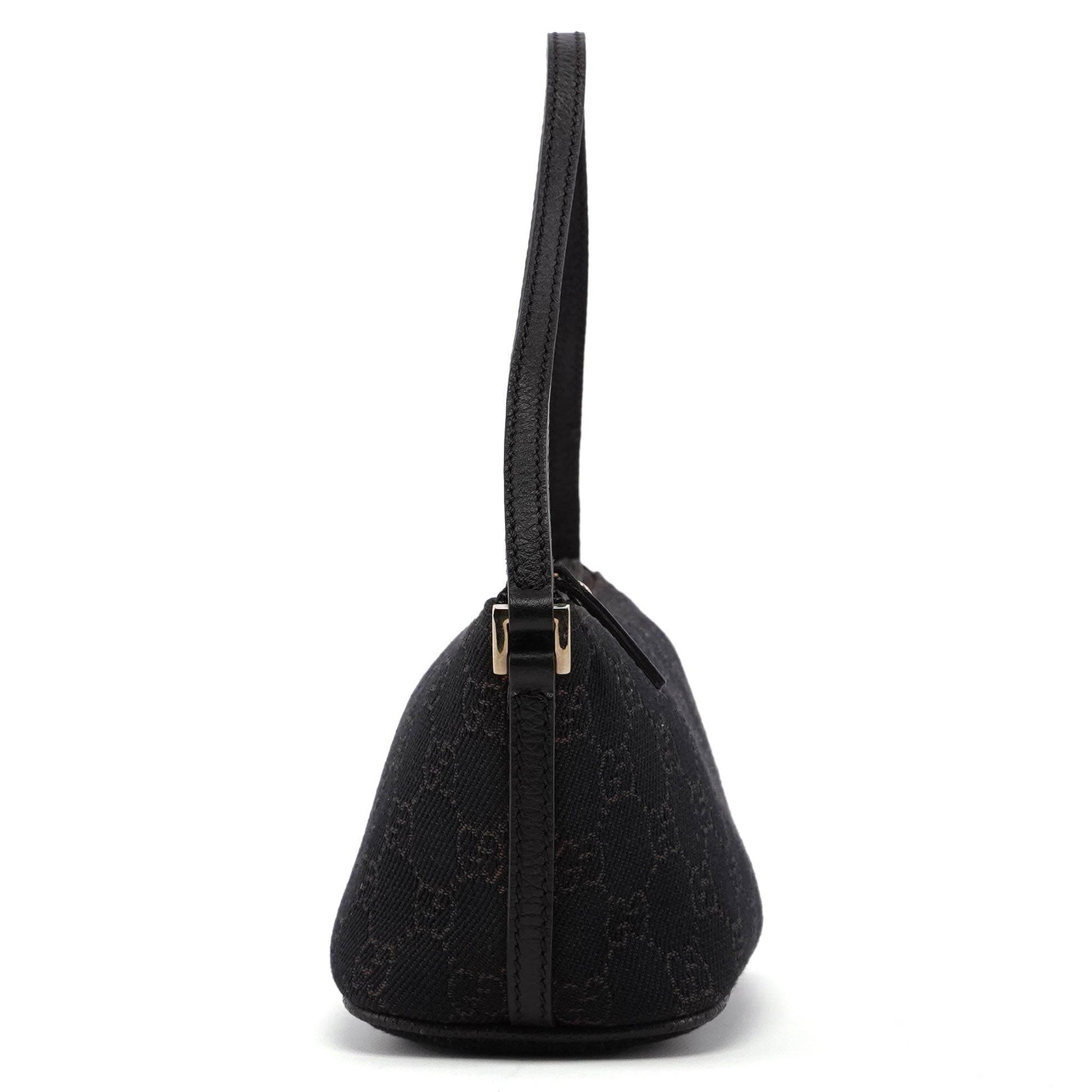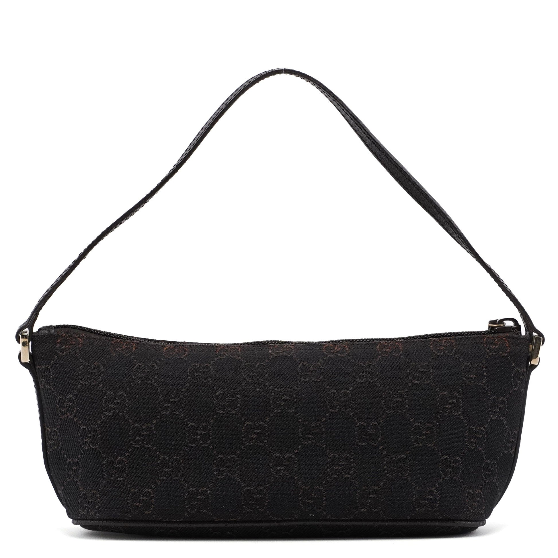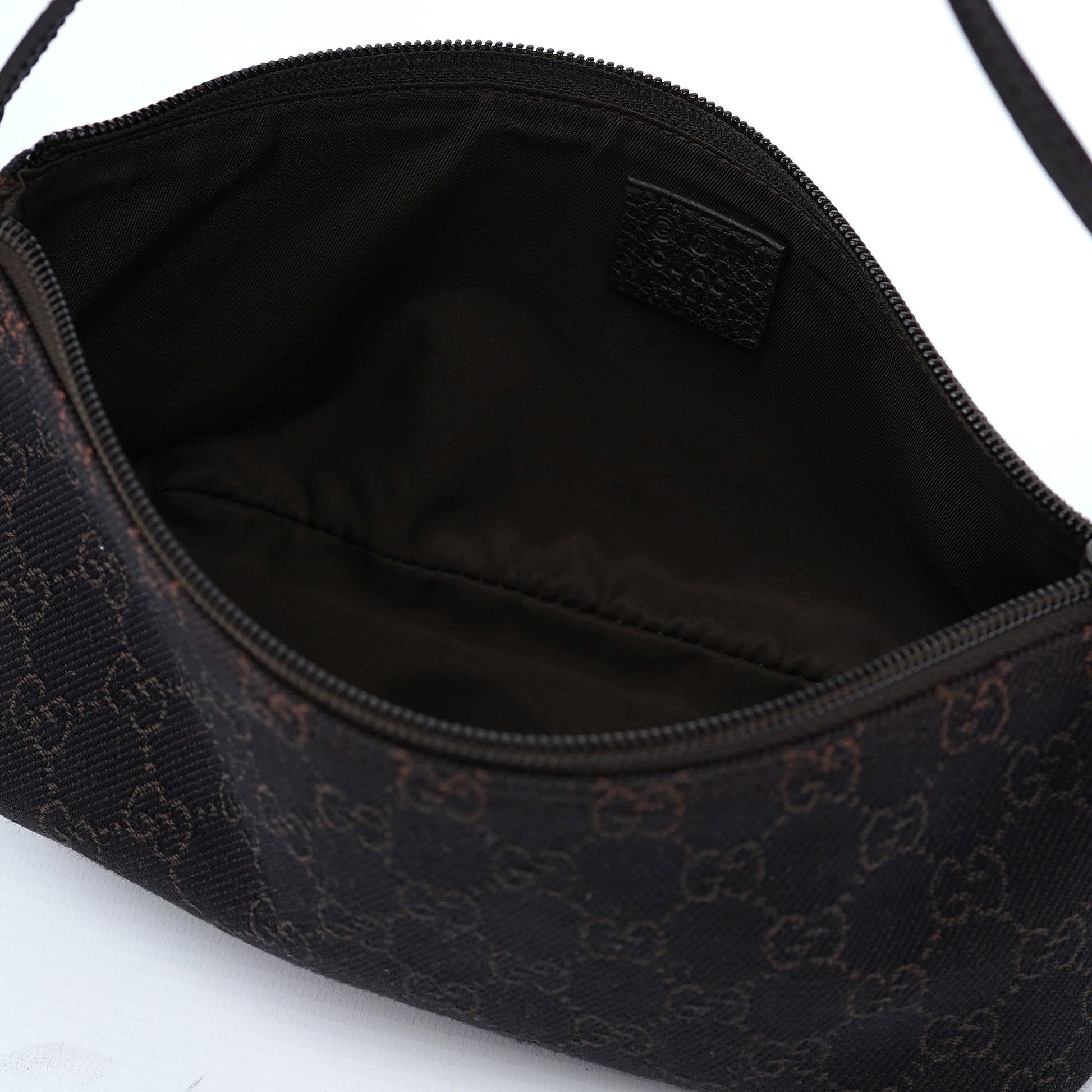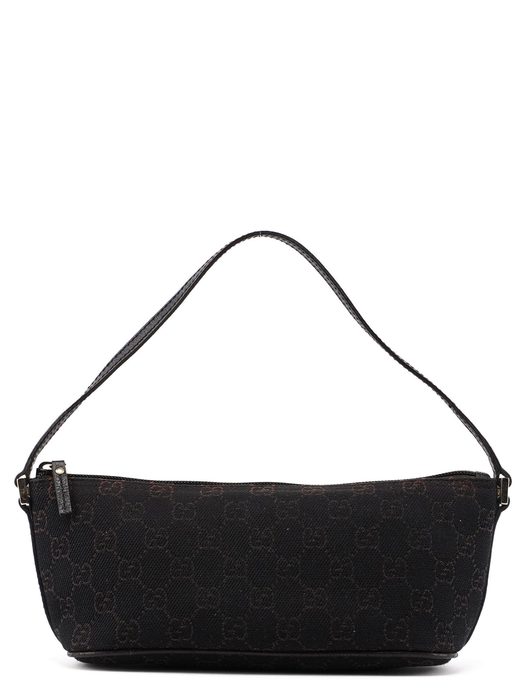 Explore timeless elegance with the Gucci GG Boat Pochette by Tom Ford, circa late 1990s. This exquisite piece combines brown GG canvas with tonal leather trim and silver-tone hardware. Its secure zip closure and satin-lined interior offer luxury and practicality.