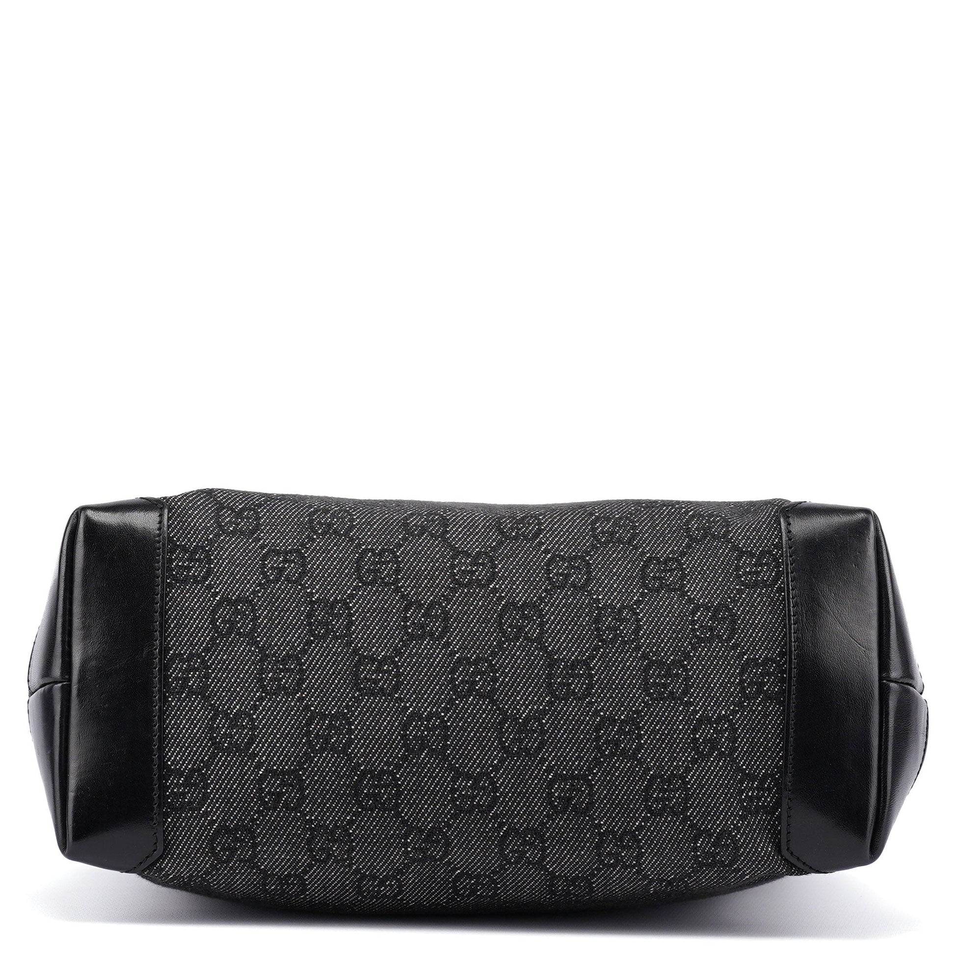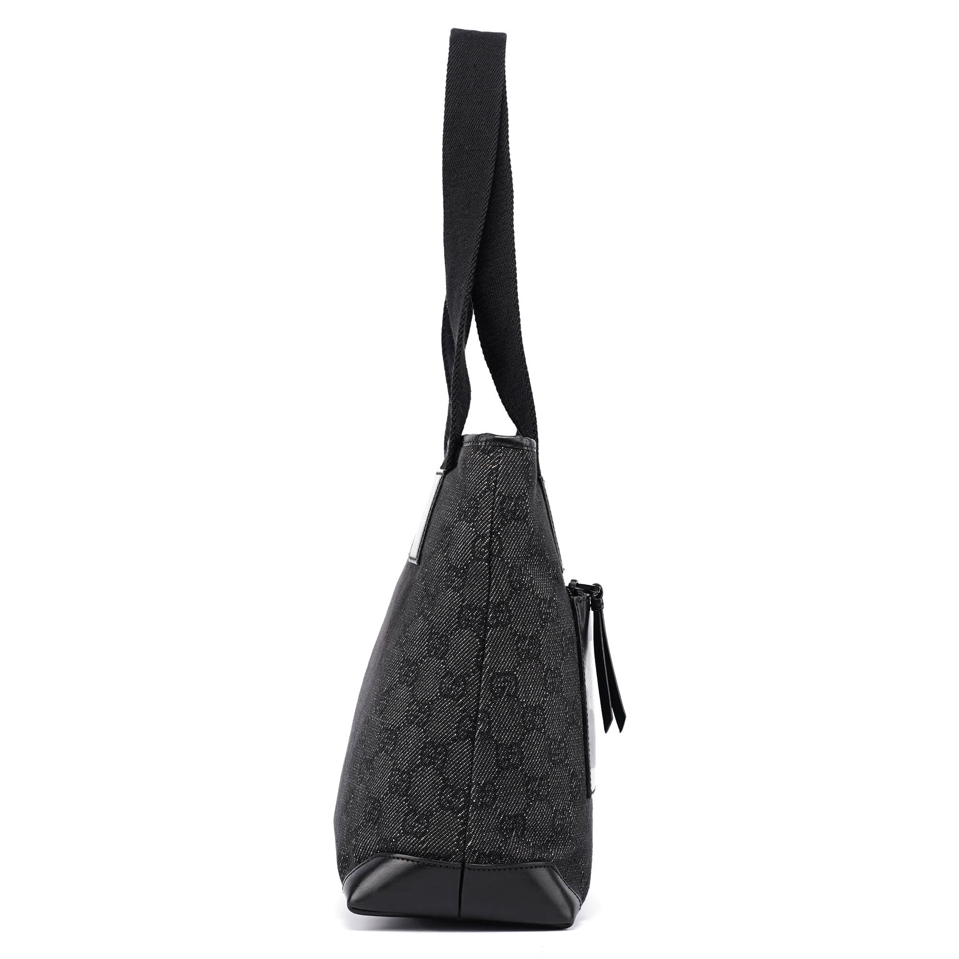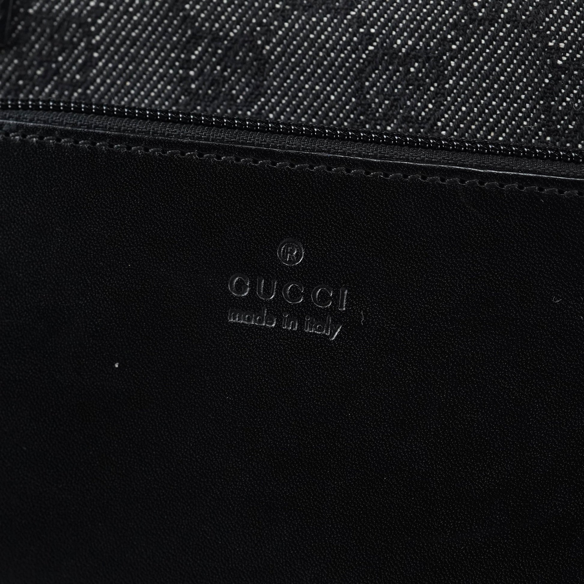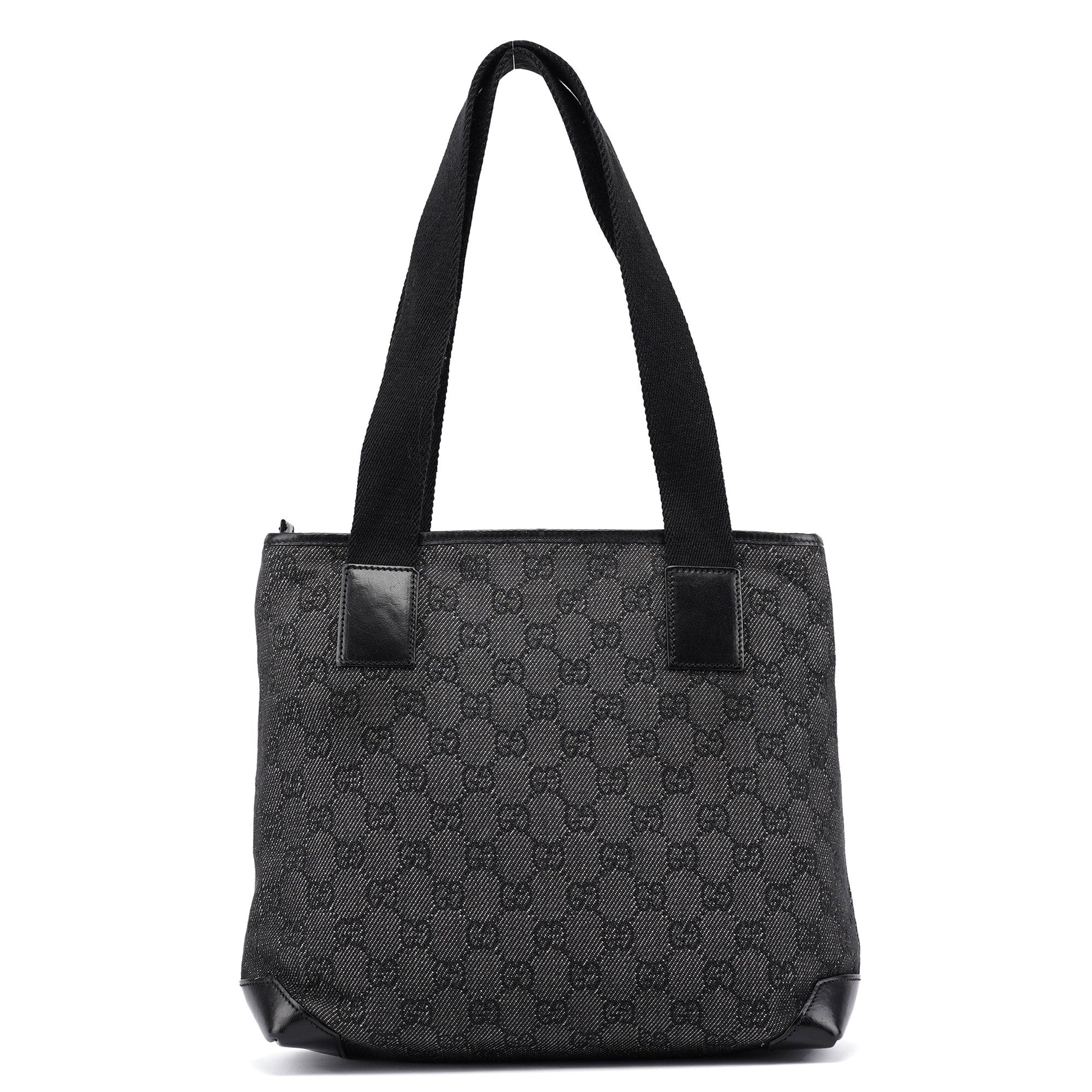 Discover the Gucci GG tote bag, a refined creation by Tom Ford from the late 1990s. Handcrafted in anthracite GG monogram canvas with black leather trim, it features sleek silver-tone hardware, a front pocket, and a secure zipper closure. The satin-lined interior includes a zipper pocket for added functionality, while the embossed Gucci logo on the front adds an elegant finishing touch.