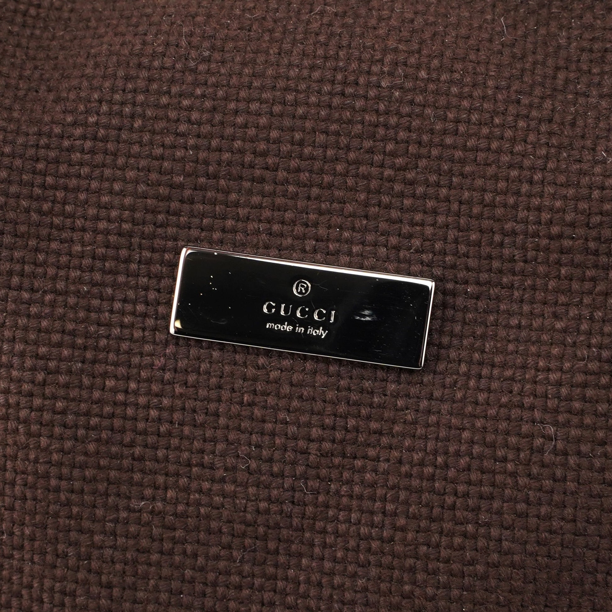 The vintage Gucci Boston bag, designed by Tom Ford in the early 2000s, is handcrafted from brown cotton canvas with calfskin leather trim and handles. Featuring silver-tone hardware and a zipper closure, the bag has an interior lined in GG monogram cotton with an interior zipper pocket. A Gucci logo plaque on the front completes this timeless piece.