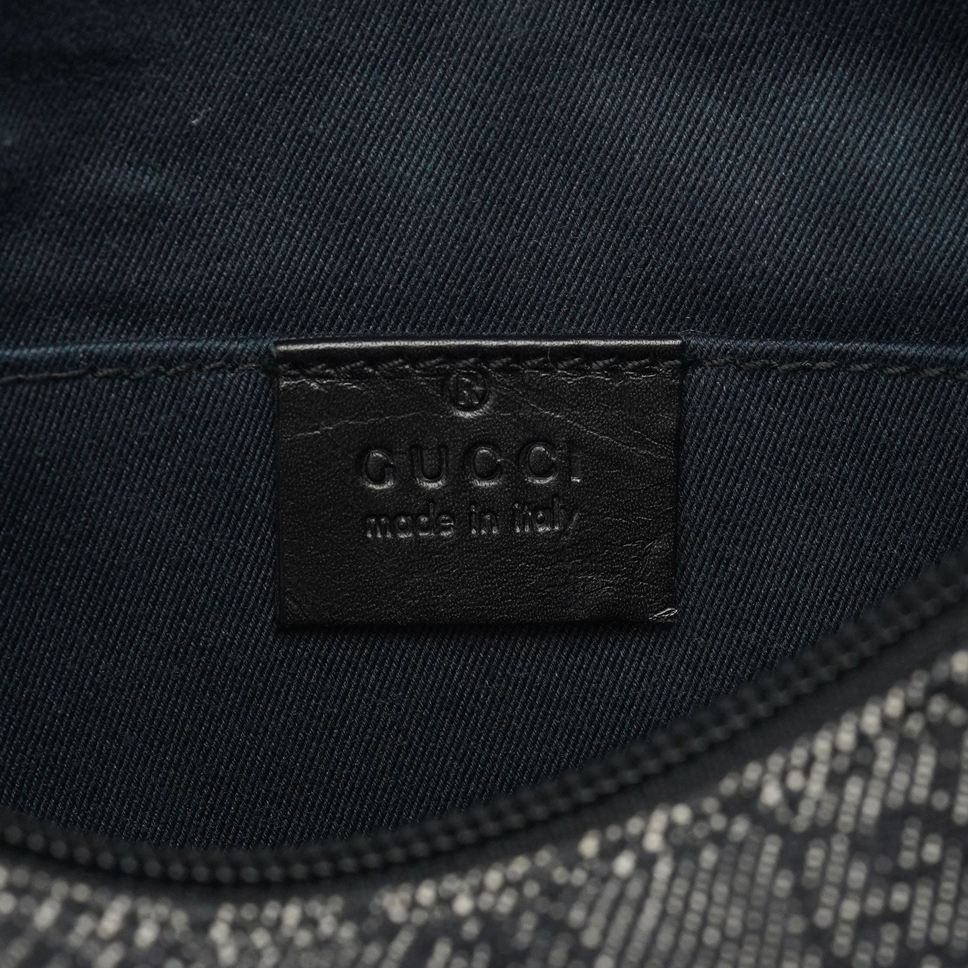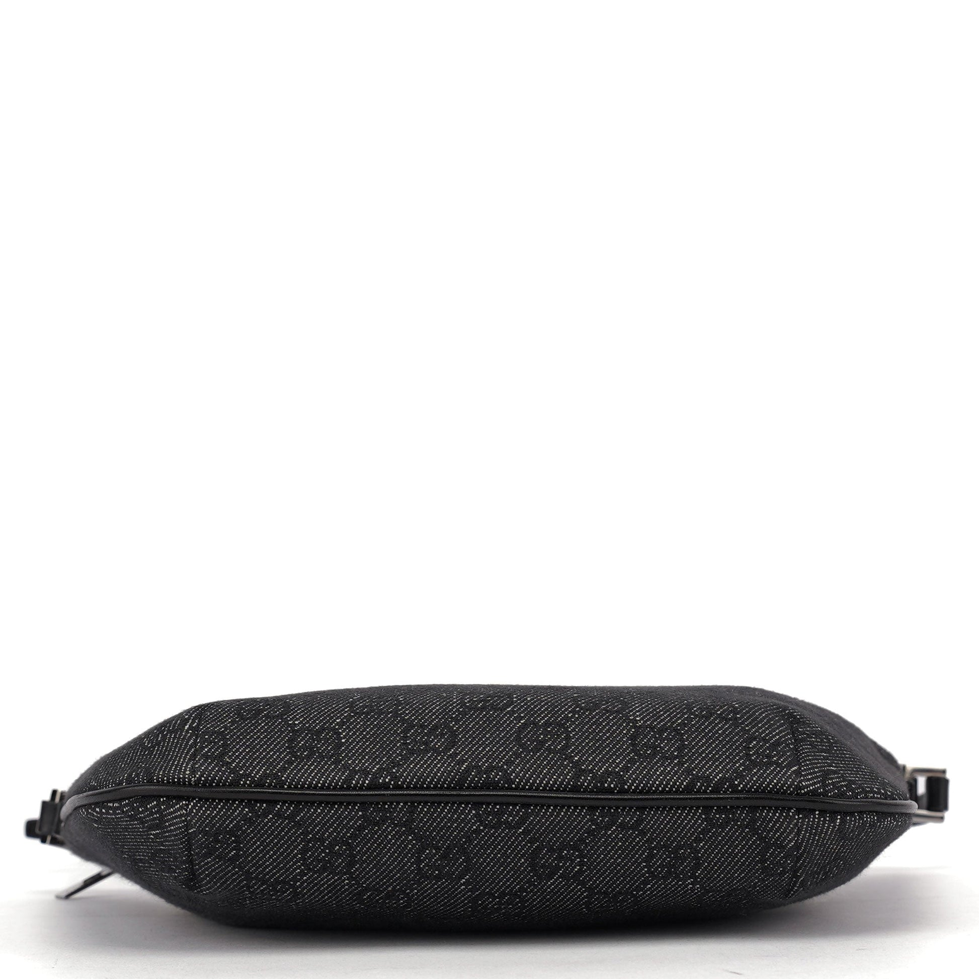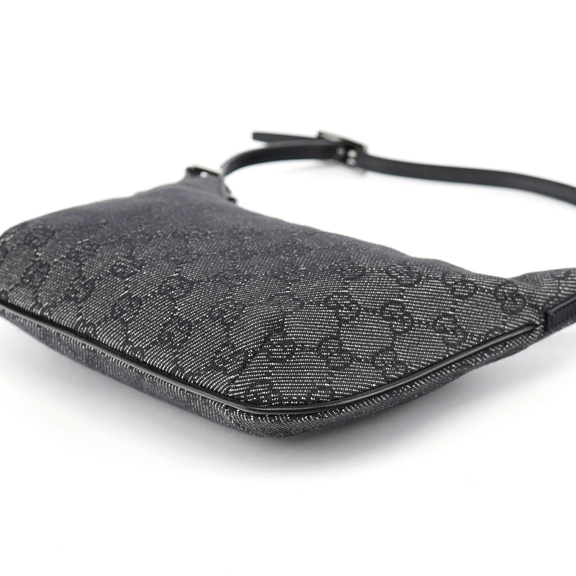 Designed by Tom Ford in the late 1990's, this Gucci GG shoulder bag is crafted from the iconic anthracite GG monogram denim with black calfskin leather trim. Its silver-tone hardware adds a touch of elegance, while the satin-lined interior features a convenient pocket for organization.
