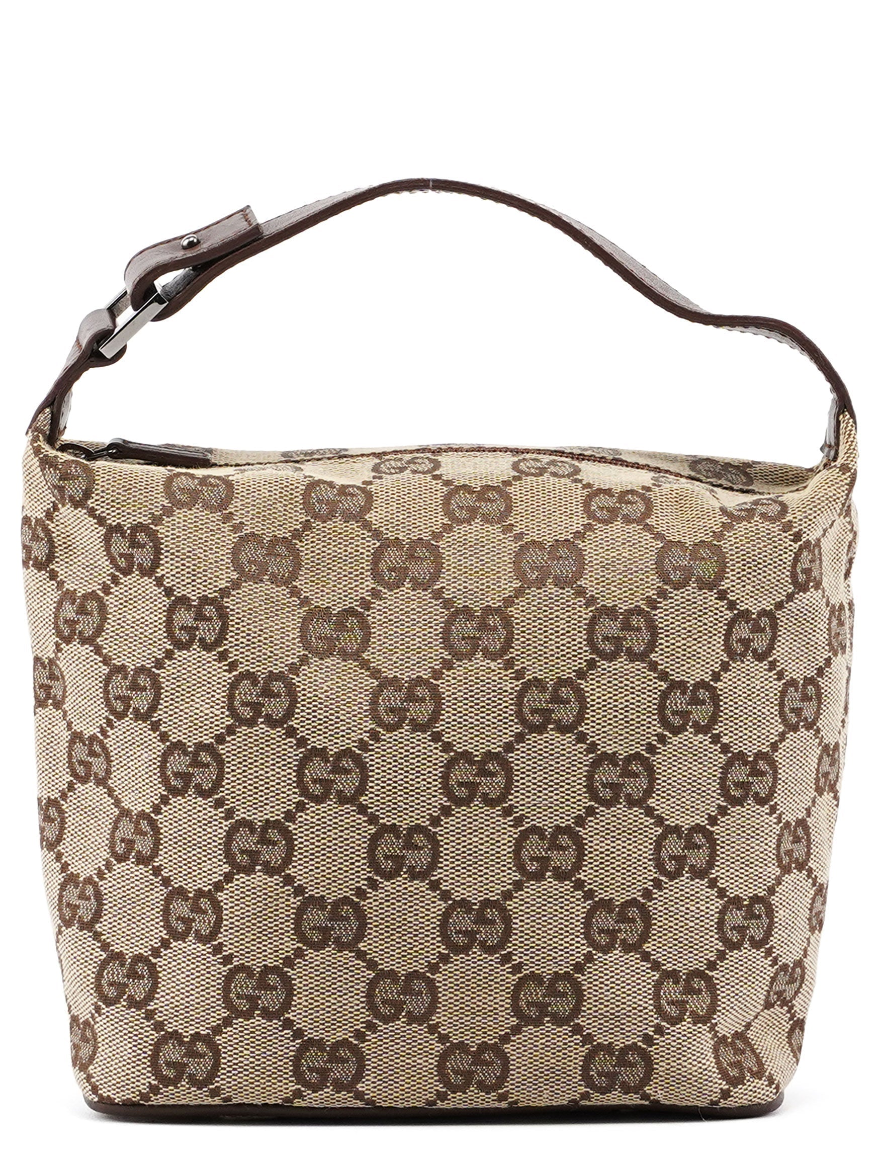 Designed by Tom Ford in the late 1990's, this Gucci GG handbag is crafted from the iconic beige GG monogram canvas with tonal leather trim. Its silver-tone hardware adds a touch of elegance, while the satin-lined interior features a convenient pocket for organization.