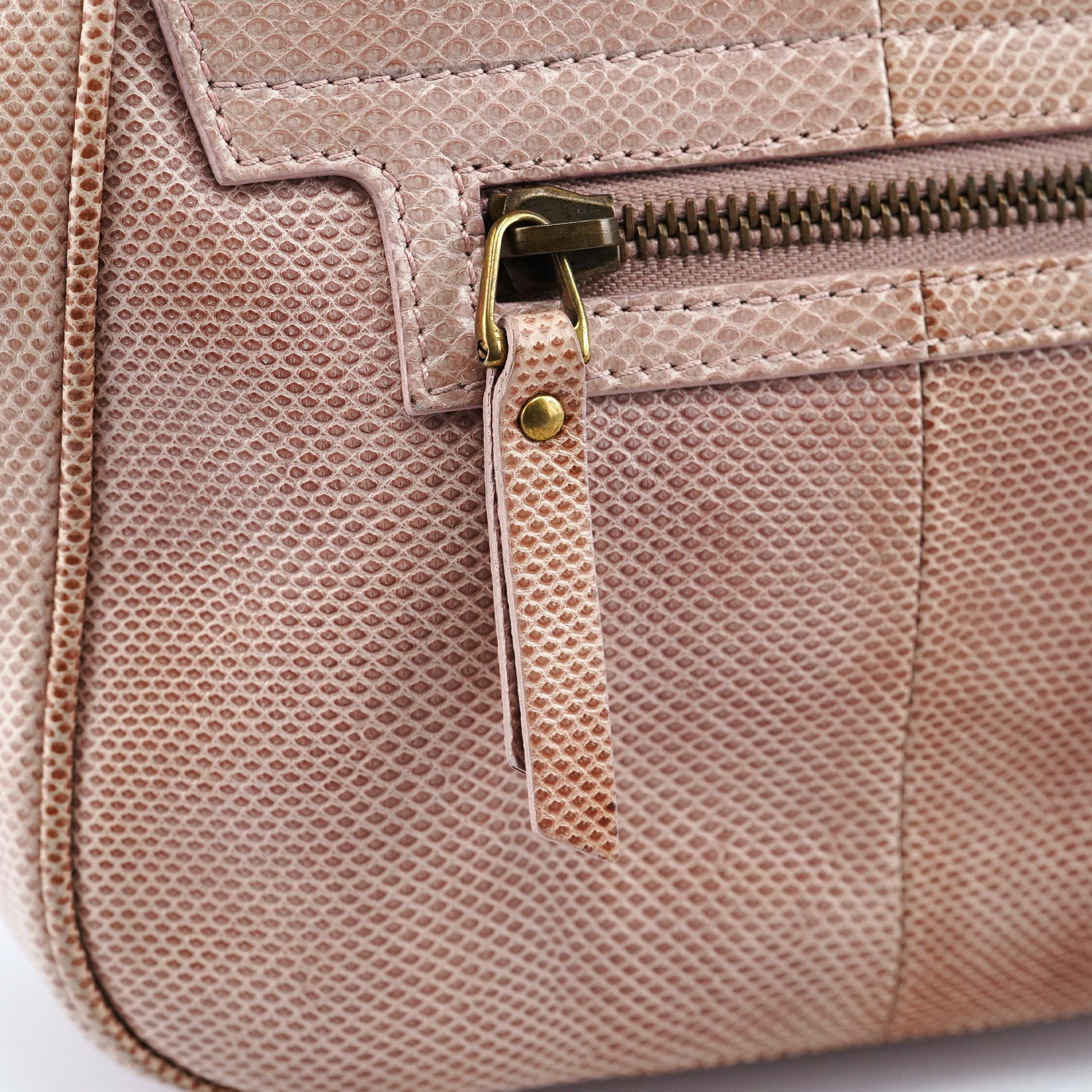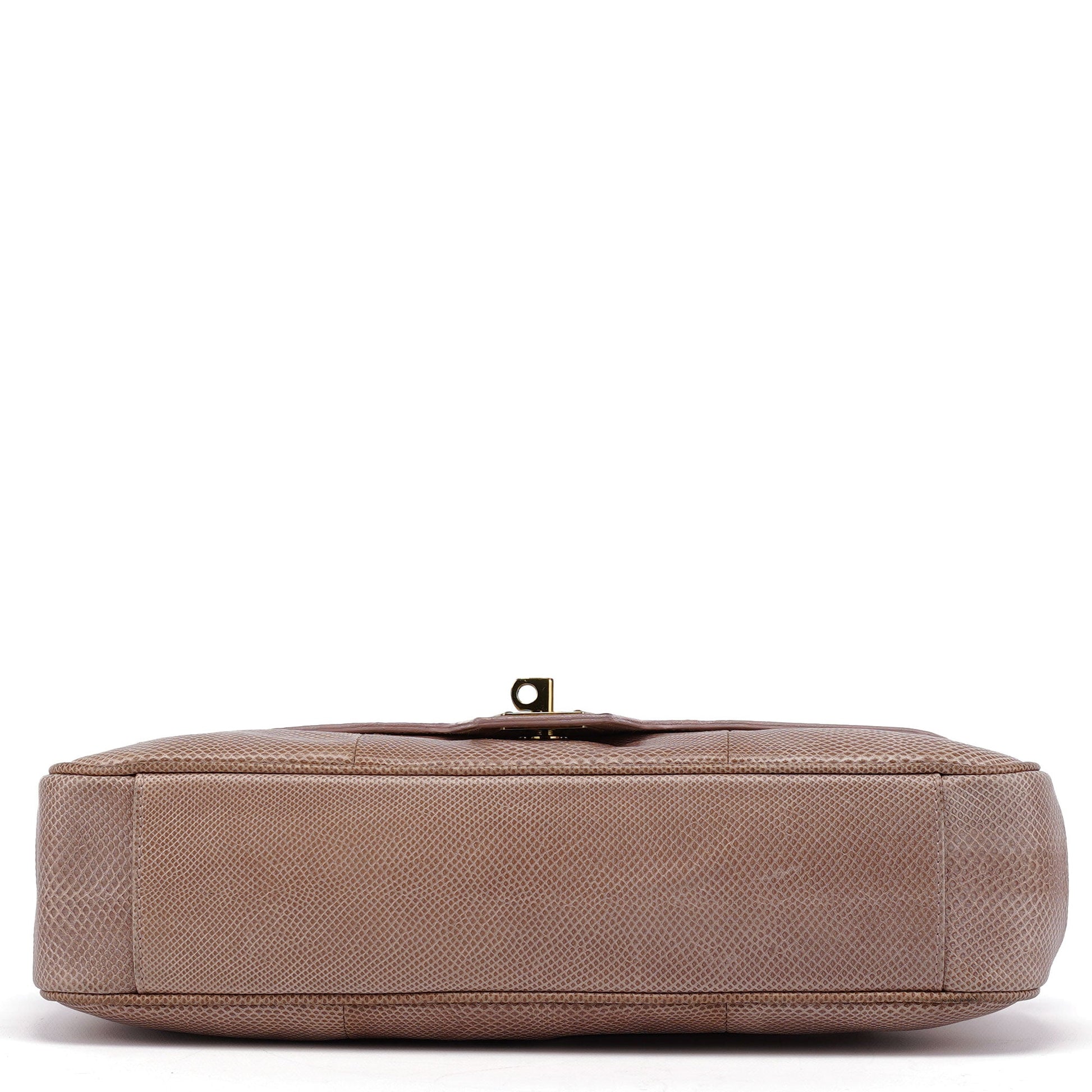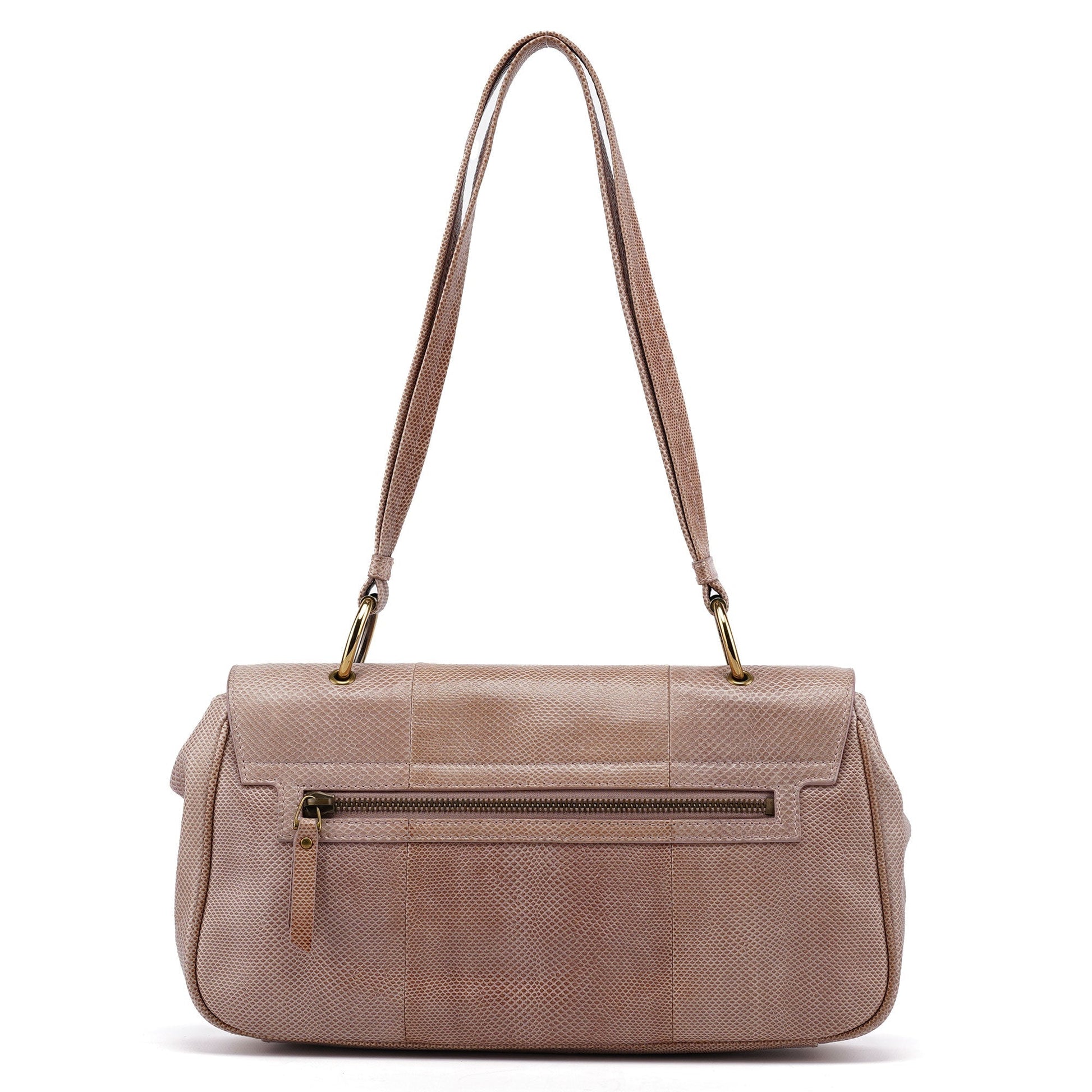 Handcrafted from luxurious lizard skin leather, this Gucci shoulder bag, designed by Tom Ford in the early 2000s, epitomizes refined elegance. It features gold-tone hardware engraved with the Gucci logo, a convenient back pocket, and a gold-tone turnlock closure for a touch of sophistication. The satin-lined interior offers a zipper pocket for organized storage, making this a timeless blend of luxury and functionality.