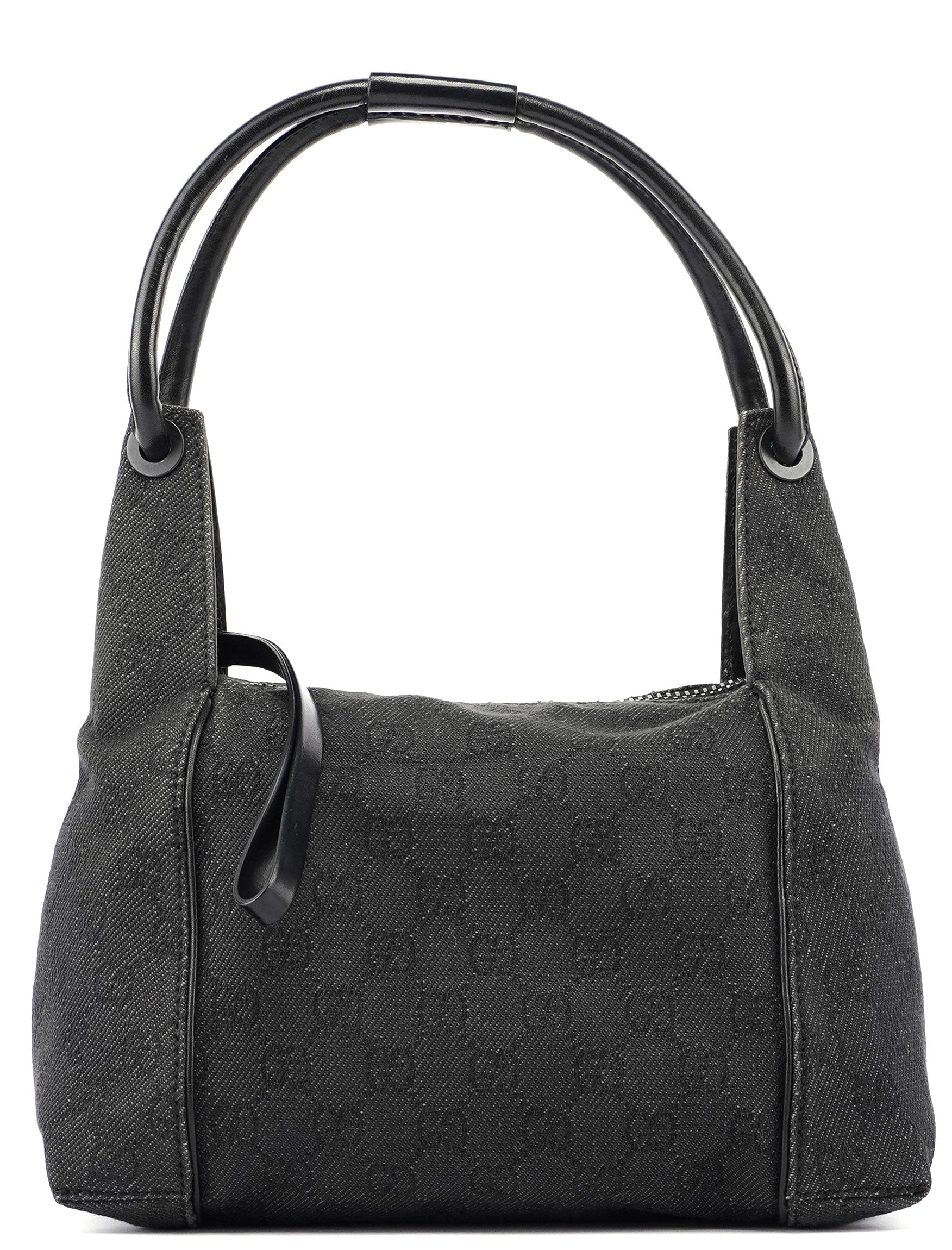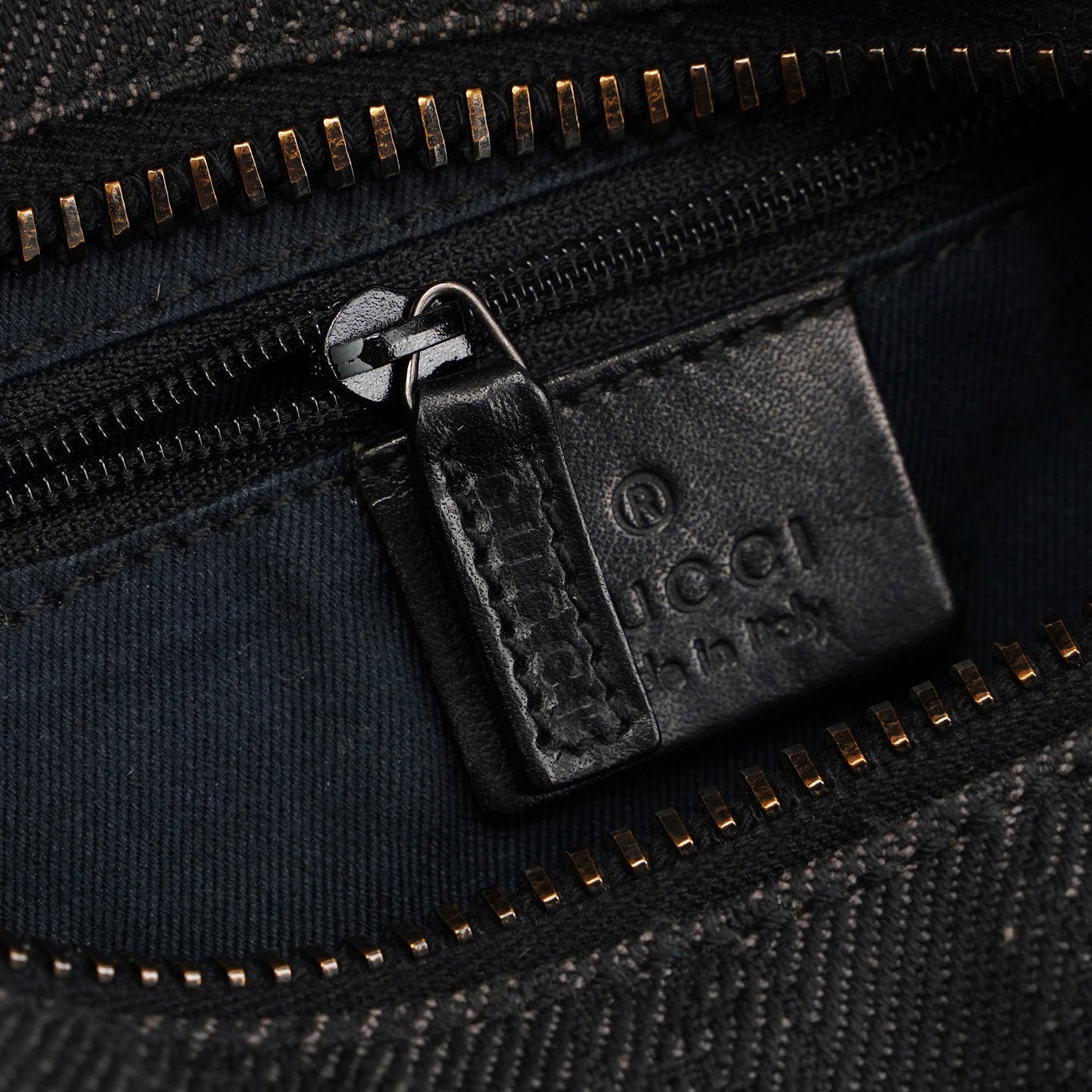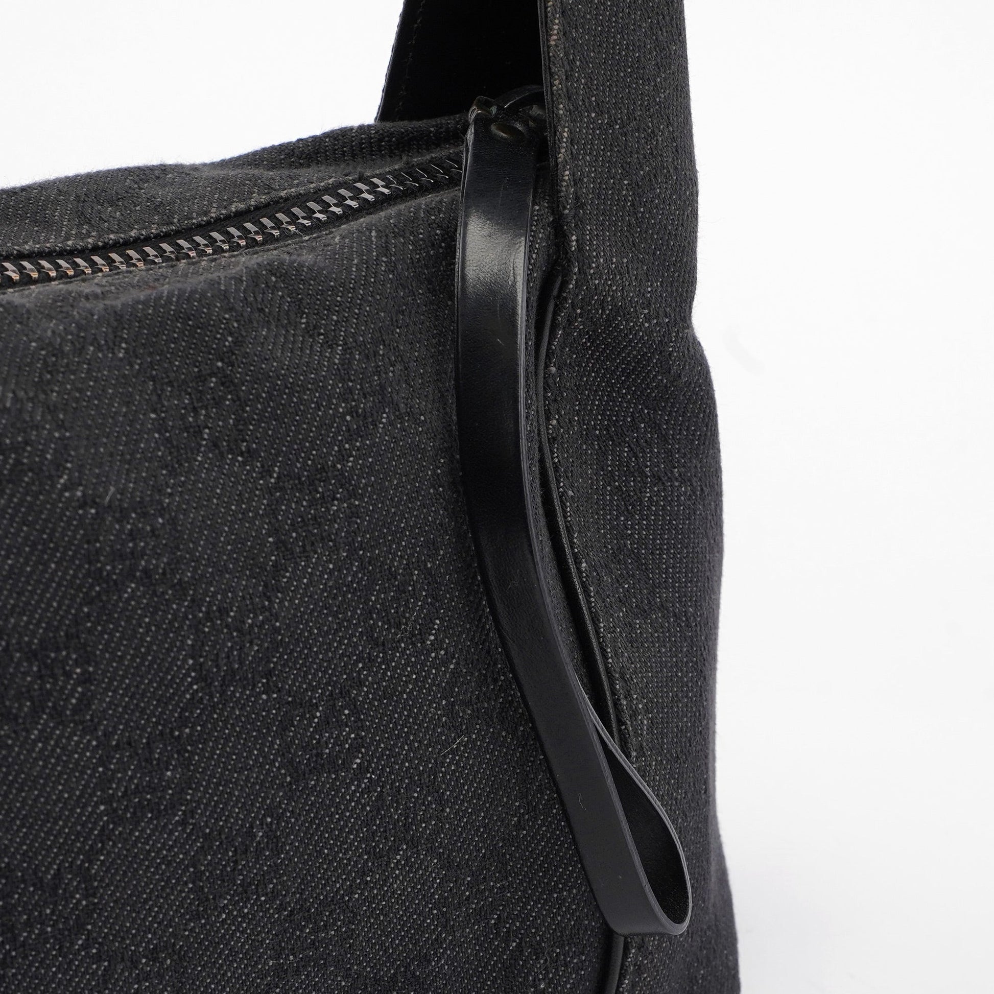 Designed by Tom Ford in the early 2000's, this Gucci GG Monogram shoulder bag exudes sophistication. Handcrafted in the anthracite GG monogram denim with calfskin leather trim, it features anthracite hardware and a convenient zipper closure. Inside, the satin-lined interior houses a practical zipper pocket for organization.