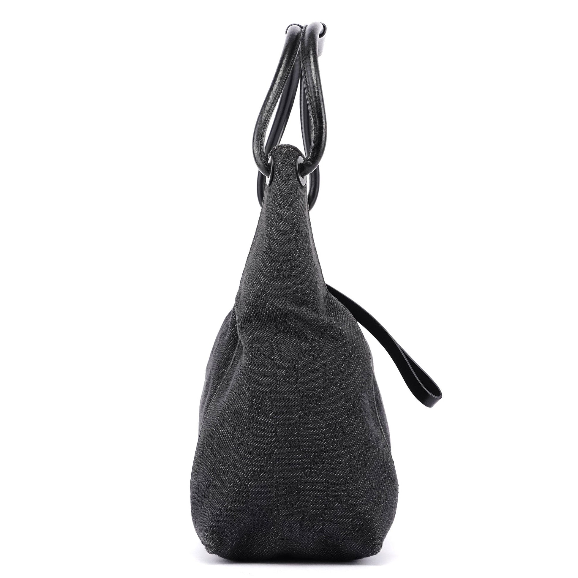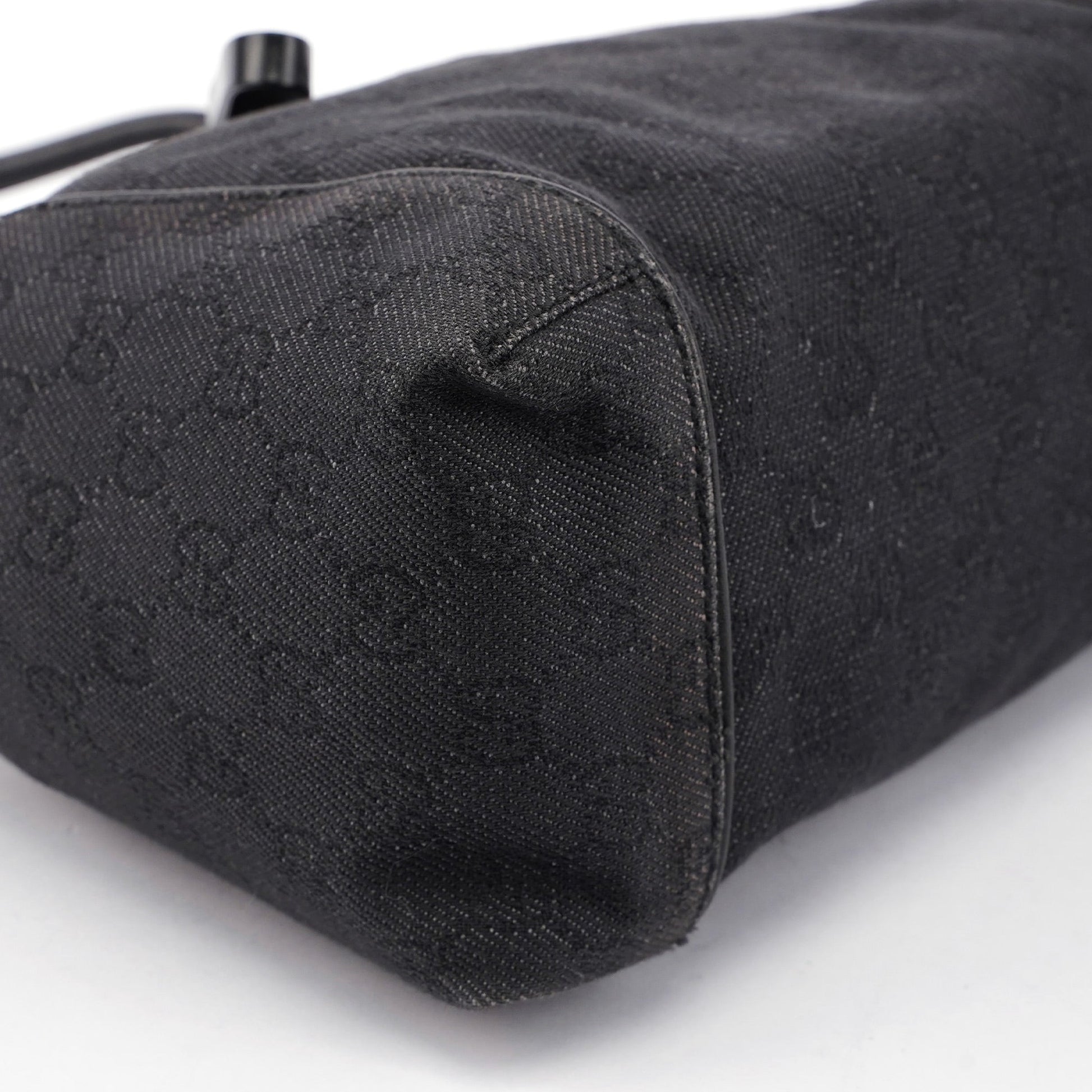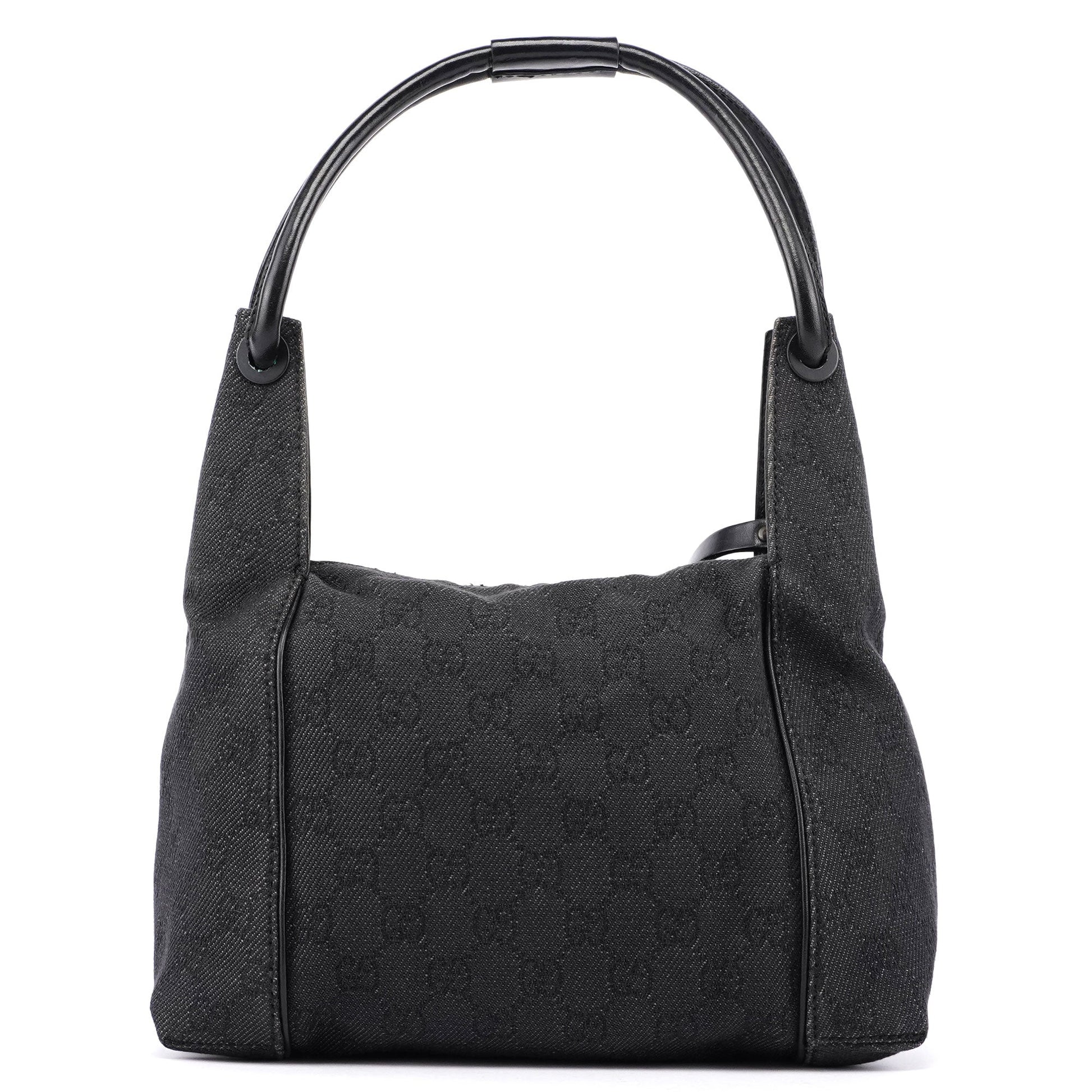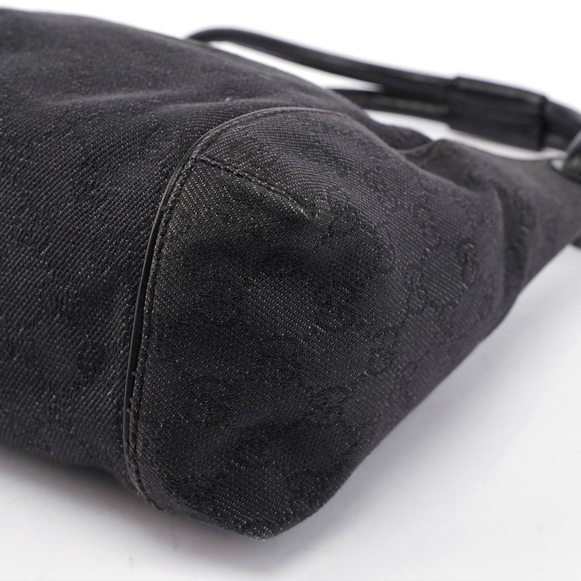 Designed by Tom Ford in the early 2000's, this Gucci GG Monogram shoulder bag exudes sophistication. Handcrafted in the anthracite GG monogram denim with calfskin leather trim, it features anthracite hardware and a convenient zipper closure. Inside, the satin-lined interior houses a practical zipper pocket for organization.