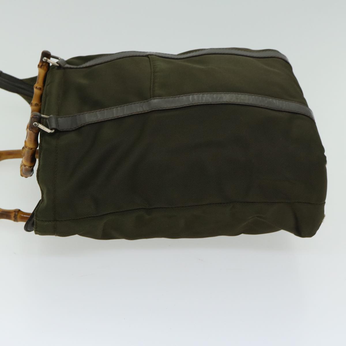 Brand: Gucci Model: Bamboo Color: Khaki Material: Synthetic Inclusions: Dust Bag Dimensions: W25cm x H26cm x D10cm Serial number: 000 1998 0508 Country of origin: Italie Condition: AB - good condition. Introducing the stylish GUCCI Bamboo Khaki Nylon Handbag, a fusion of contemporary design and timeless elegance. Crafted from durable nylon material in a sophisticated khaki hue, this handbag is the epitome of modern luxury. Please note that this item displays signs of wear, including a slight loss of shape and rubbing on the exterior surface. The handle may exhibit signs of rubbing as well. Additionally, the metal fittings may have slight scratches due to regular use. Inside, you may find rubbing, while the pockets and corners may also exhibit rubbing. Despite these minor imperfections, the GUCCI Bamboo handbag remains a versatile accessory that effortlessly elevates any ensemble. Whether you're running errands or attending a social event, carry your essentials in style with this iconic GUCCI handbag. We recommend that you look at all the pictures before making your purchase to ensure that you are satisfied with the condition of the item.