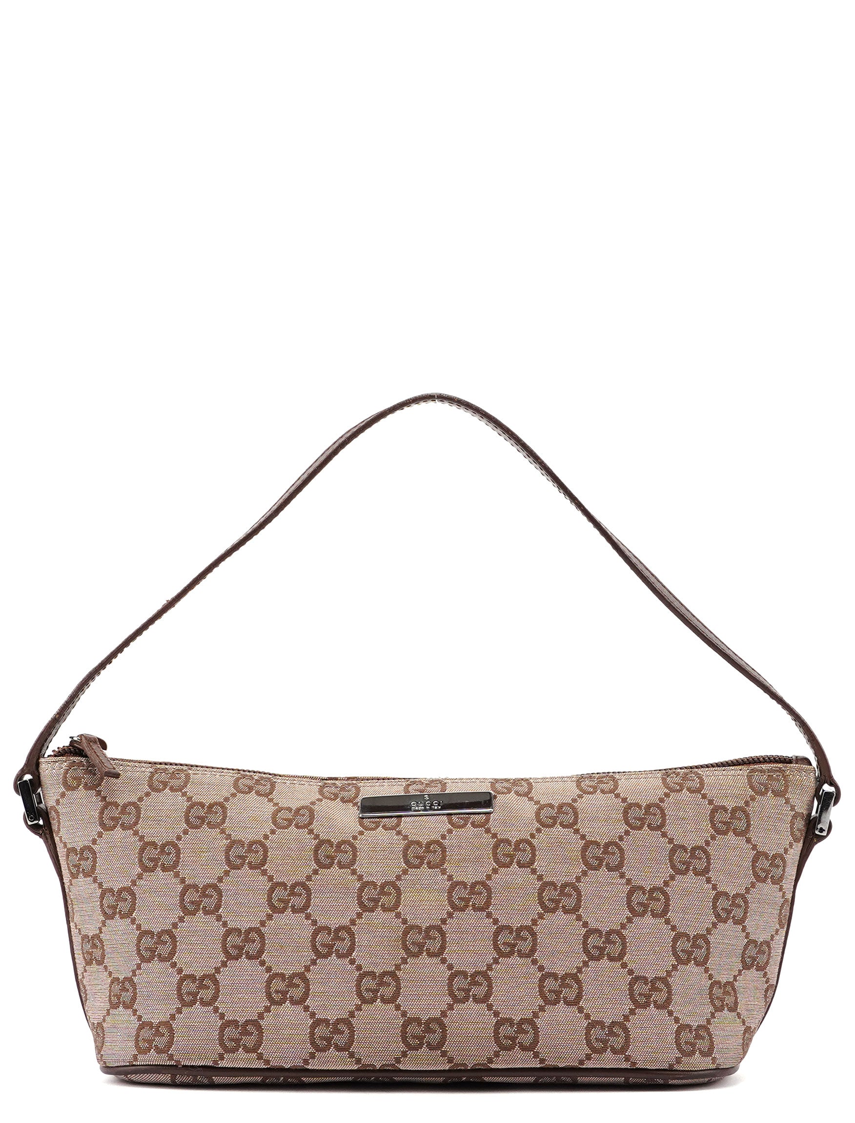 Explore timeless elegance with the Gucci GG Boat Pochette by Tom Ford, circa late 1990s. This exquisite piece combines beige GG canvas with brown leather trim and silver-tone hardware. Its secure zip closure and satin-lined interior offer luxury and practicality, while the subtle Gucci plaque adds a touch of heritage. A perfect blend of vintage charm and sophistication.