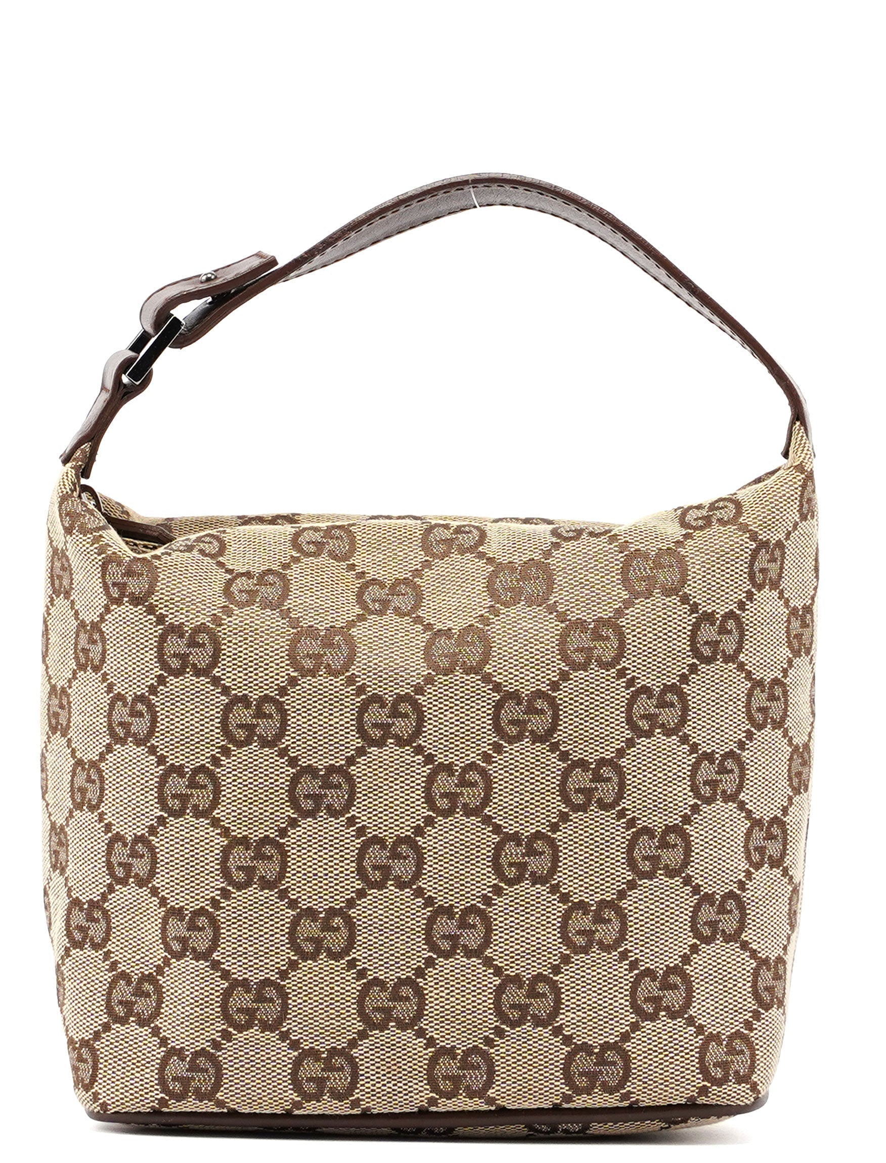 Designed by Tom Ford in the late 1990's, this Gucci GG handbag is crafted from the iconic beige GG monogram canvas with tonal leather trim. Its silver-tone hardware adds a touch of elegance, while the satin-lined interior features a convenient pocket for organization.