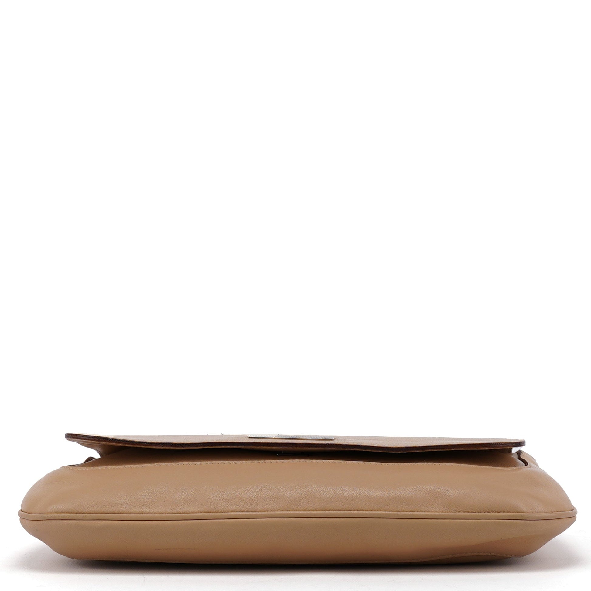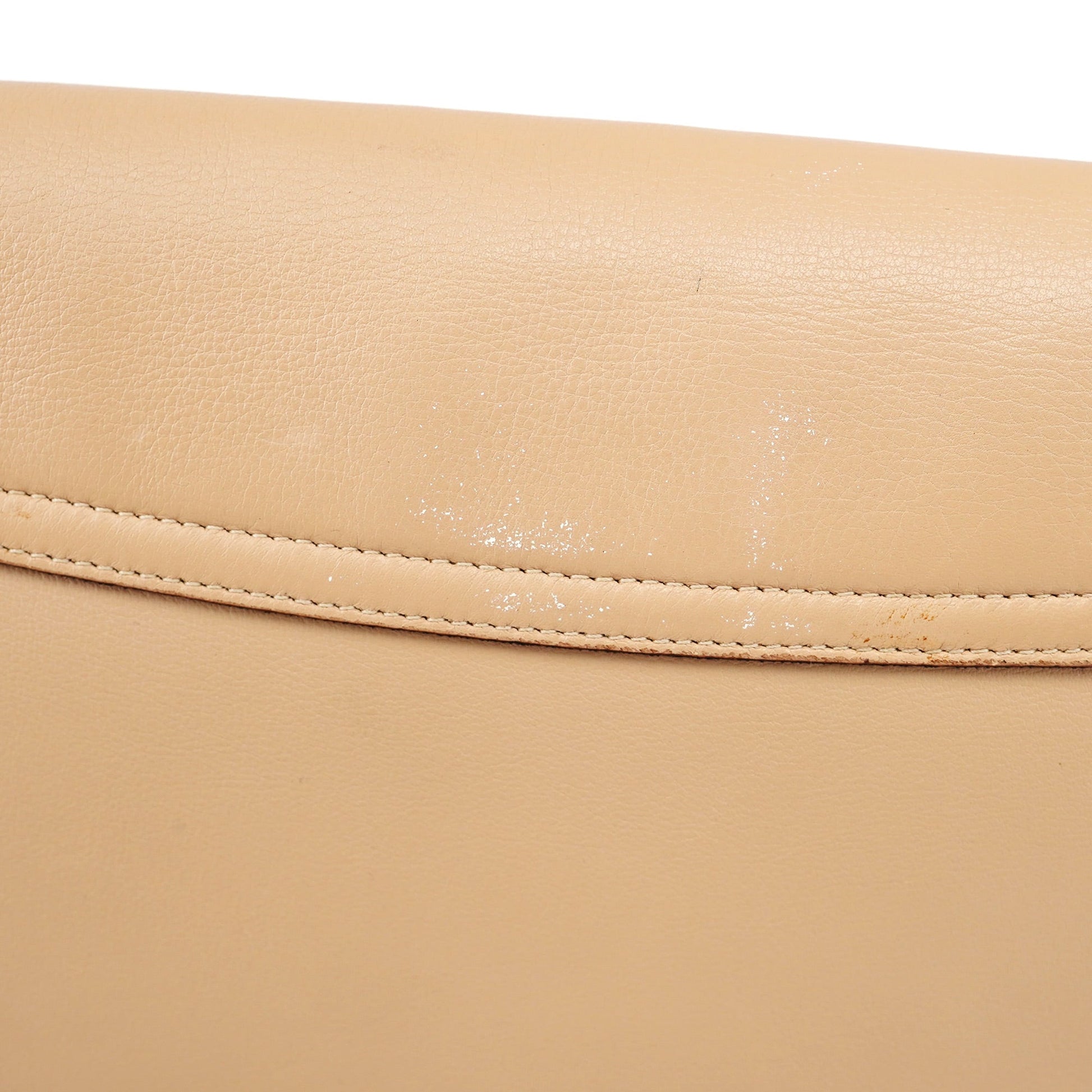 Designed by Tom Ford in the late 1990s, this Gucci Vitello Chain bag is handcrafted in beige leather and silver-tone hardware engraved with Gucci logo. It features chain strap, a magnetic closure, an interior lined with satin that includes an interior zipper pocket. The Gucci logo plate adorns the front, showcasing timeless elegance.