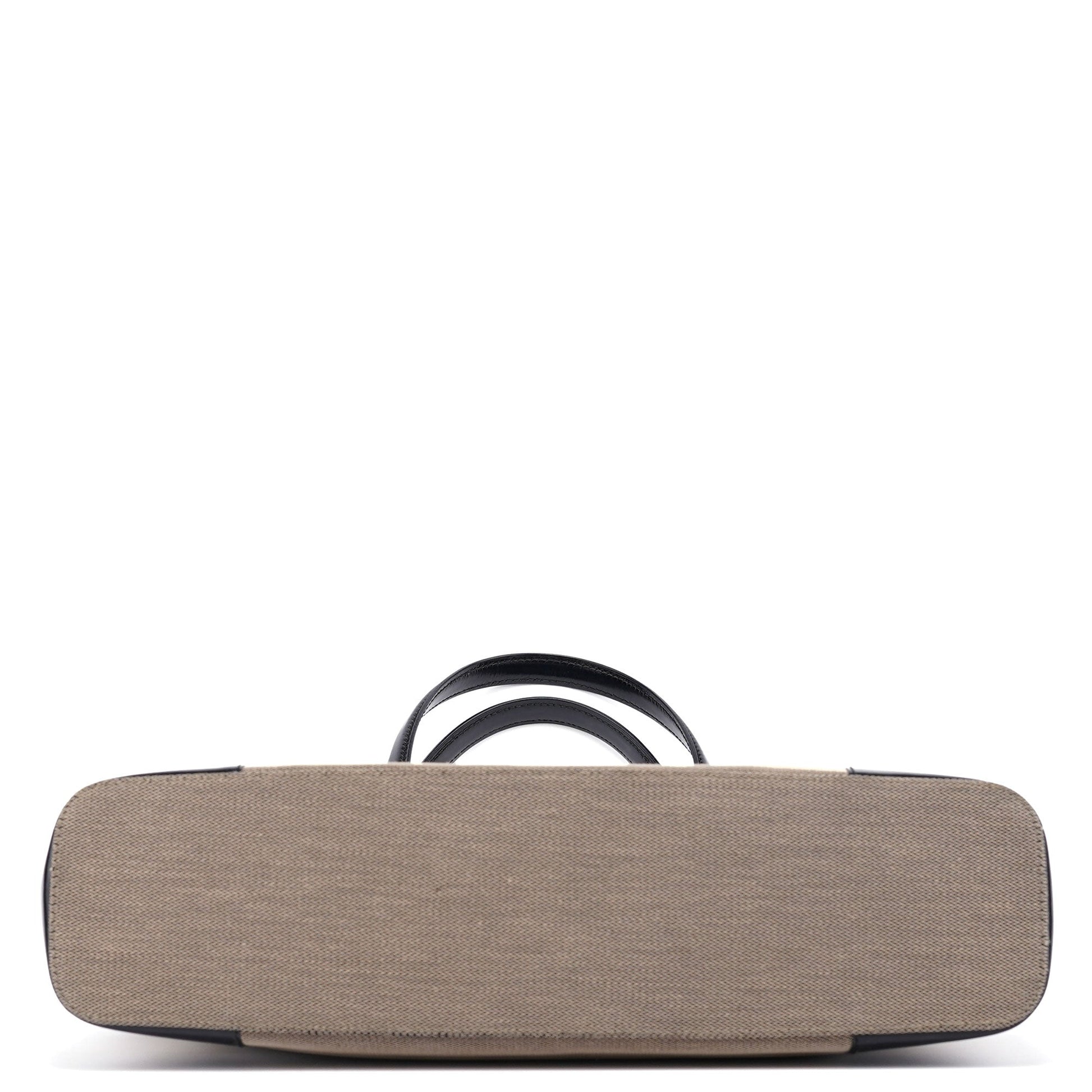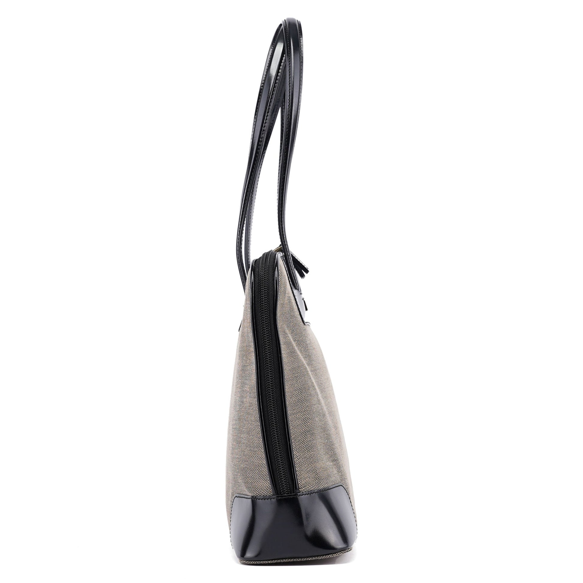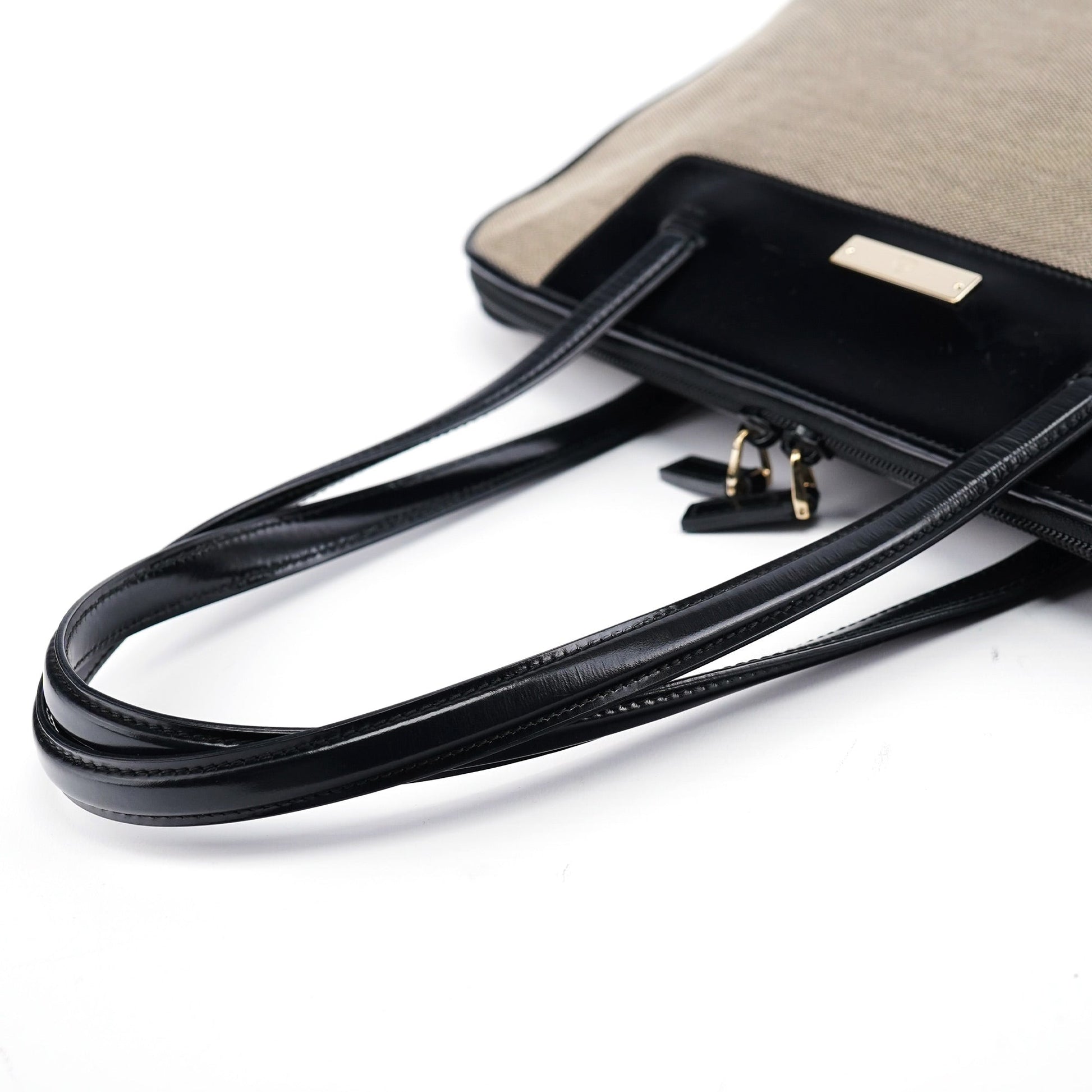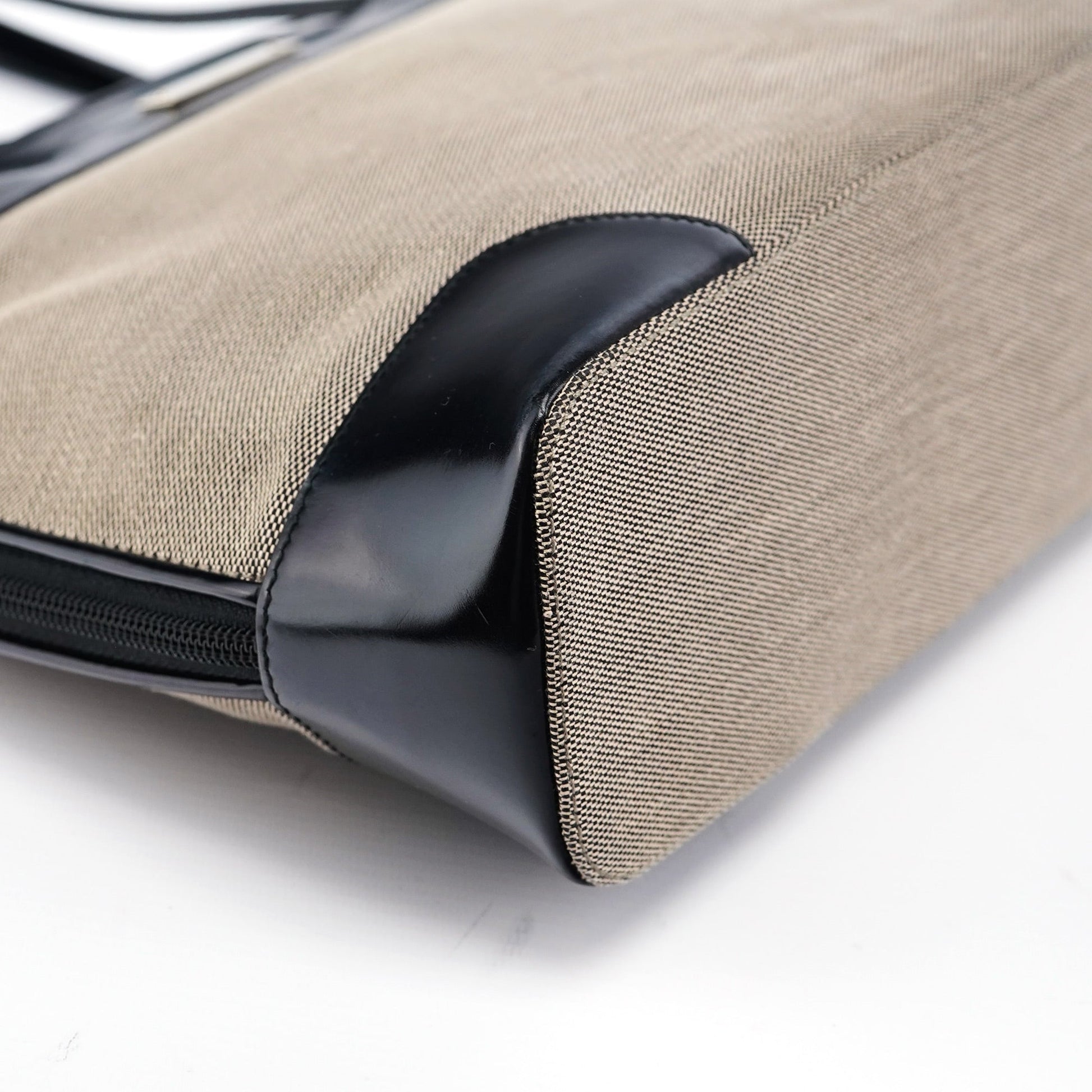 Beige Canvas Patent Leather Tote Bag