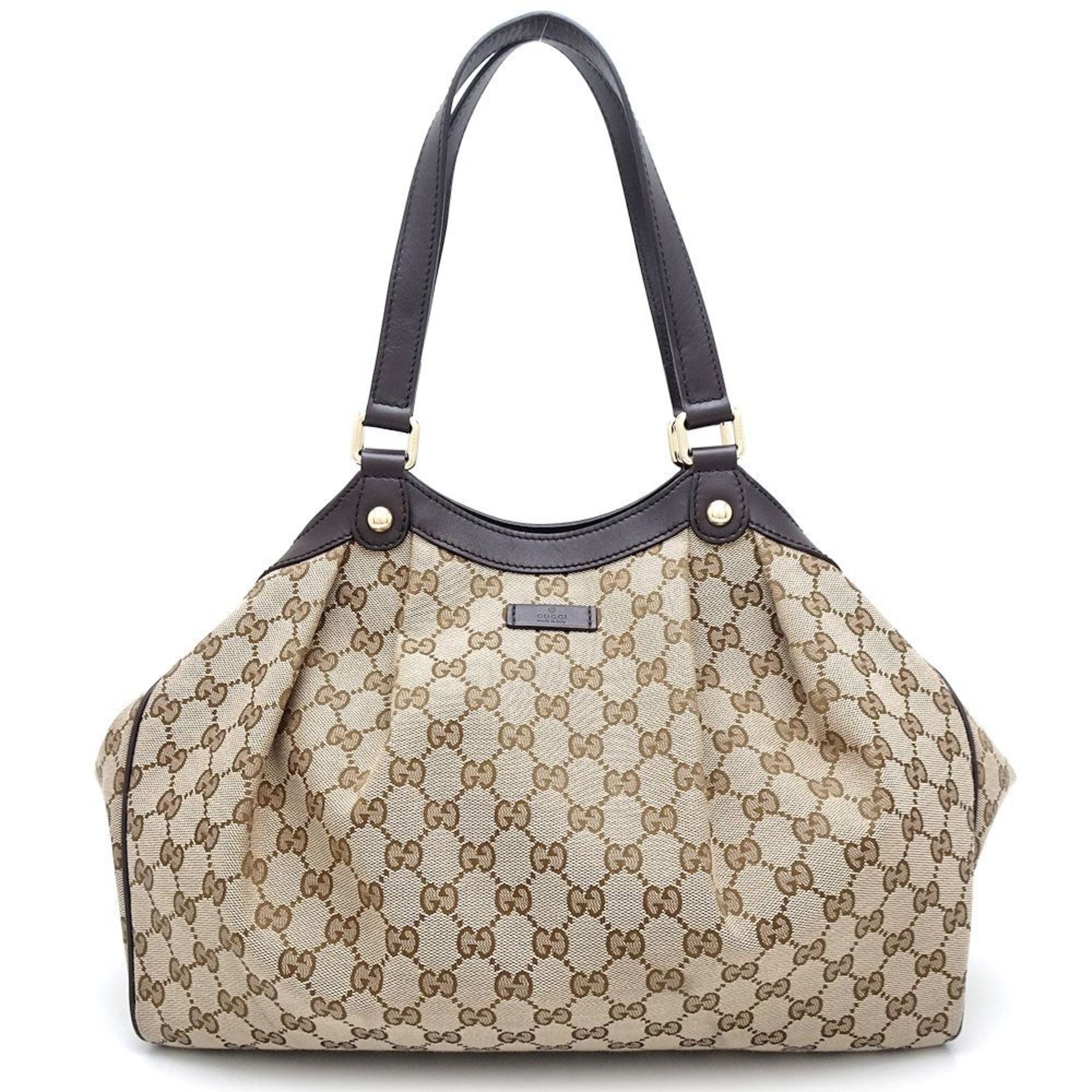 Gucci Beige Dark Brown Gg Canvas Leather Tote Bag ()