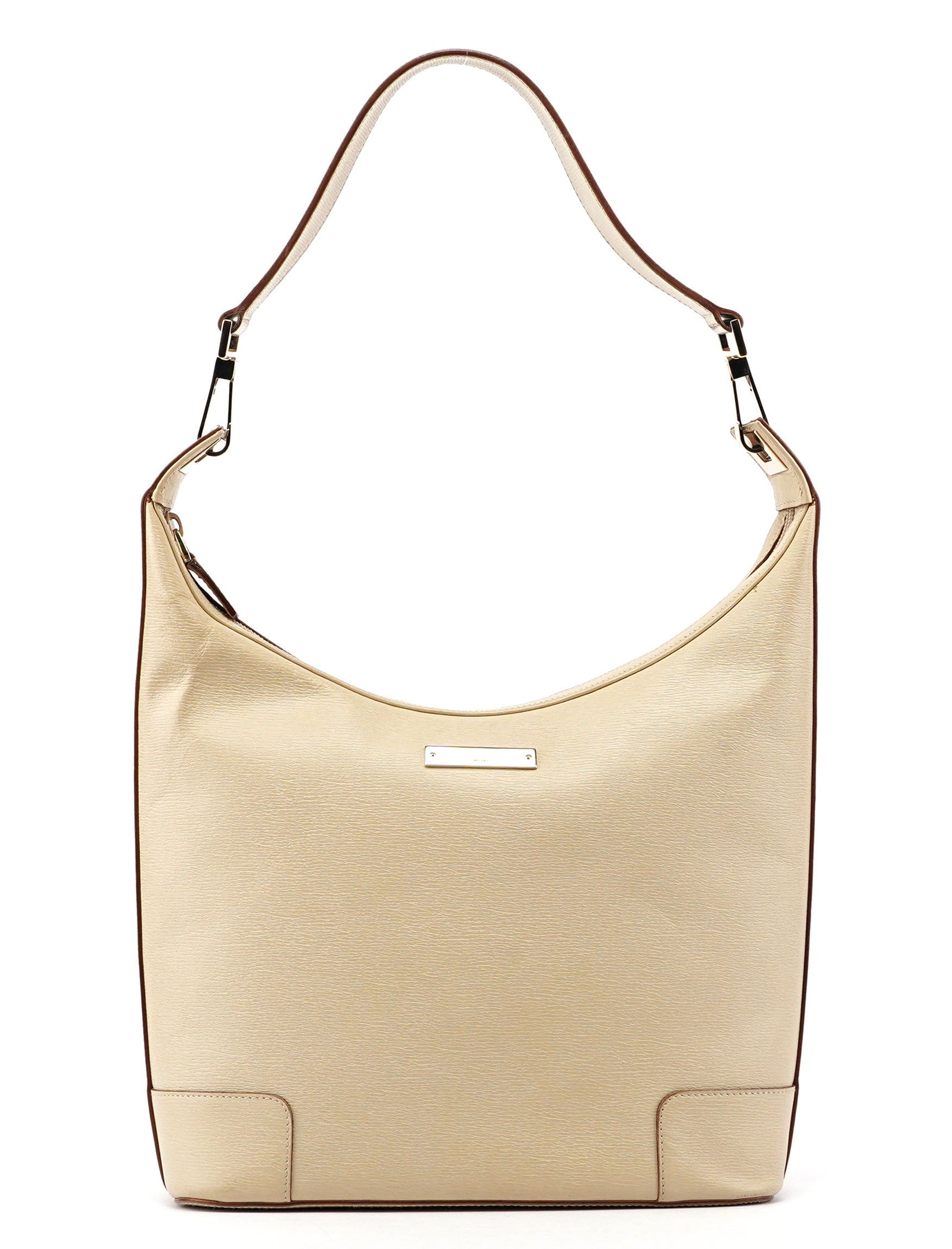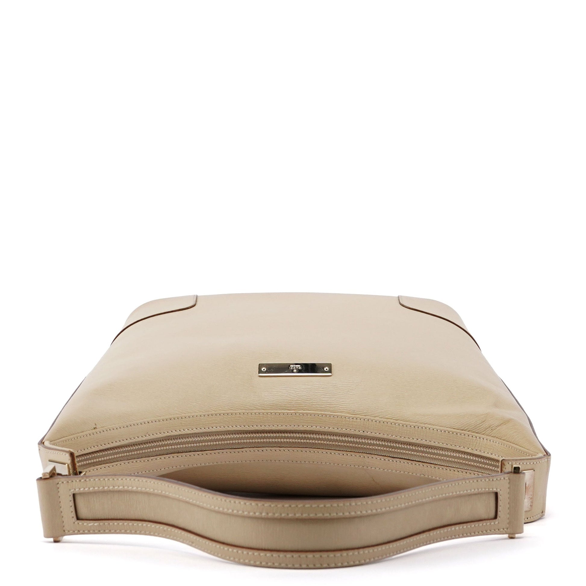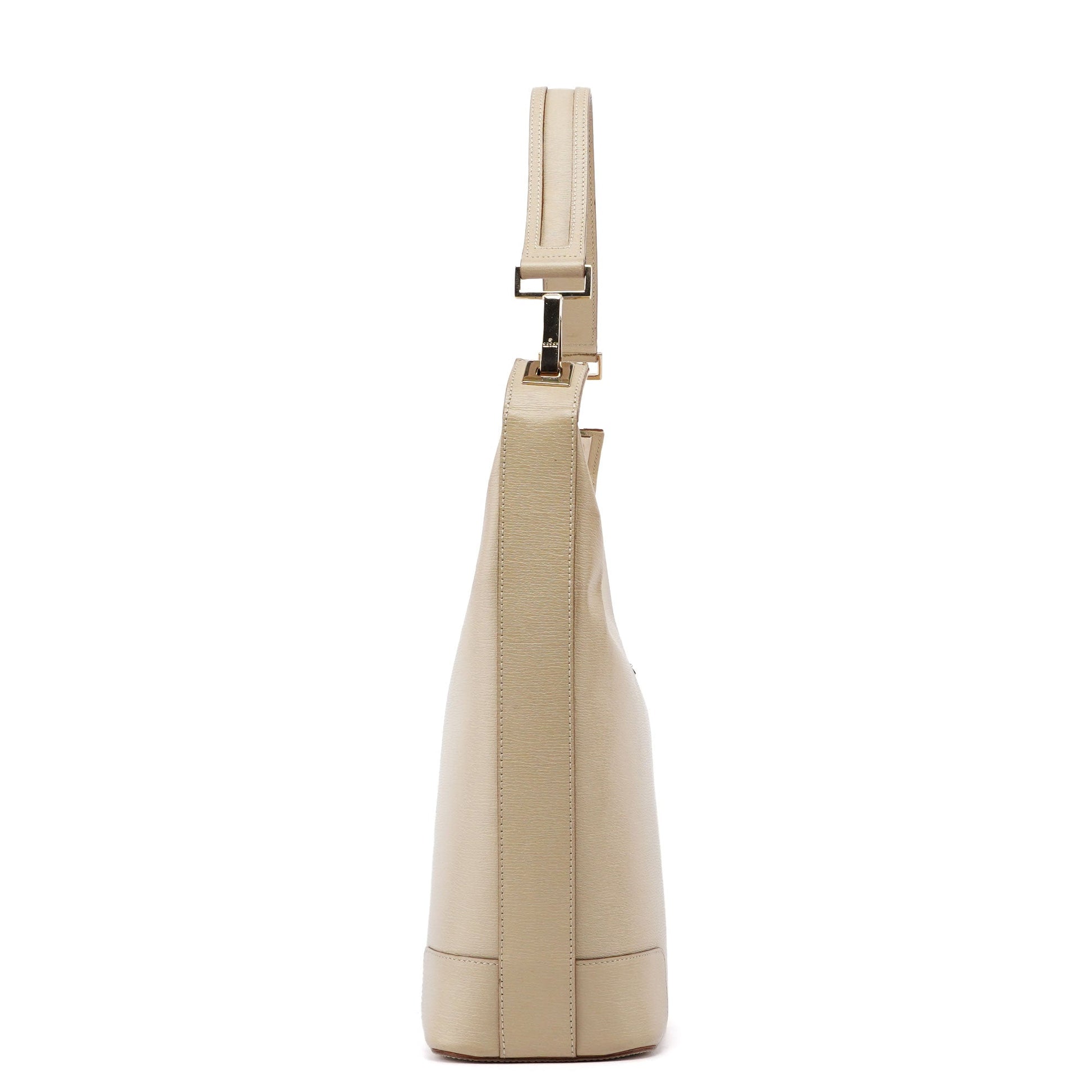 Designed by Tom Ford in the late '90s, the Gucci hobo shoulder bag exudes elegance. Handcrafted in beige leather, it boasts gold-tone hardware engraved with the Gucci logo. The zipper closure opens to a satin-lined interior including an interior zipper pocket. The Gucci logo plate at the front adds a signature touch of elegance.