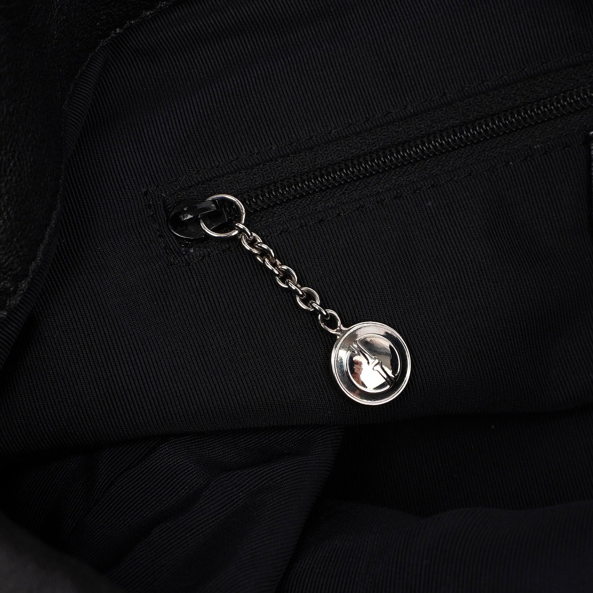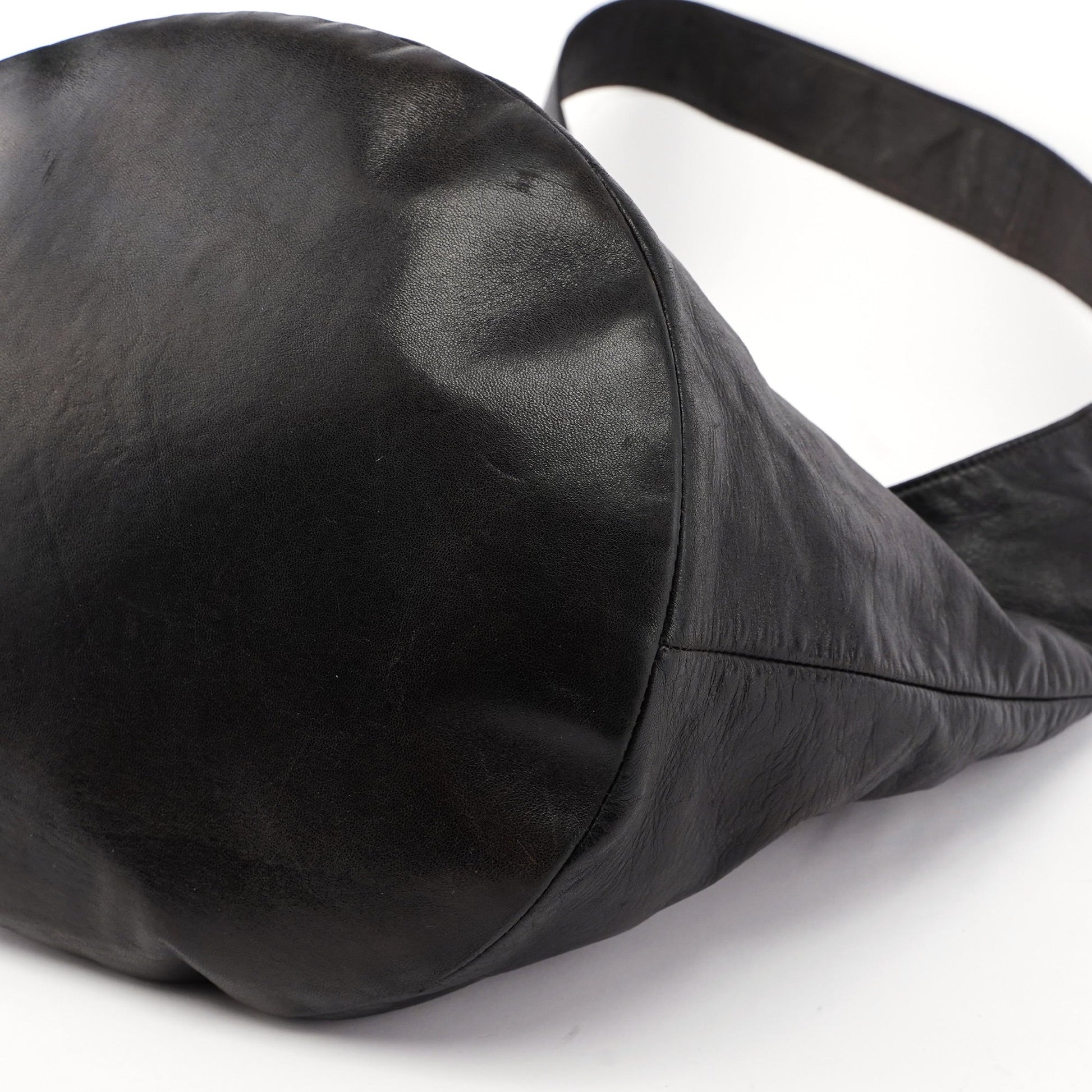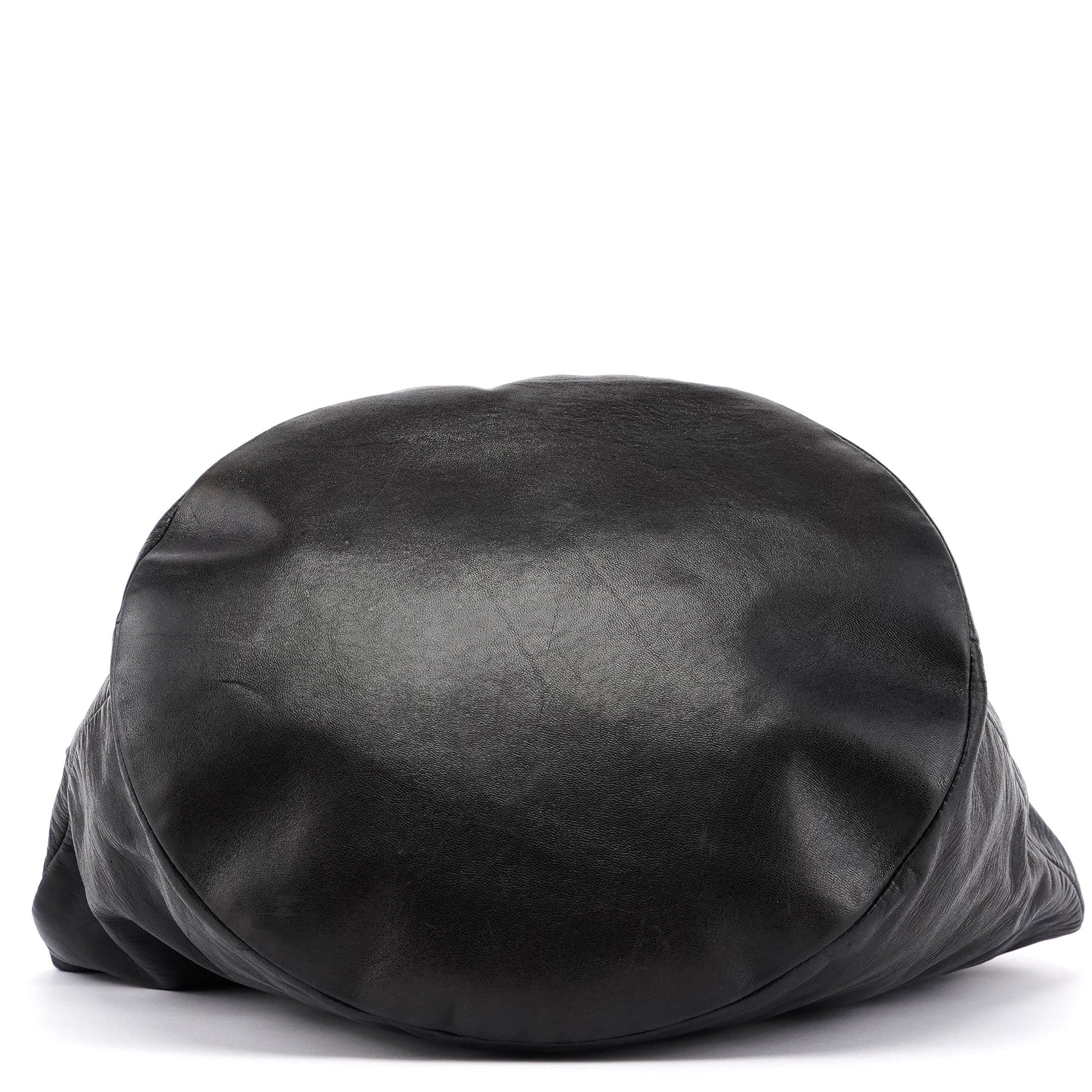 Handcrafted from black leather, this Gucci Vitello Bamboo 2-Way bag by Tom Ford from 1996 features two bamboo handles, a leather strap, and silver-tone hardware. The bag has a magnetic closure, a cotton-lined interior, and an interior zipper pocket, showcasing timeless elegance.