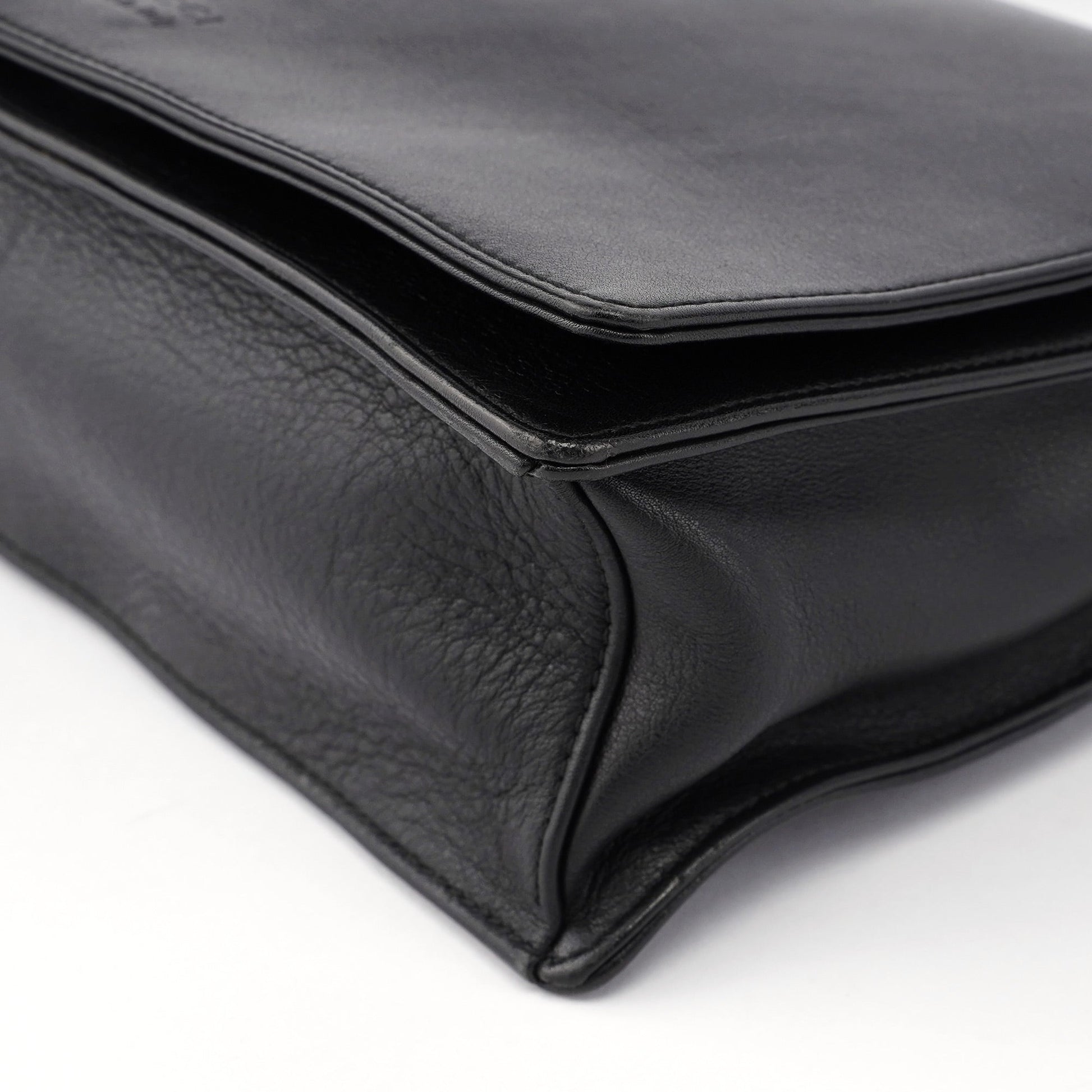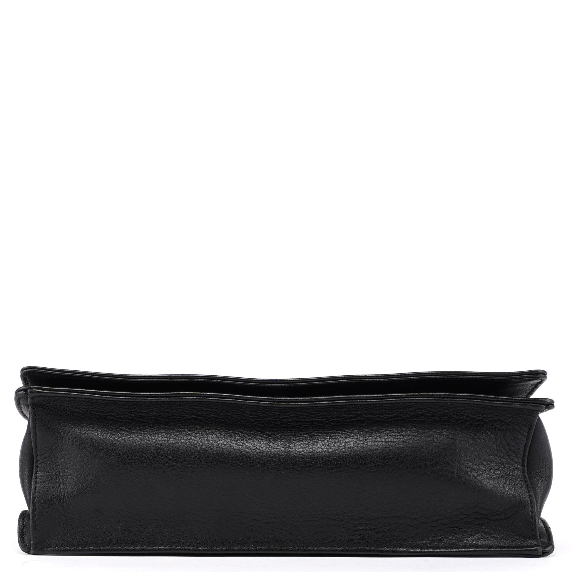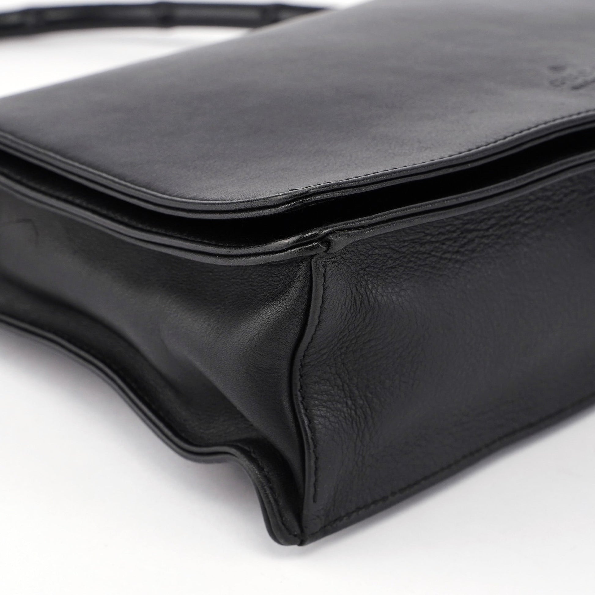 Black Calfskin Bamboo Flap Shoulder Bag