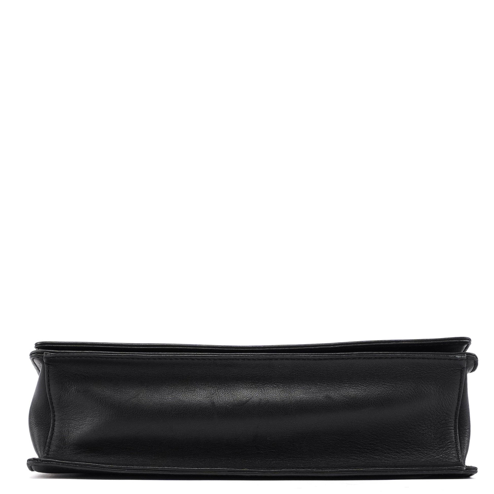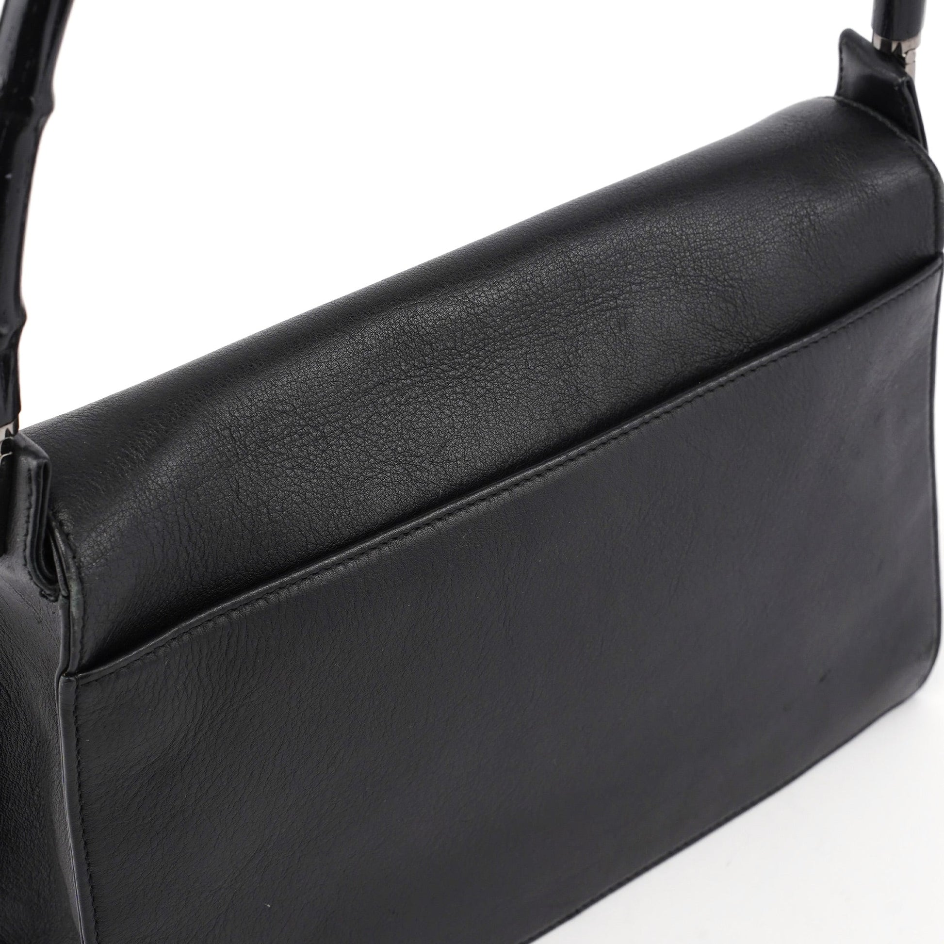 Black Calfskin Bamboo Flap Shoulder Bag