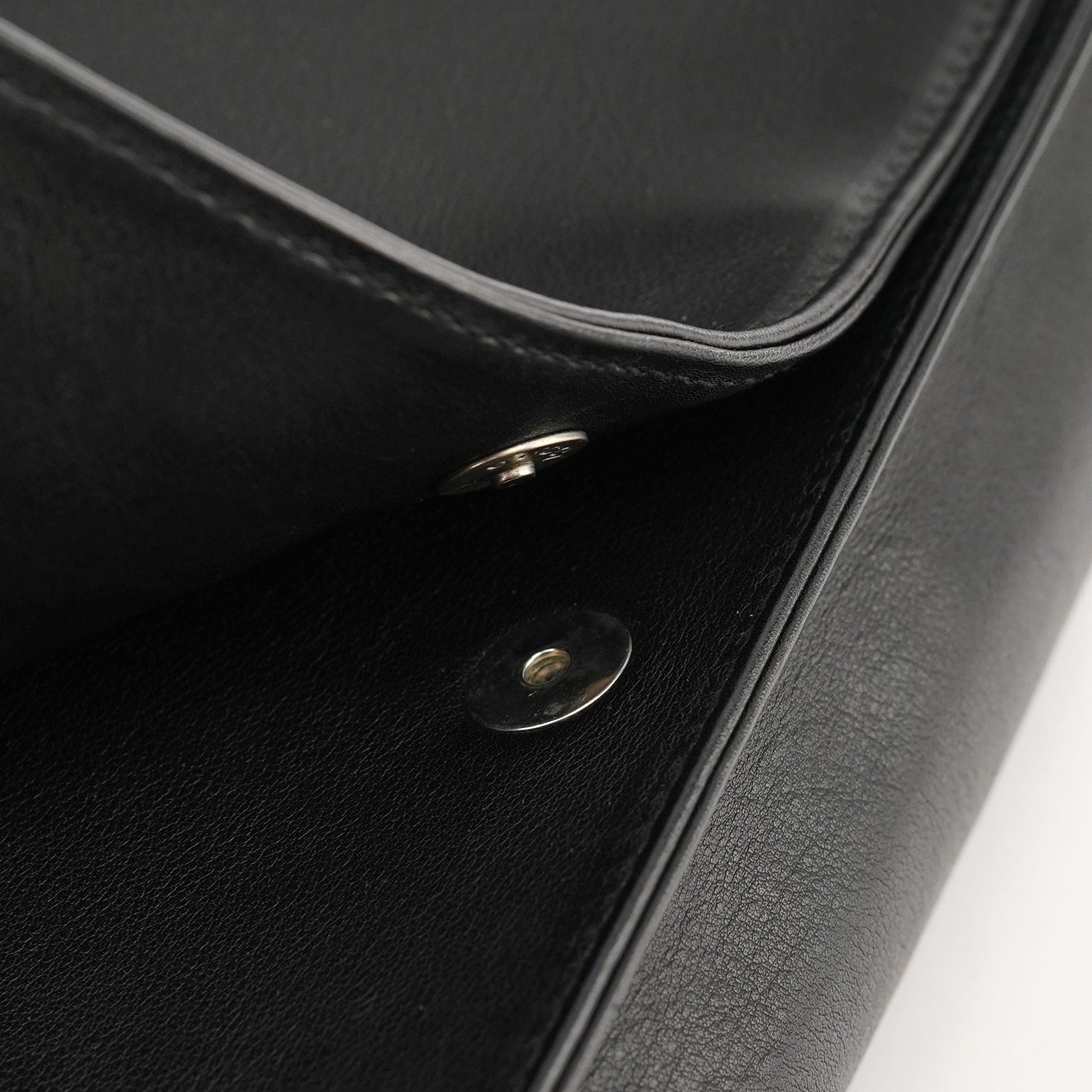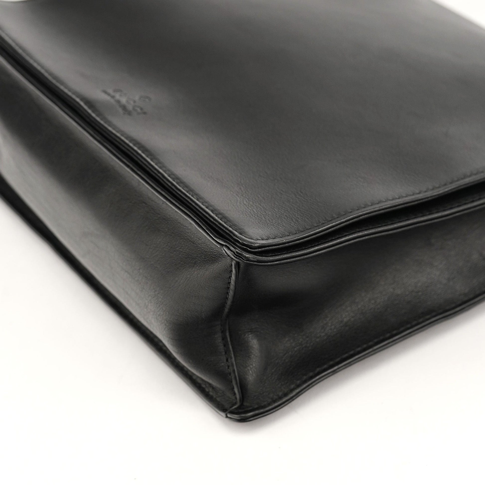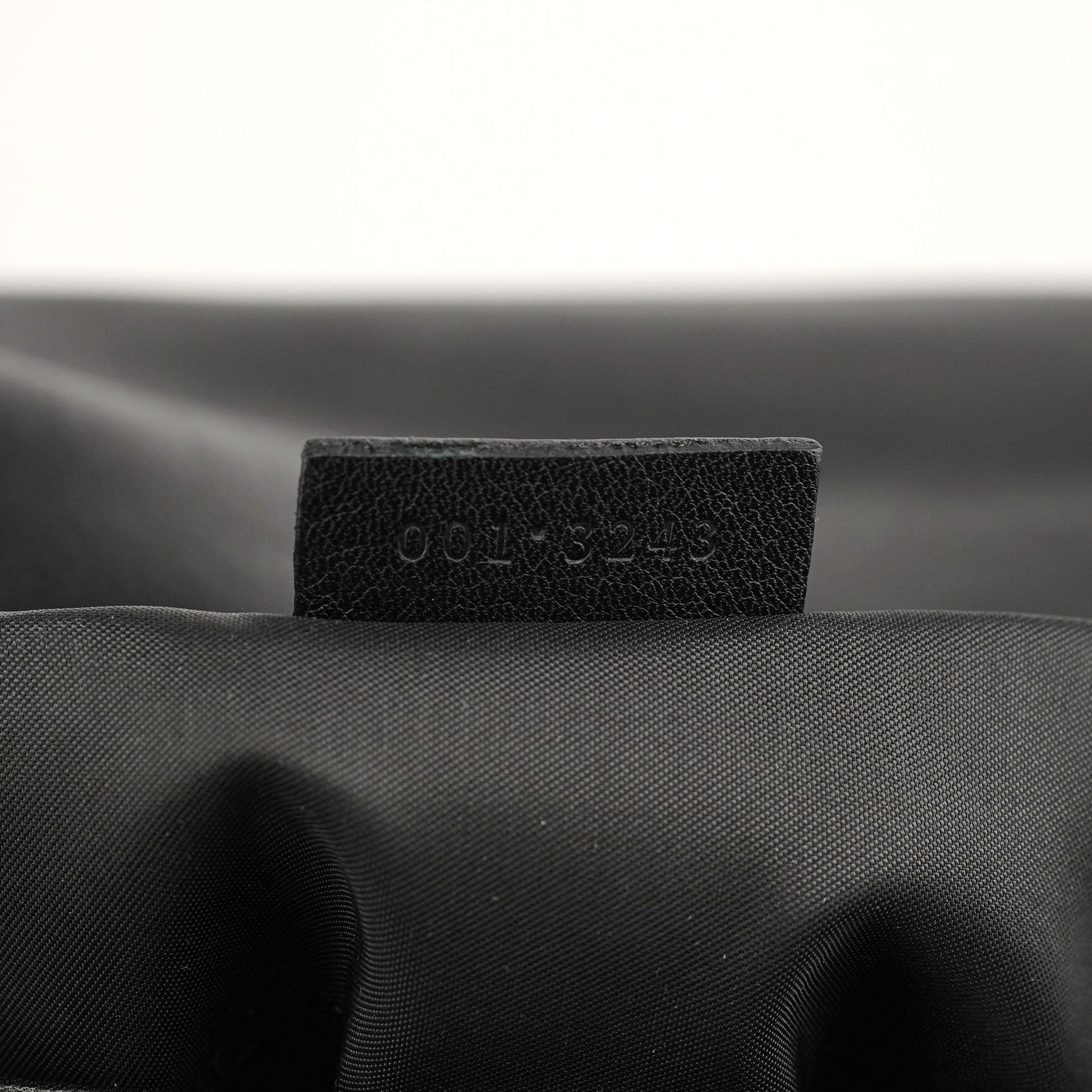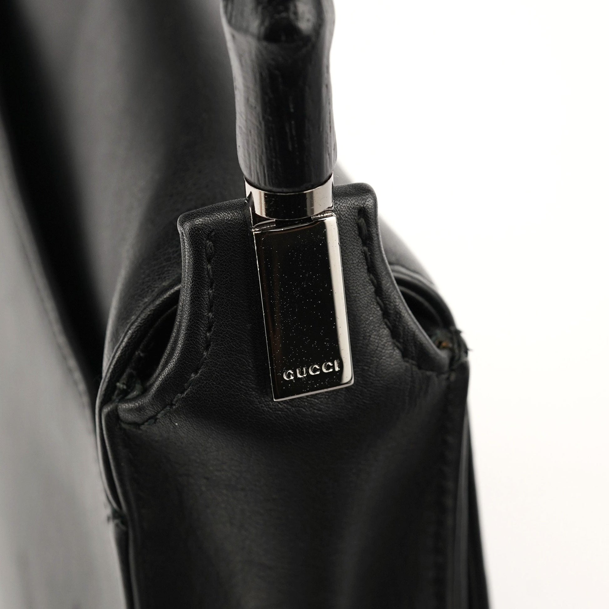 Designed by Tom Ford in the late 1990s, this Gucci Bamboo shoulder bag is crafted from black calfskin leather. Featuring a signature bamboo handle, silver-tone hardware with Gucci logo engraving, and a magnetic flap closure, it embodies timeless elegance. The satin-lined interior includes a zipper pocket, while the embossed Gucci logo on the front adds a refined finishing touch.