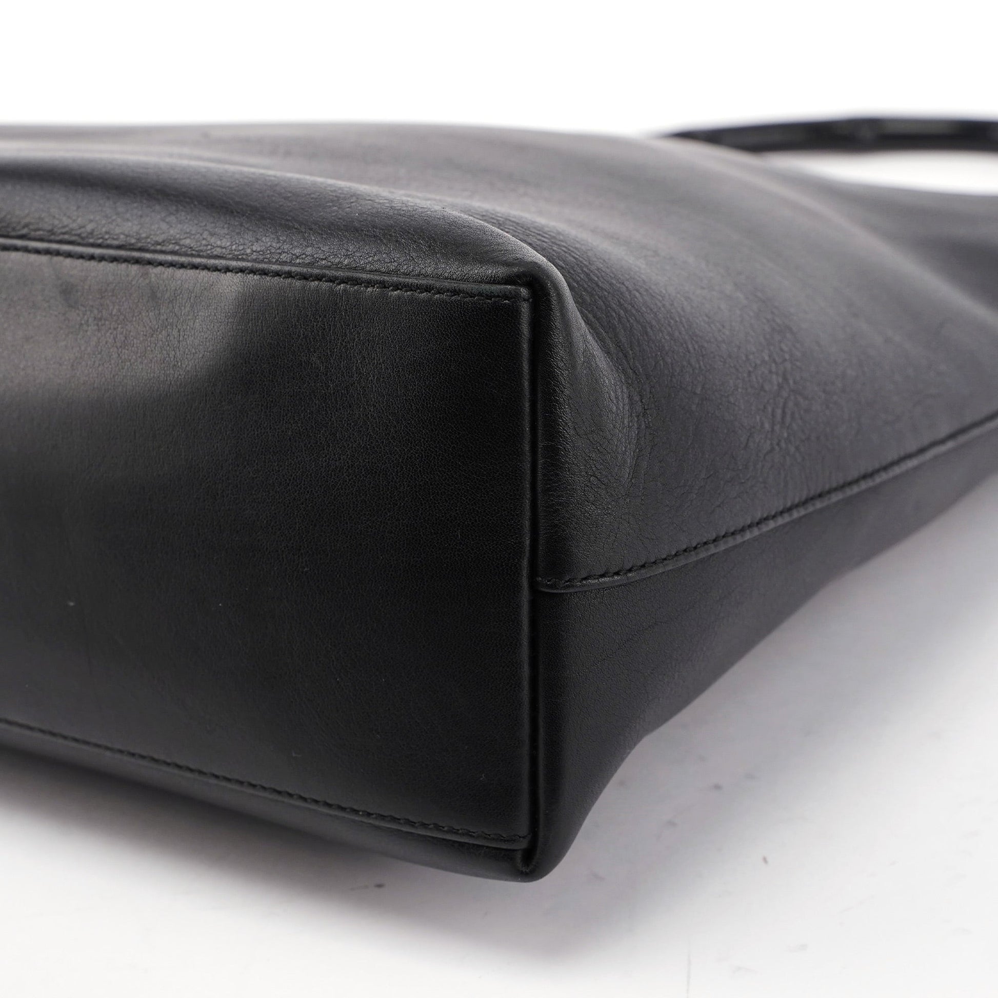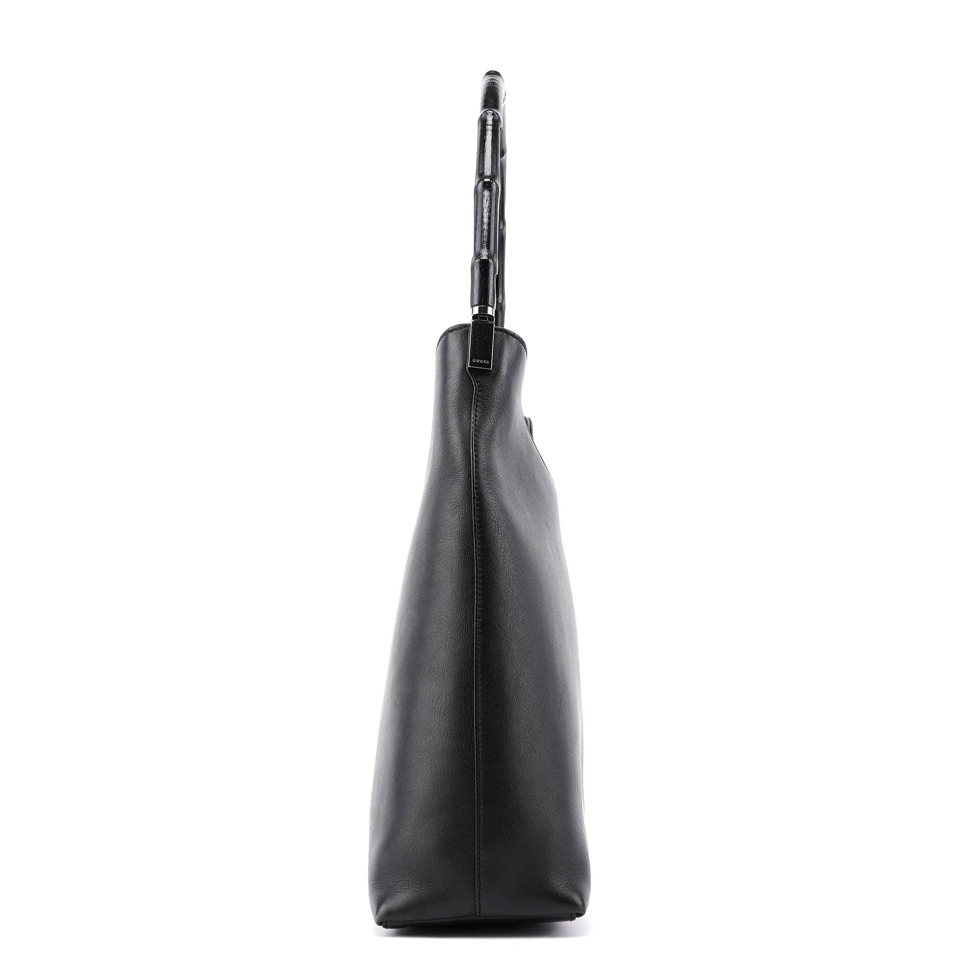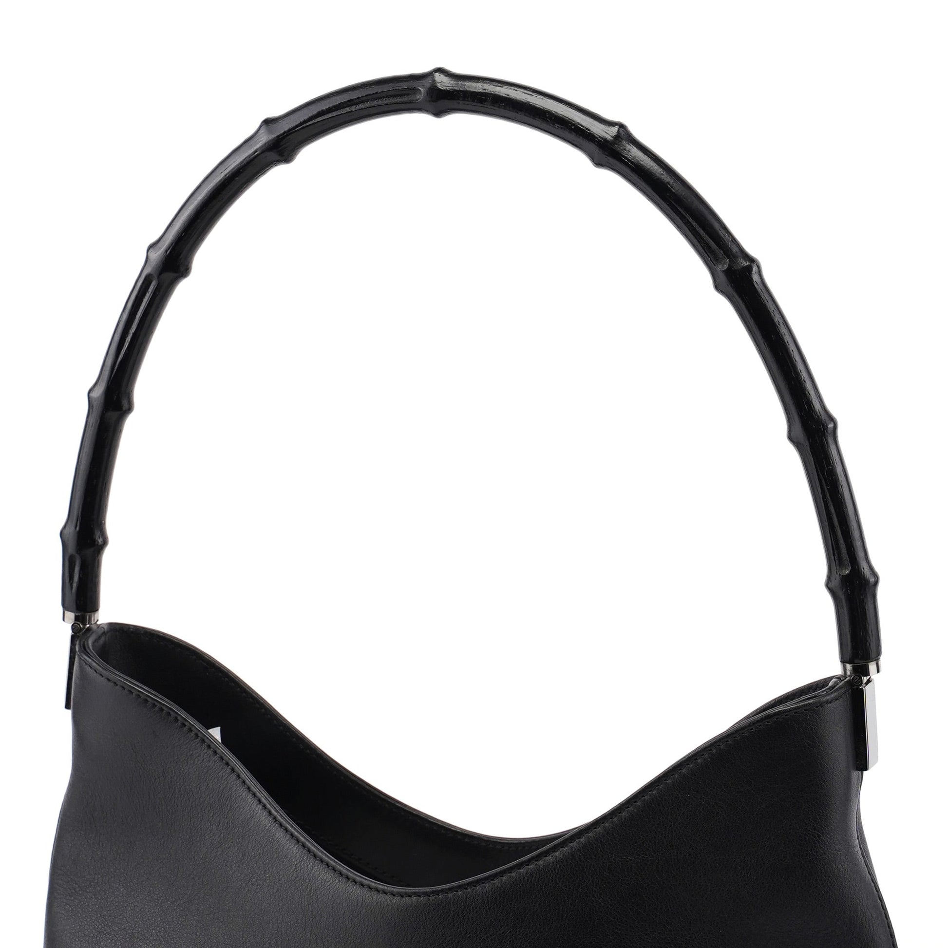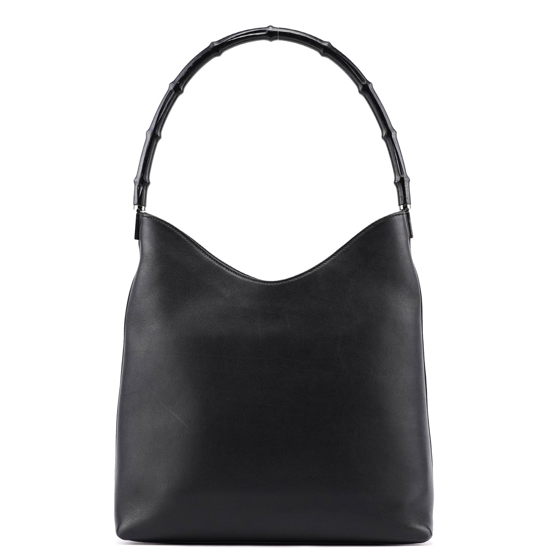 Black Calfskin Bamboo Shoulder Bag