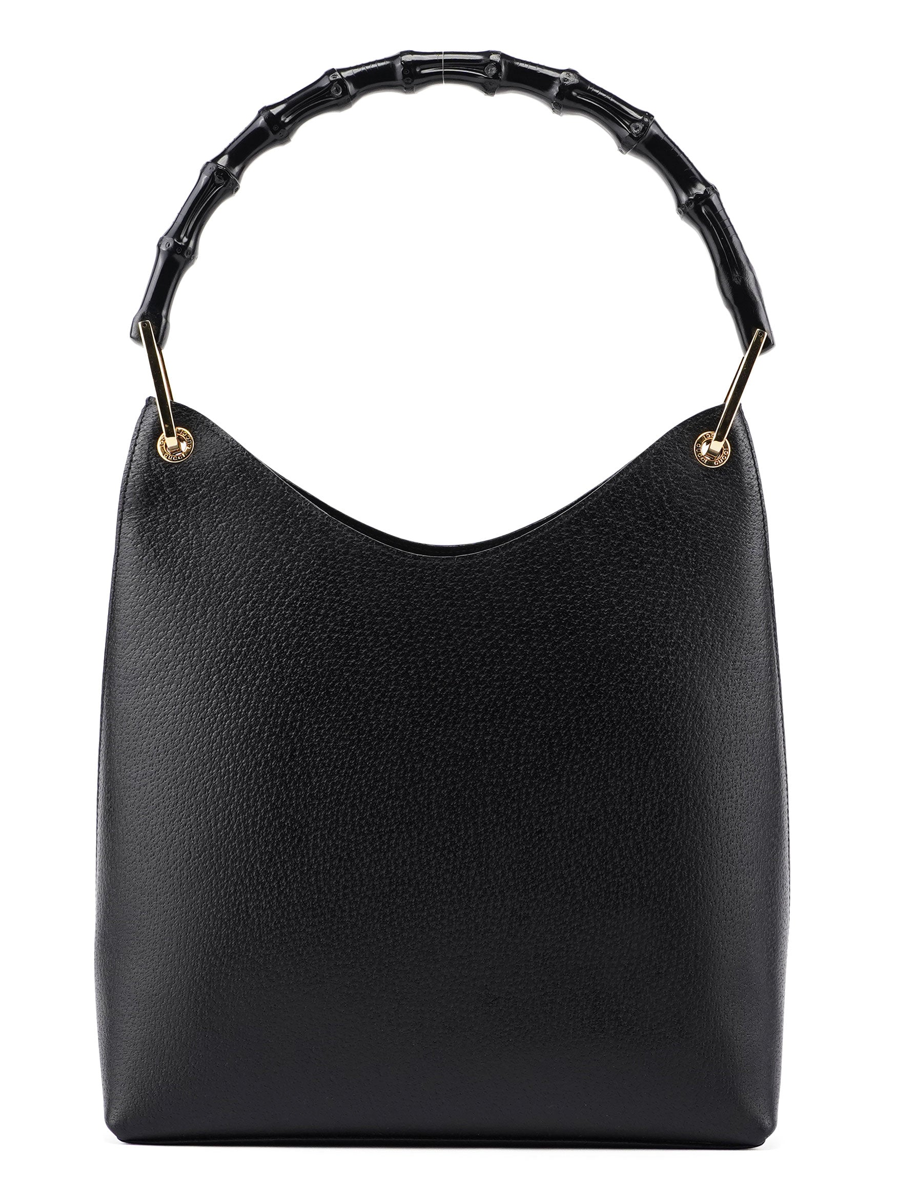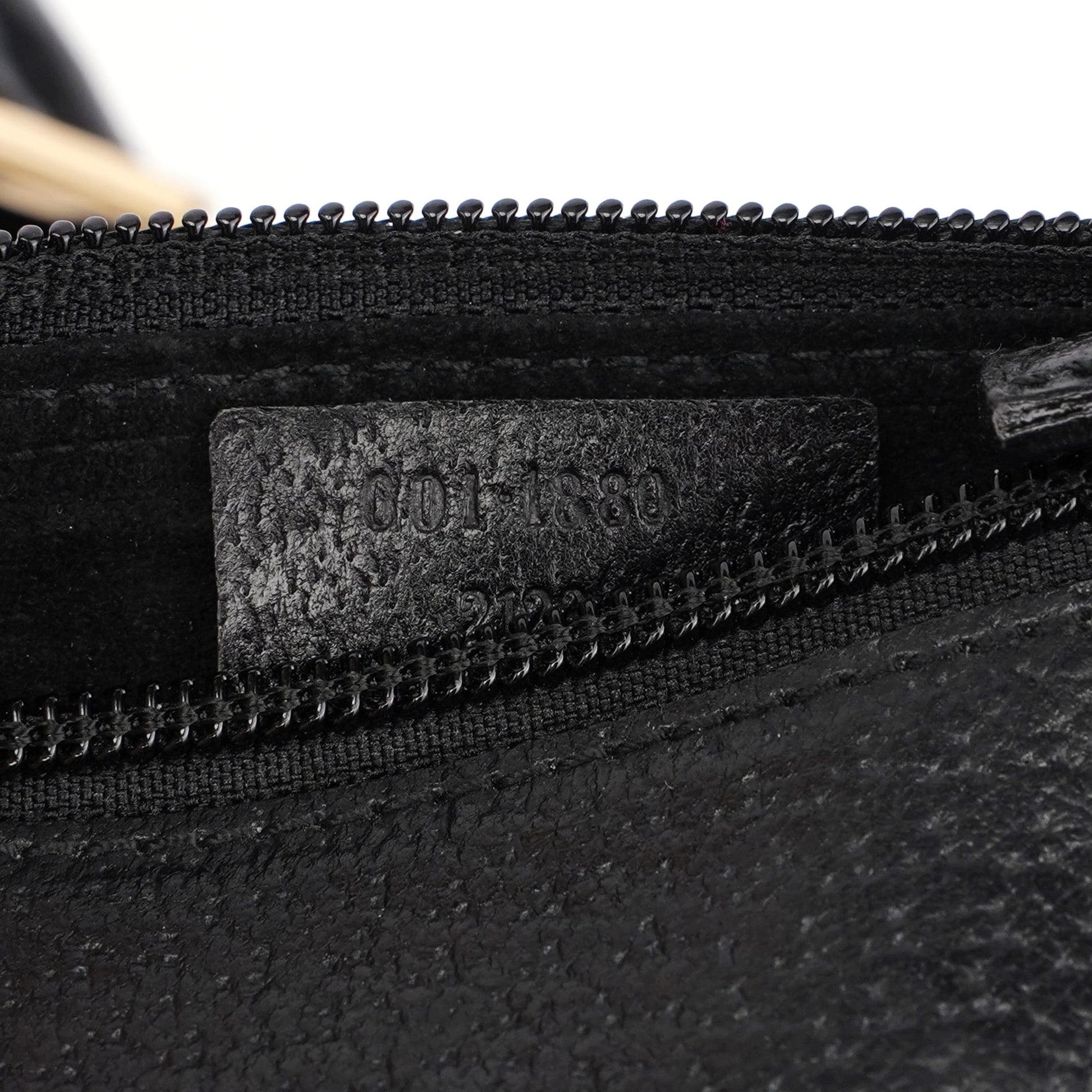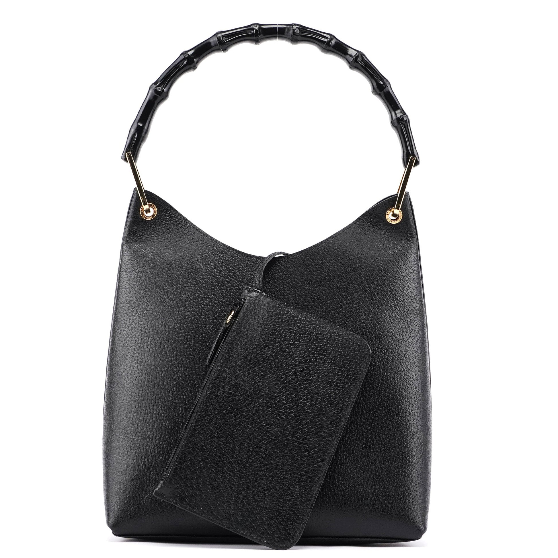 Black Leather Bamboo Shoulder Bag W/ Pouch