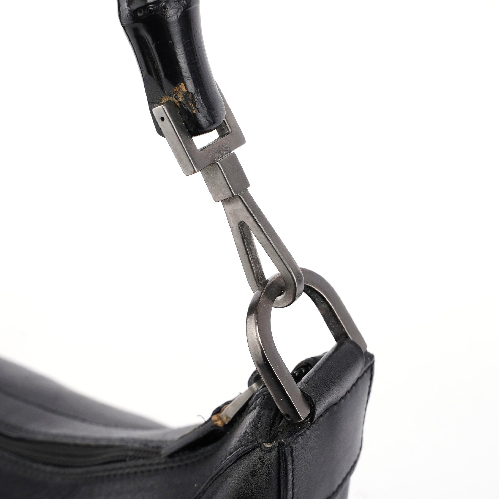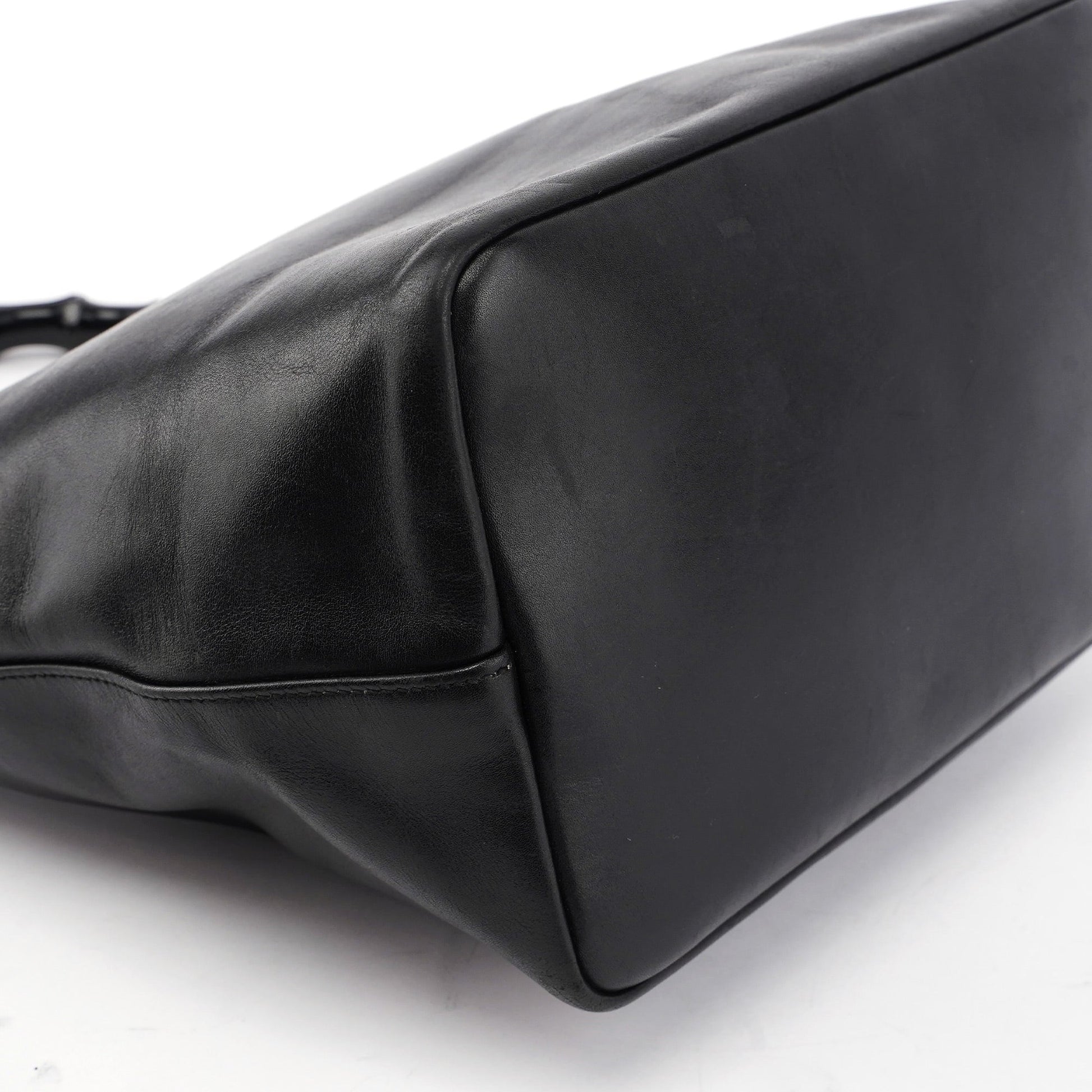 Black Calfskin Bamboo Shoulder Bag