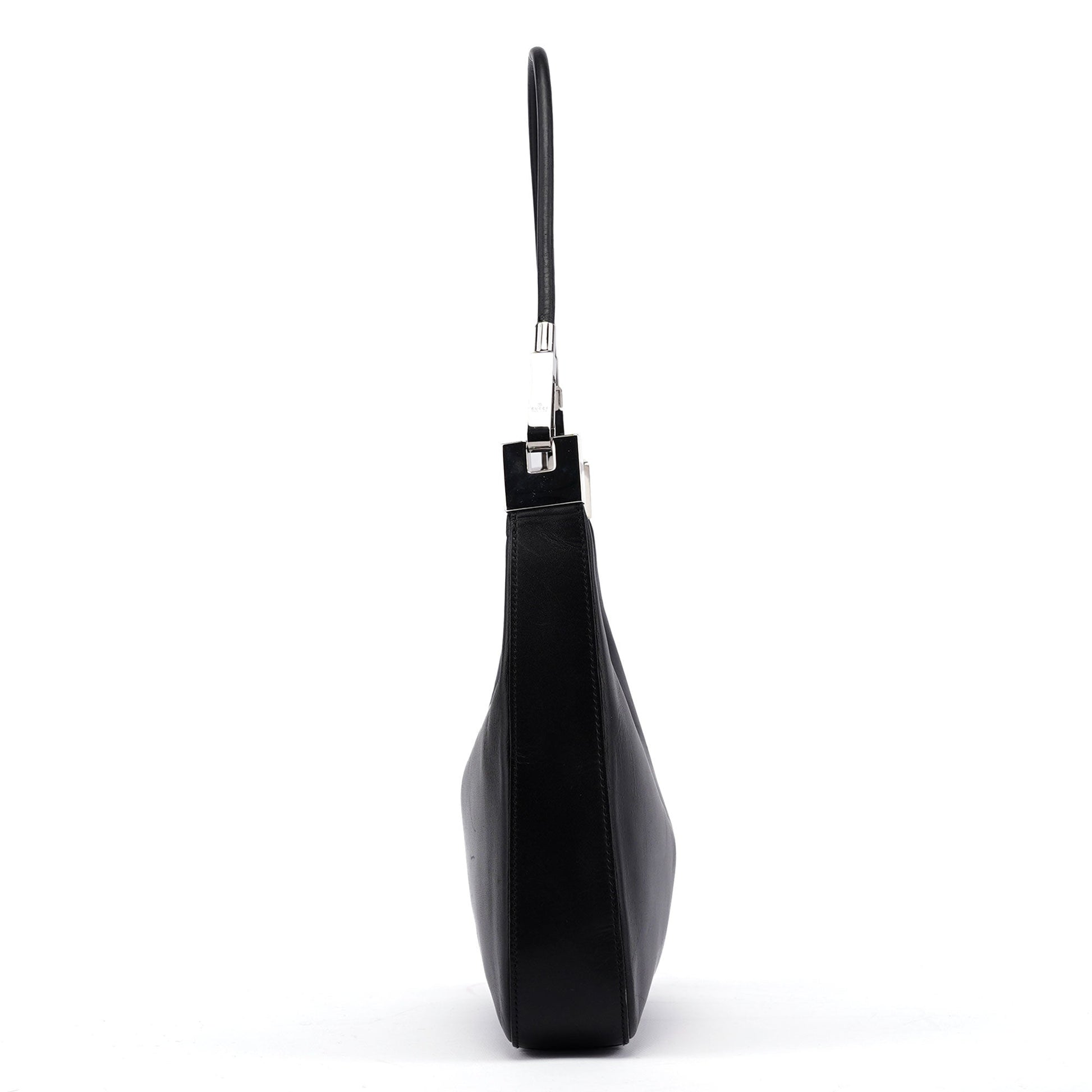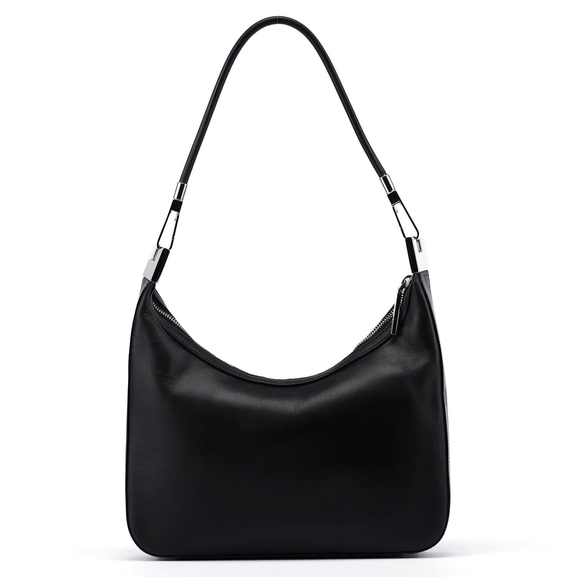 Black Calfskin Hobo Shoulder Bag
