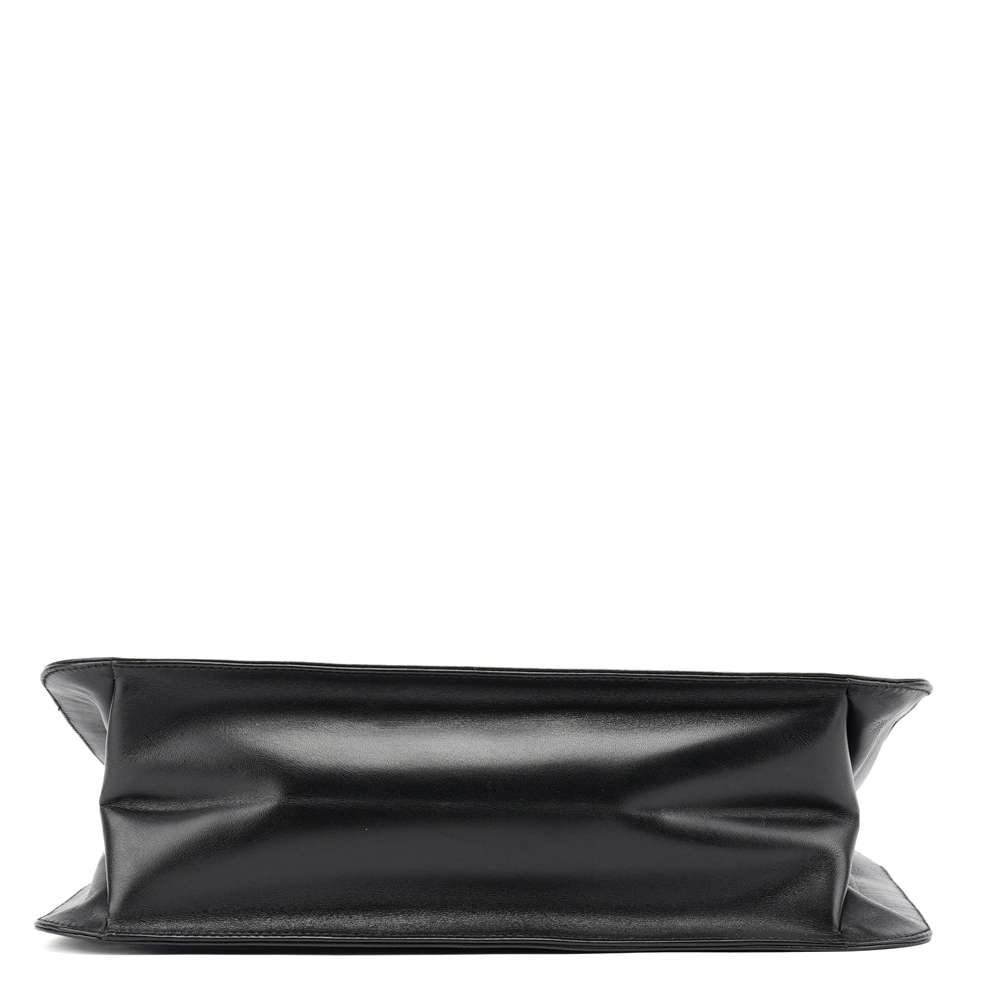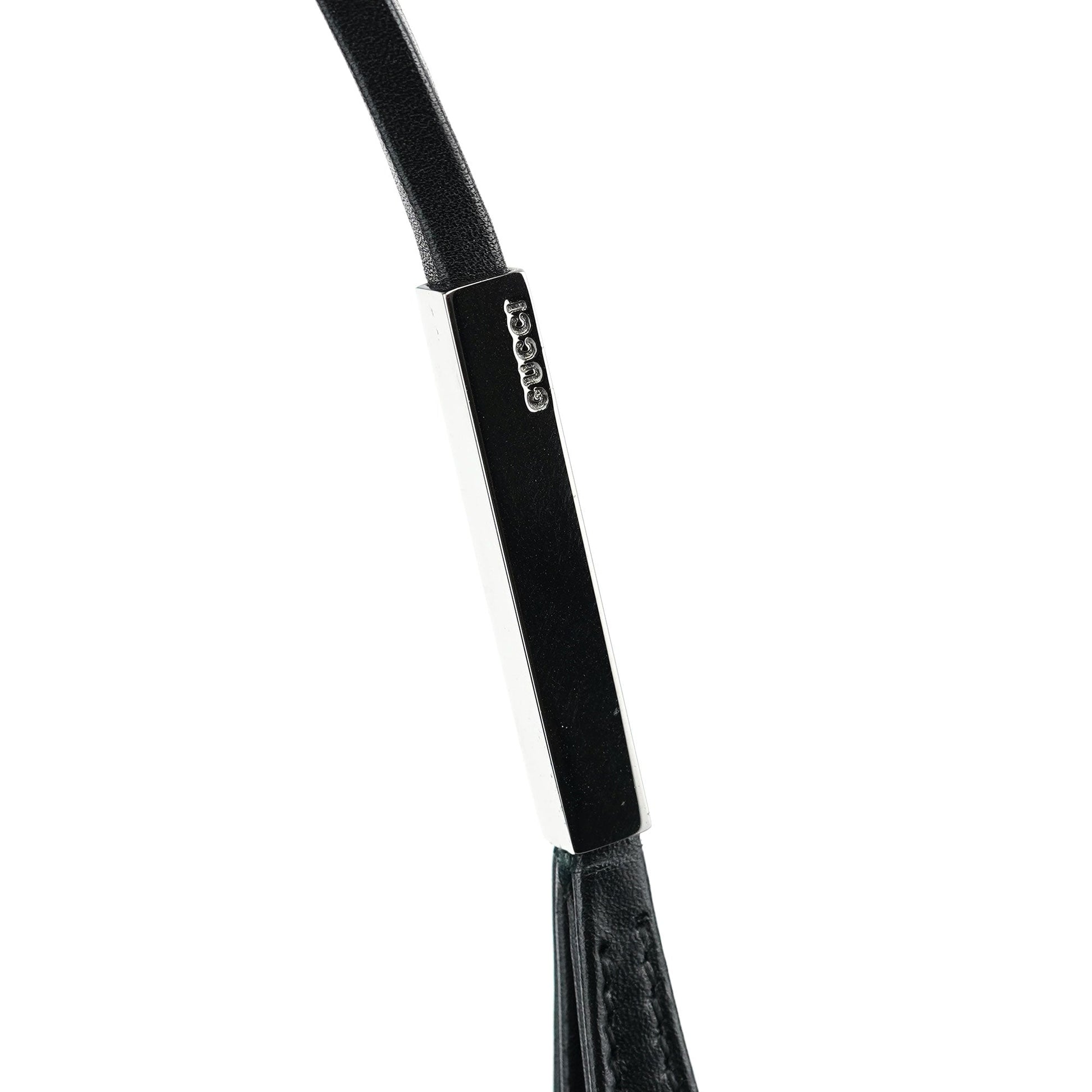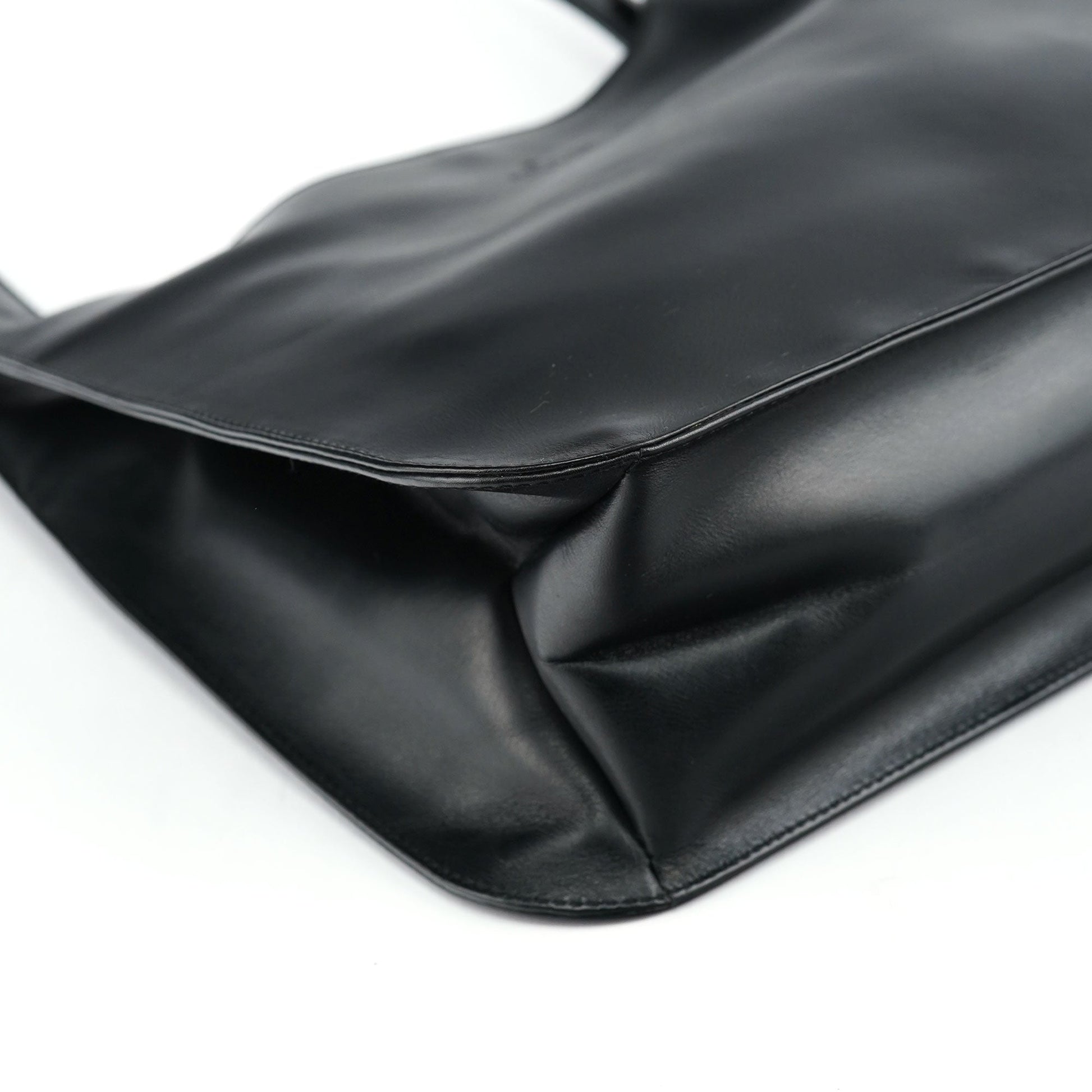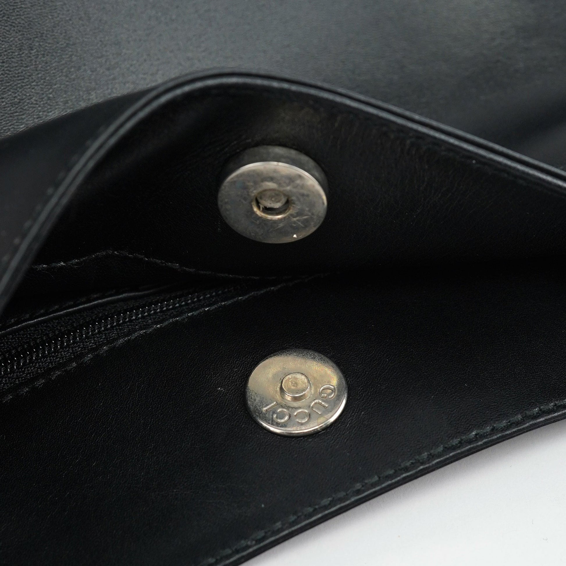 Designed by Tom Ford in the late 1990s, this Gucci shoulder bag is handcrafted from luxurious black calfskin leather. It features silver-tone hardware engraved with the Gucci logo, a secure magnetic closure, and a calfskin-lined interior with a zipper pocket. The Gucci logo is subtly embossed at the front, adding a refined touch to this timeless design.