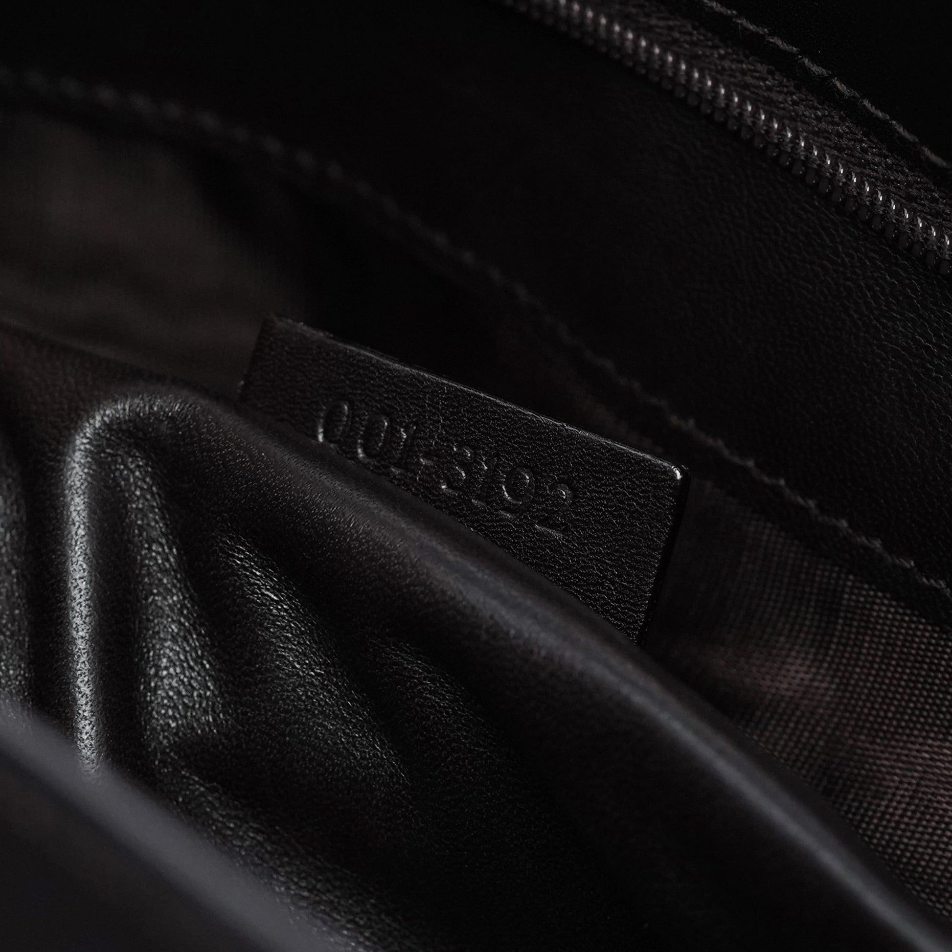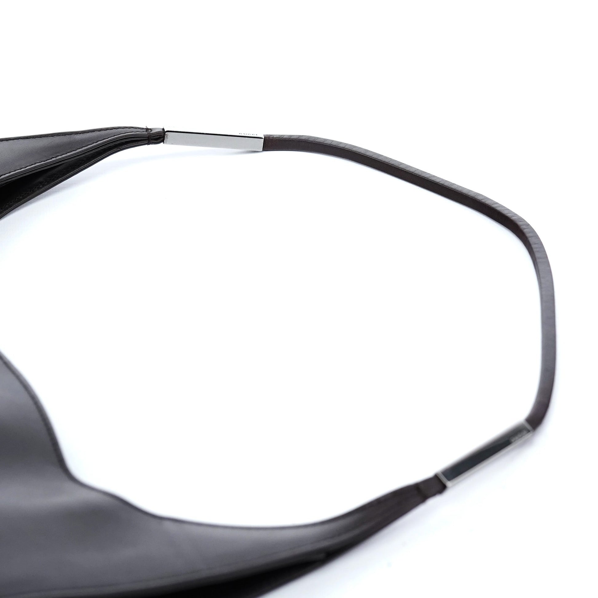 Designed by Tom Ford in the late '90s, the Gucci shoulder bag is handcrafted in dark brown calfskin leather. It features silver-tone hardware engraved with the Gucci logo, a magnetic closure, and the interior is calfskin-lined with a zipper pocket. The Gucci logo is subtly embossed on the front.