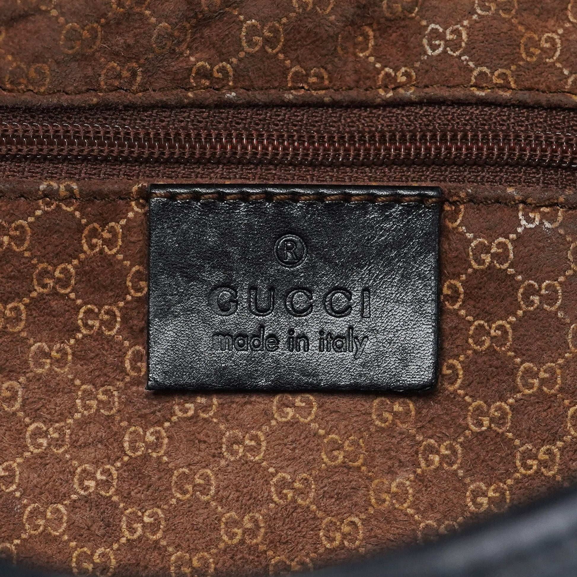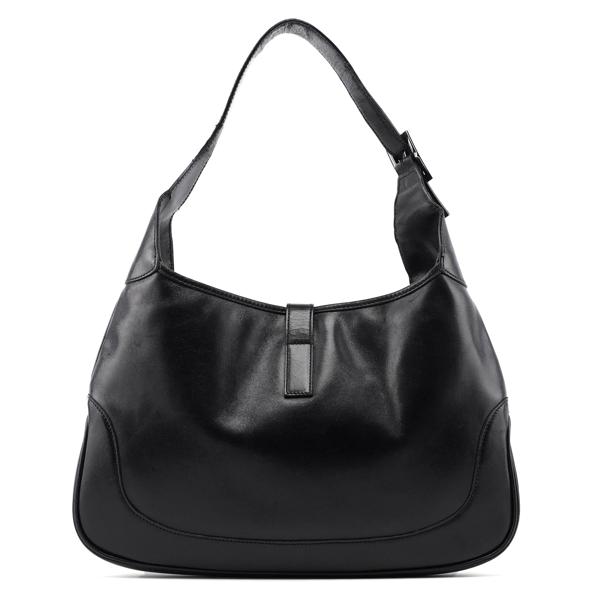 Designed by Tom Ford in the late 1990s, the Gucci Jackie shoulder bag exudes sophistication. Made from black calfskin leather with silver-tone hardware engraved with the iconic Gucci logo, it features the signature Jackie clasp closure. Inside, the suede interior is stamped with GG monogram and offers practicality with a convenient interior zipper pocket.