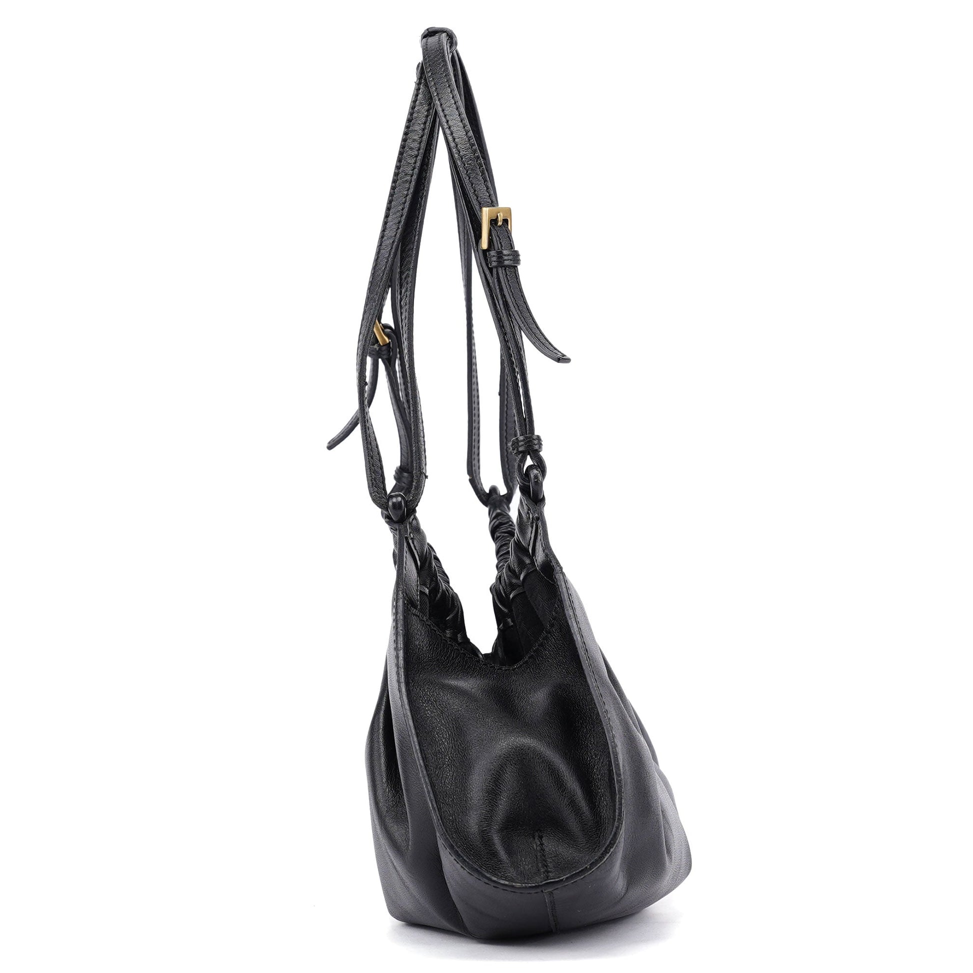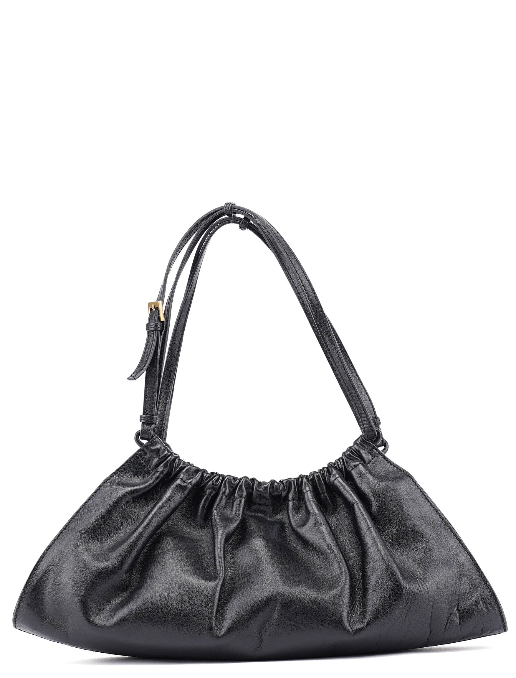 Designed by Tom Ford in the late 1990s, the Gucci dual handle bag is crafted in black calfskin leather with gold-tone hardware. A magnetic closure secures the satin-lined interior, which includes a zipper pocket for added functionality. This piece elegantly combines signature style with timeless sophistication.