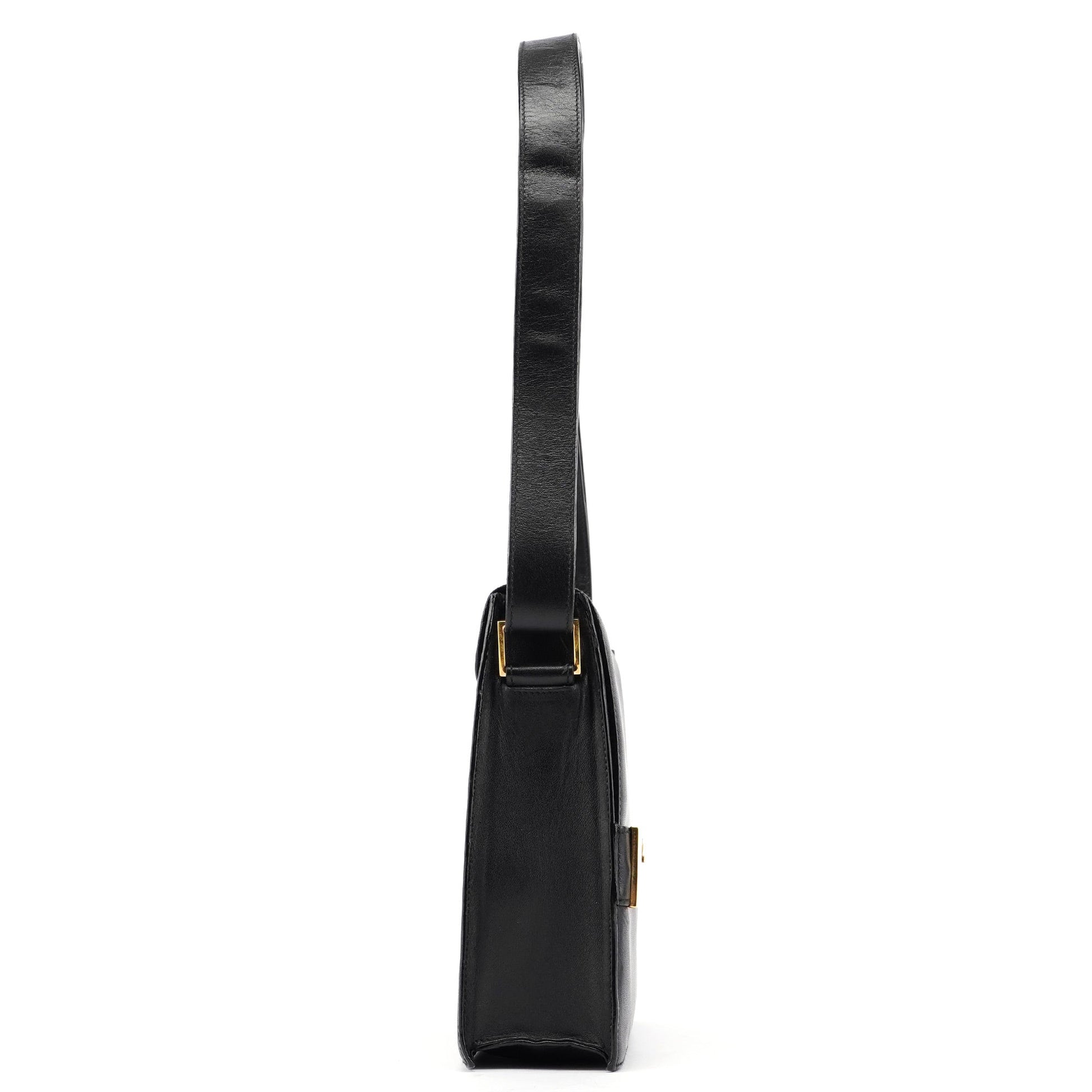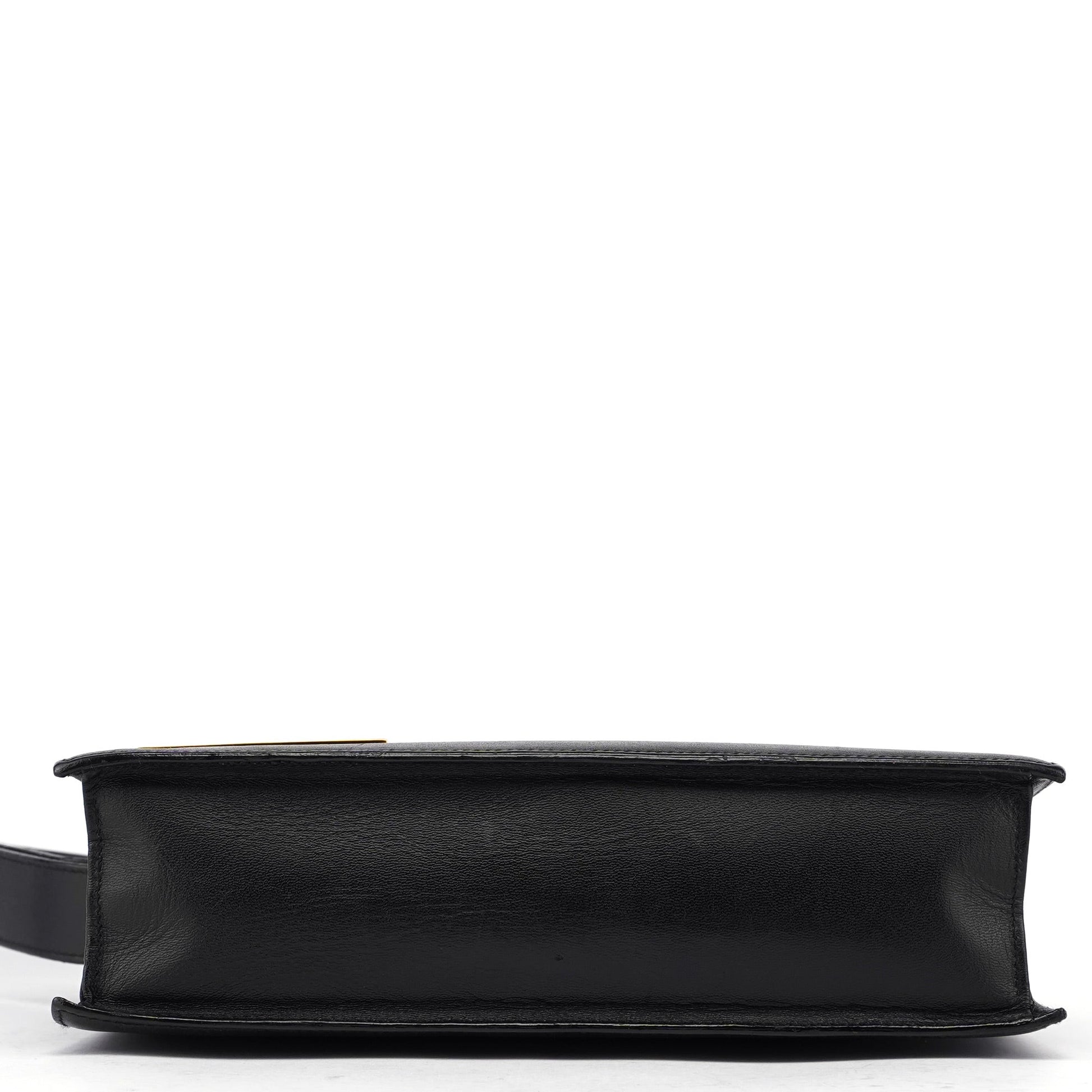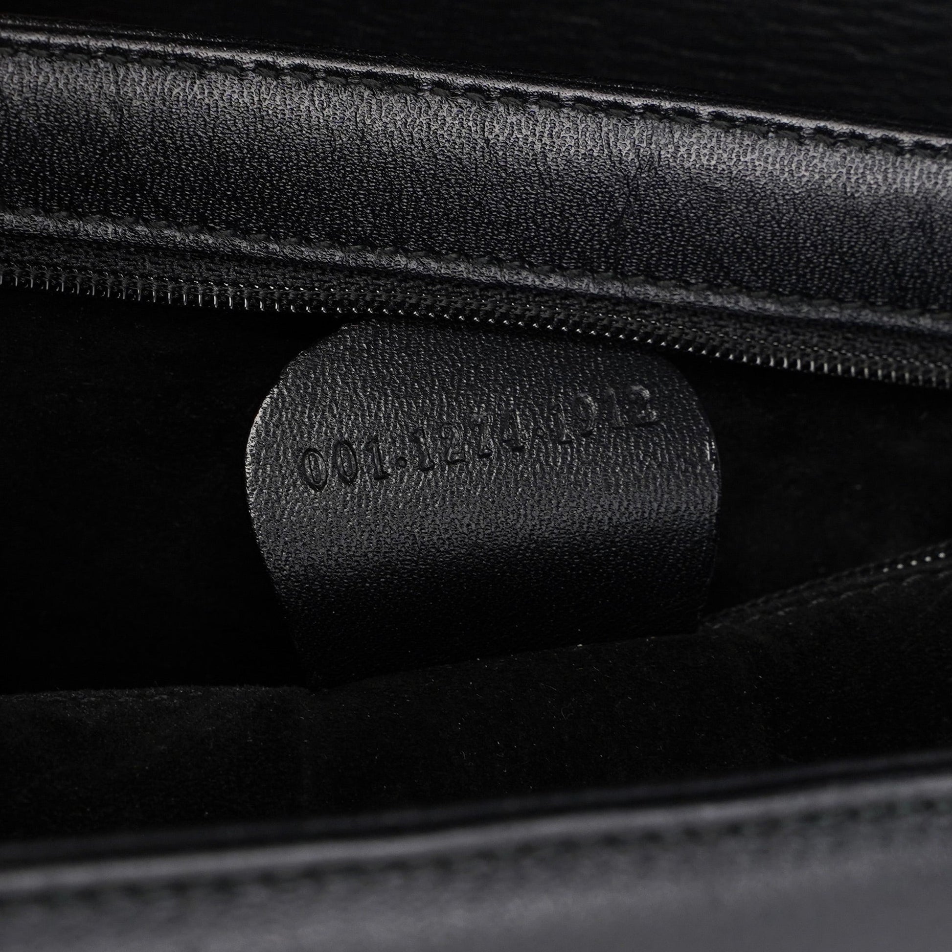 Designed by Tom Ford in the late '90s, the Gucci Square G bag exudes elegance. Its black calfskin leather exterior is accentuated by gold-tone hardware bearing the iconic Gucci logo. The flap closure opens to reveal a luxurious interior lined with sumptuous suede, complete with a convenient interior zipper pocket.