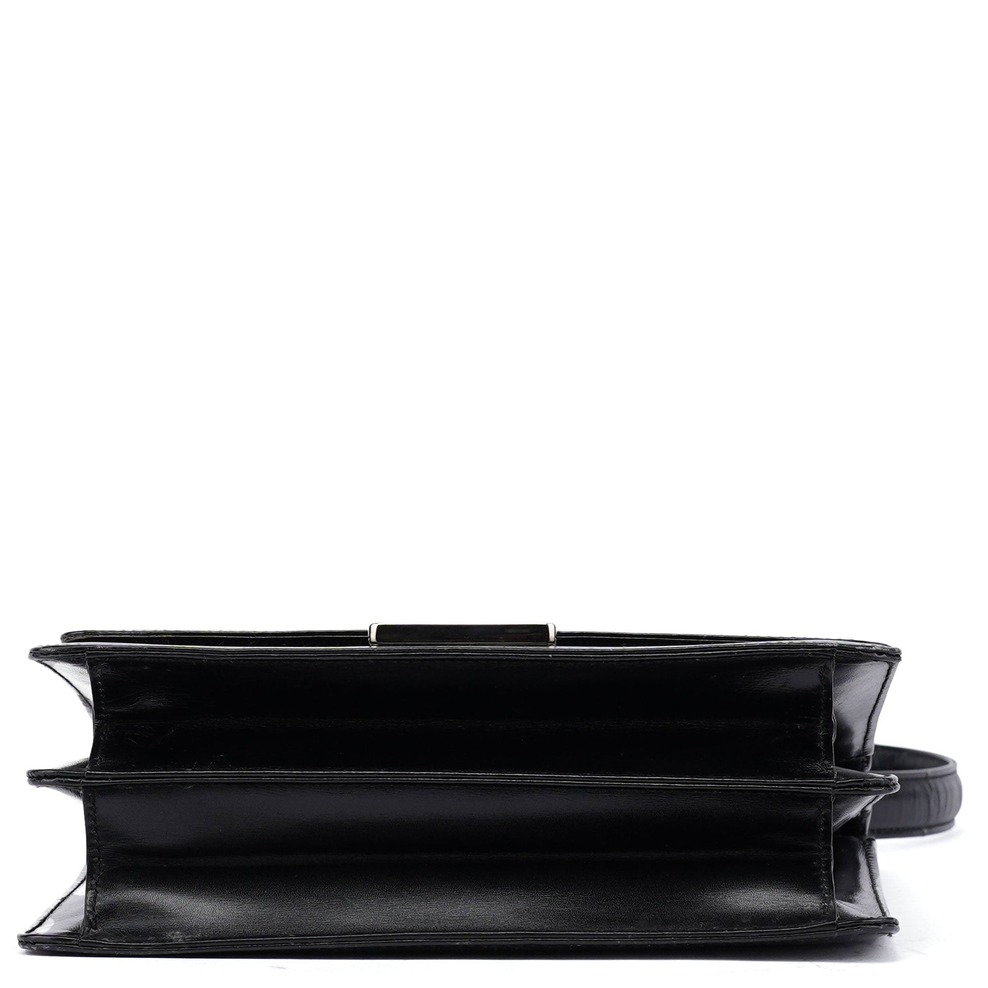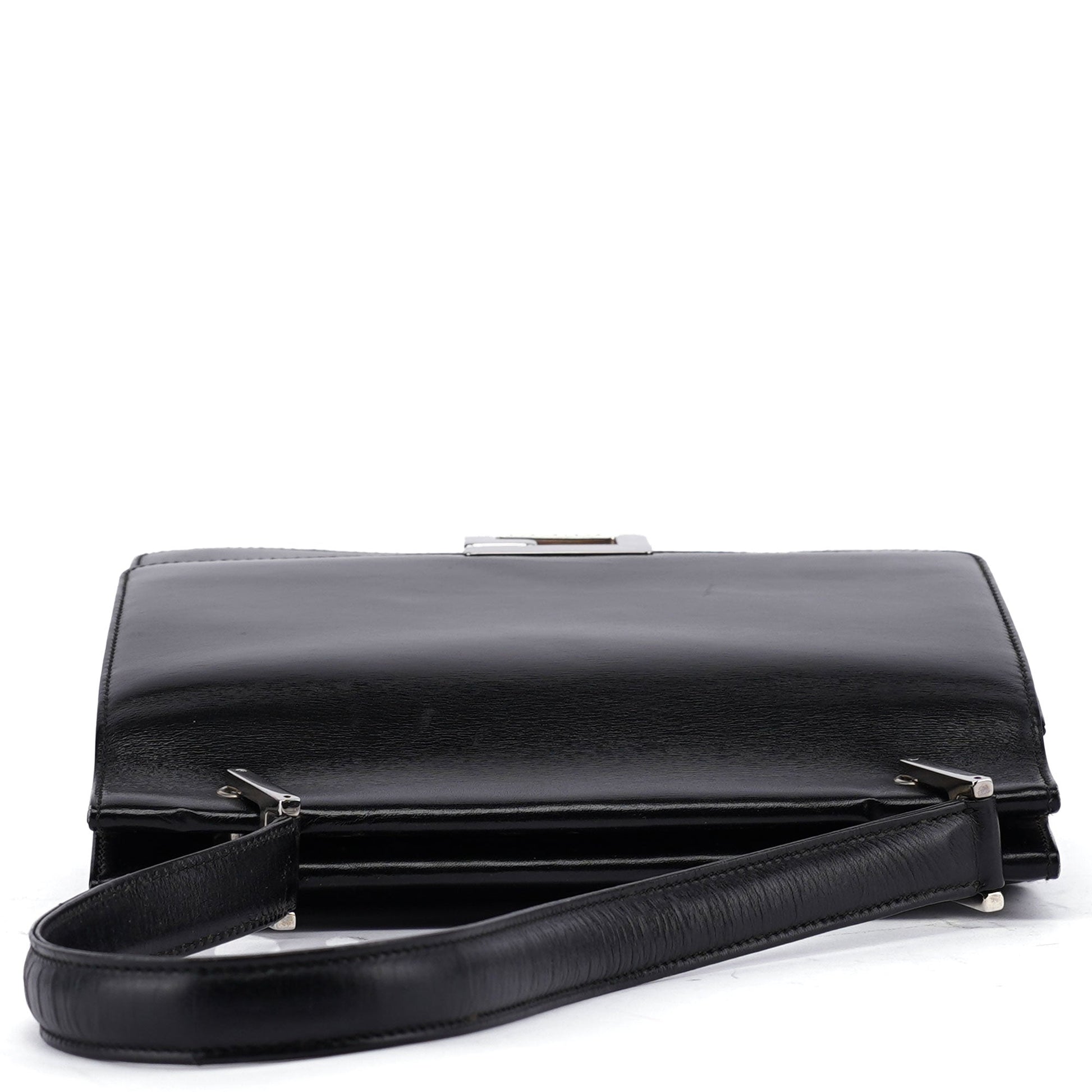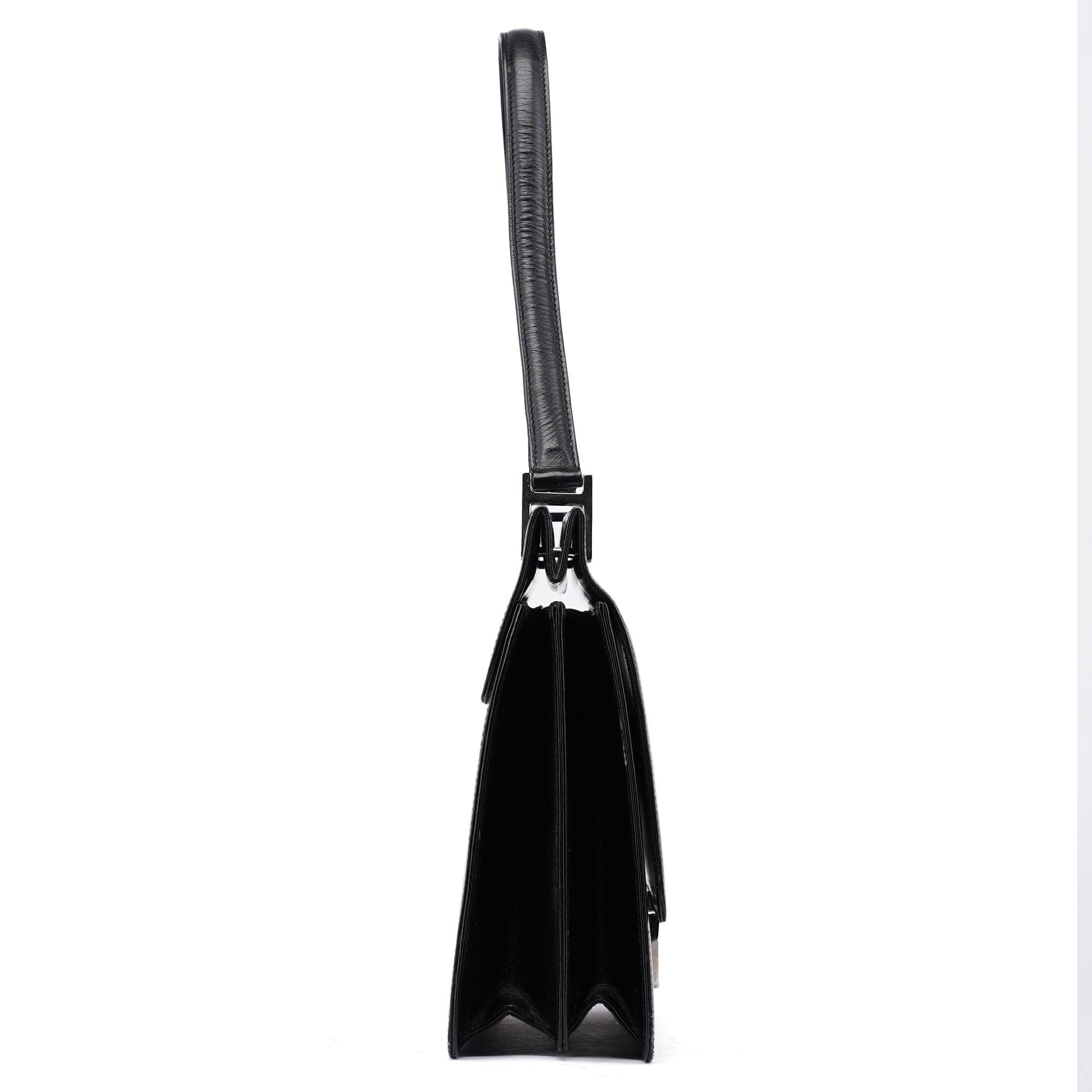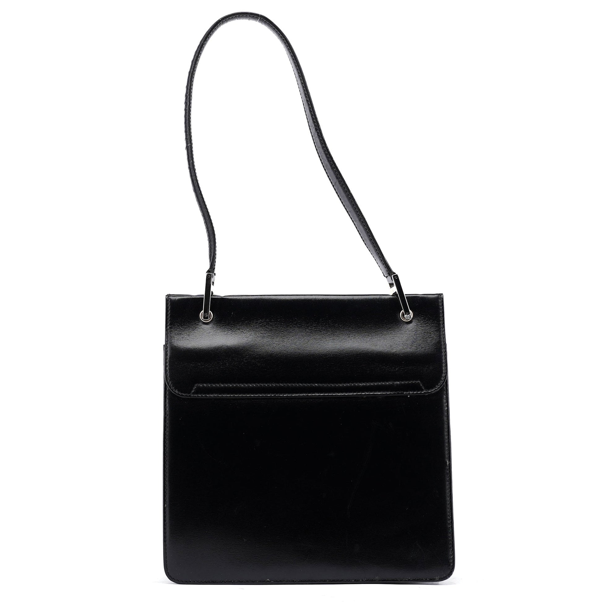 Designed by Tom Ford in the late 1990s, the Gucci Square G shoulder bag is crafted from black calfskin leather and features the iconic Square G logo buckle closure. Its red leather-lined interior is divided into two compartments and includes an interior pocket, seamlessly blending style with functionality.