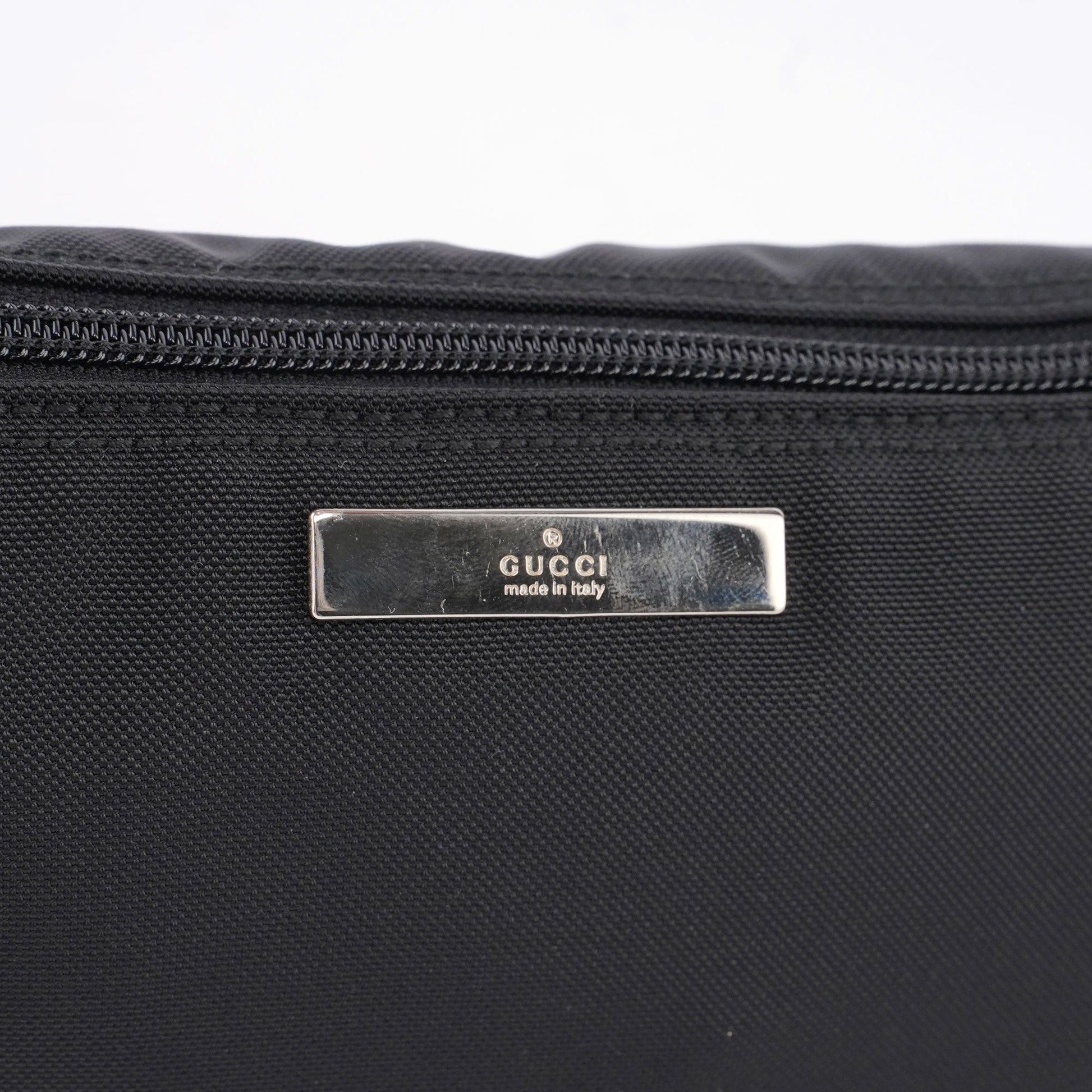 Explore timeless elegance with the Gucci Boat Pochette by Tom Ford, circa late 1990s. This exquisite piece combines black canvas with tonal leather trim and silver-tone hardware. Its secure zip closure and satin-lined interior offer luxury and practicality, while the subtle Gucci plaque adds a touch of heritage. A perfect blend of vintage charm and sophistication.