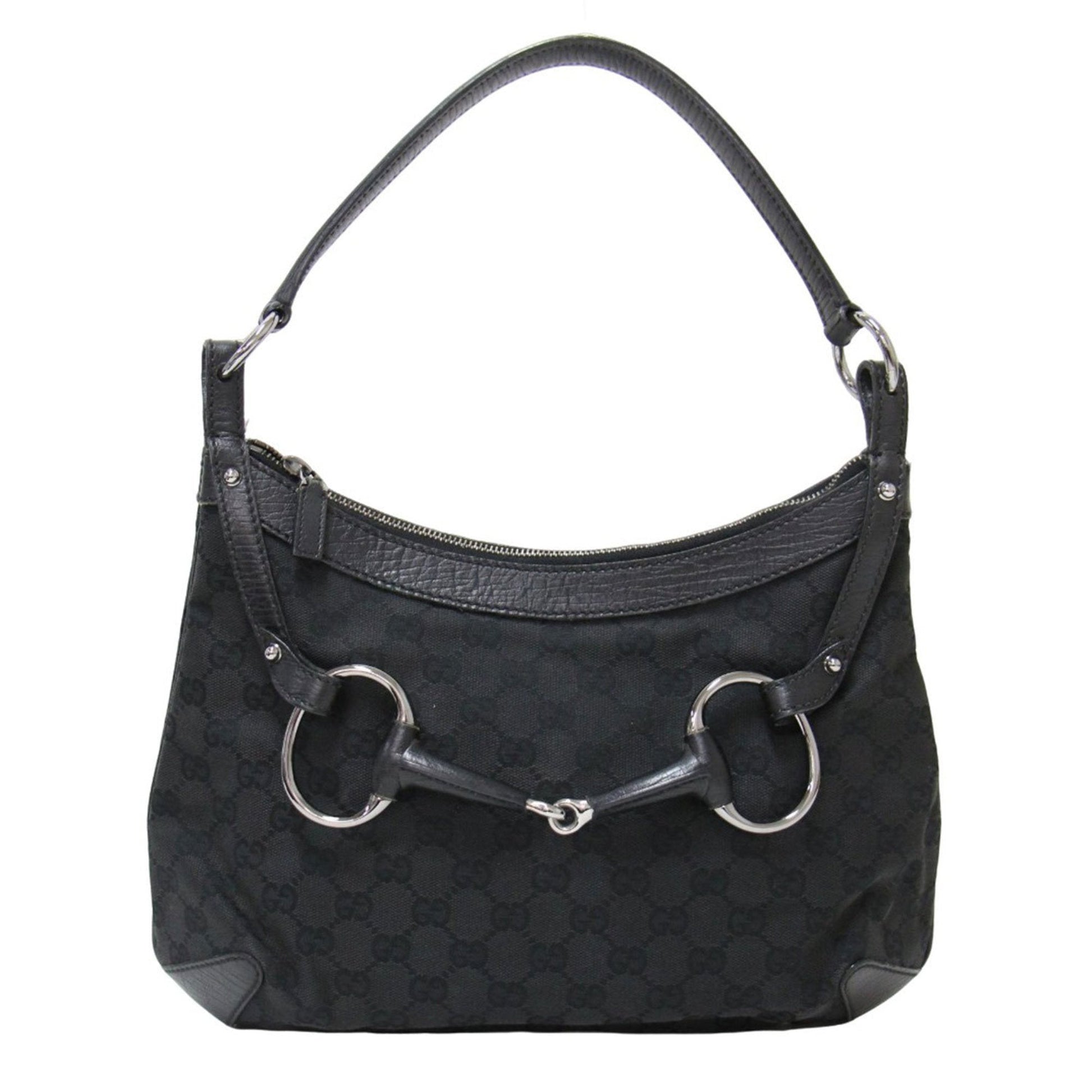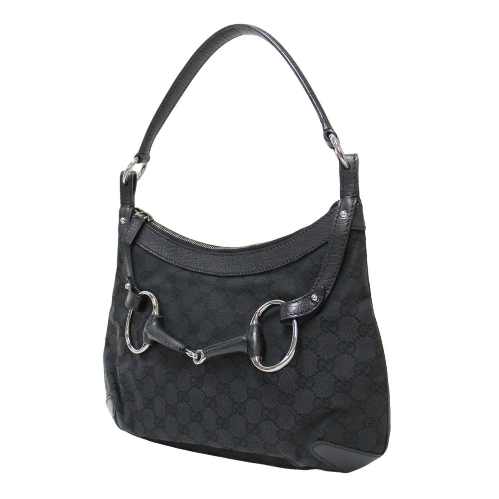 Gucci Black Canvas Leather Handbag Shoulder Bag ()