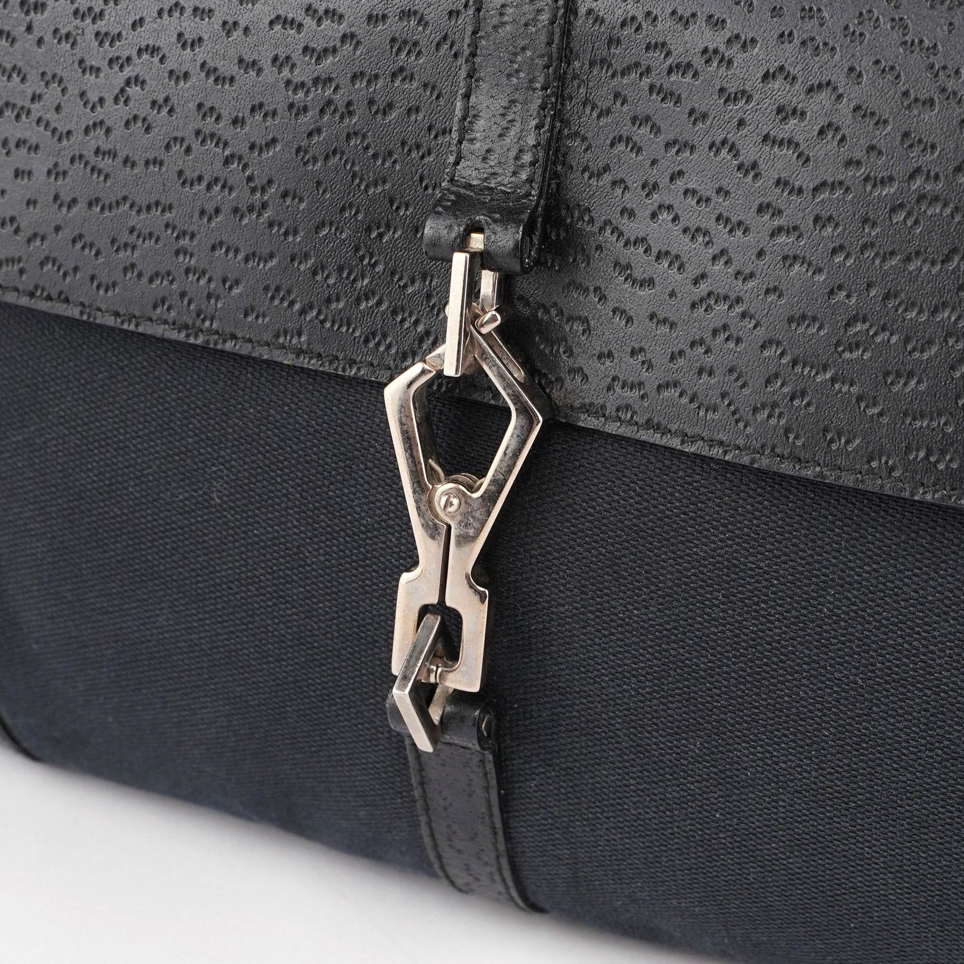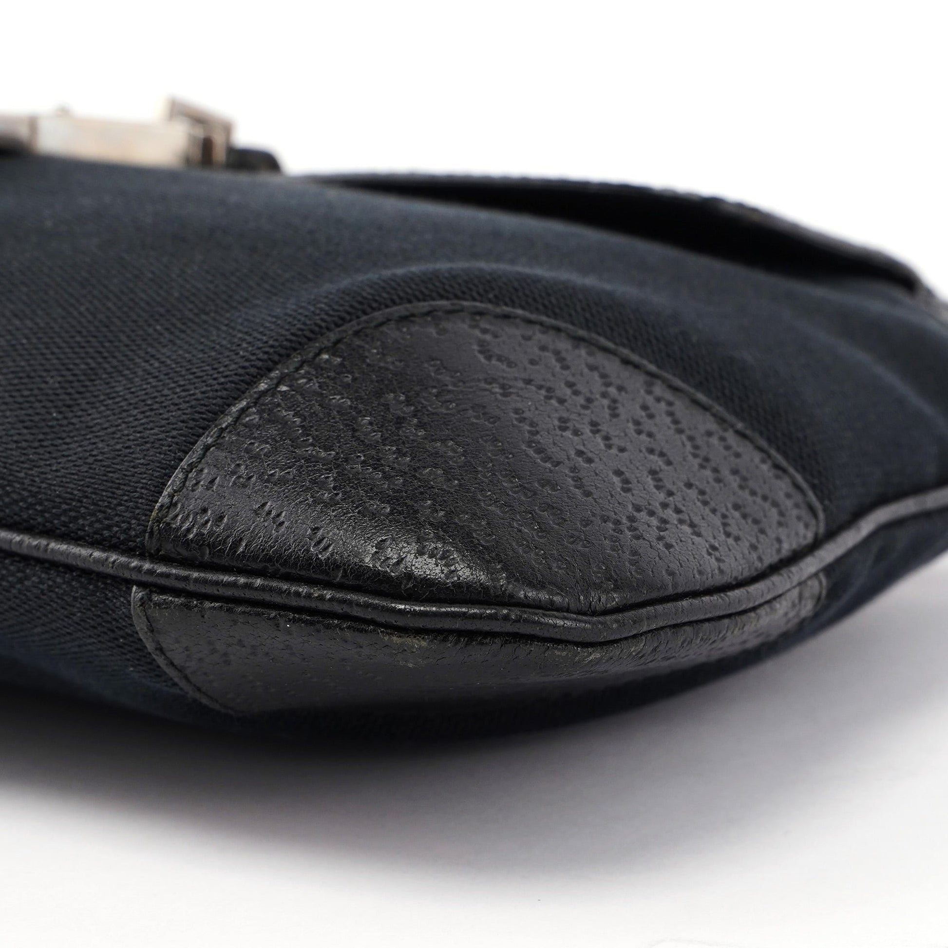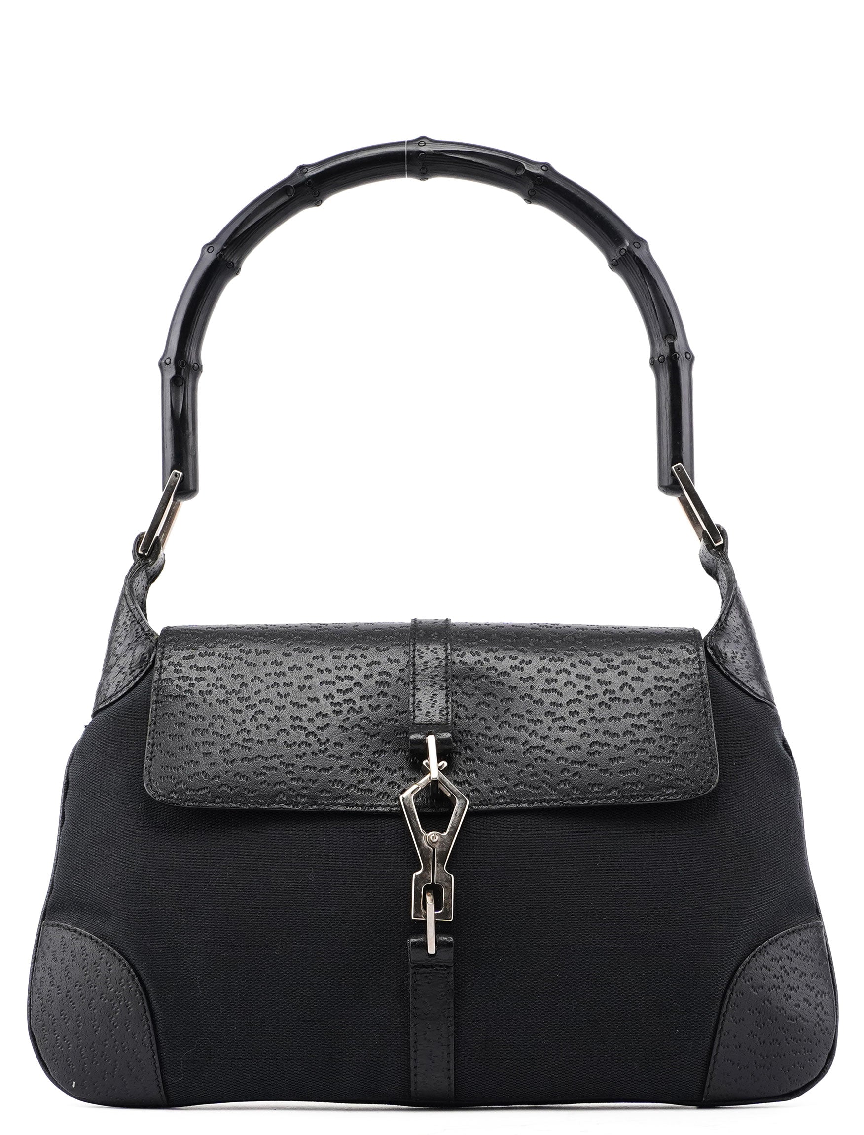 Black Canvas Leather Jackie Bamboo Bag