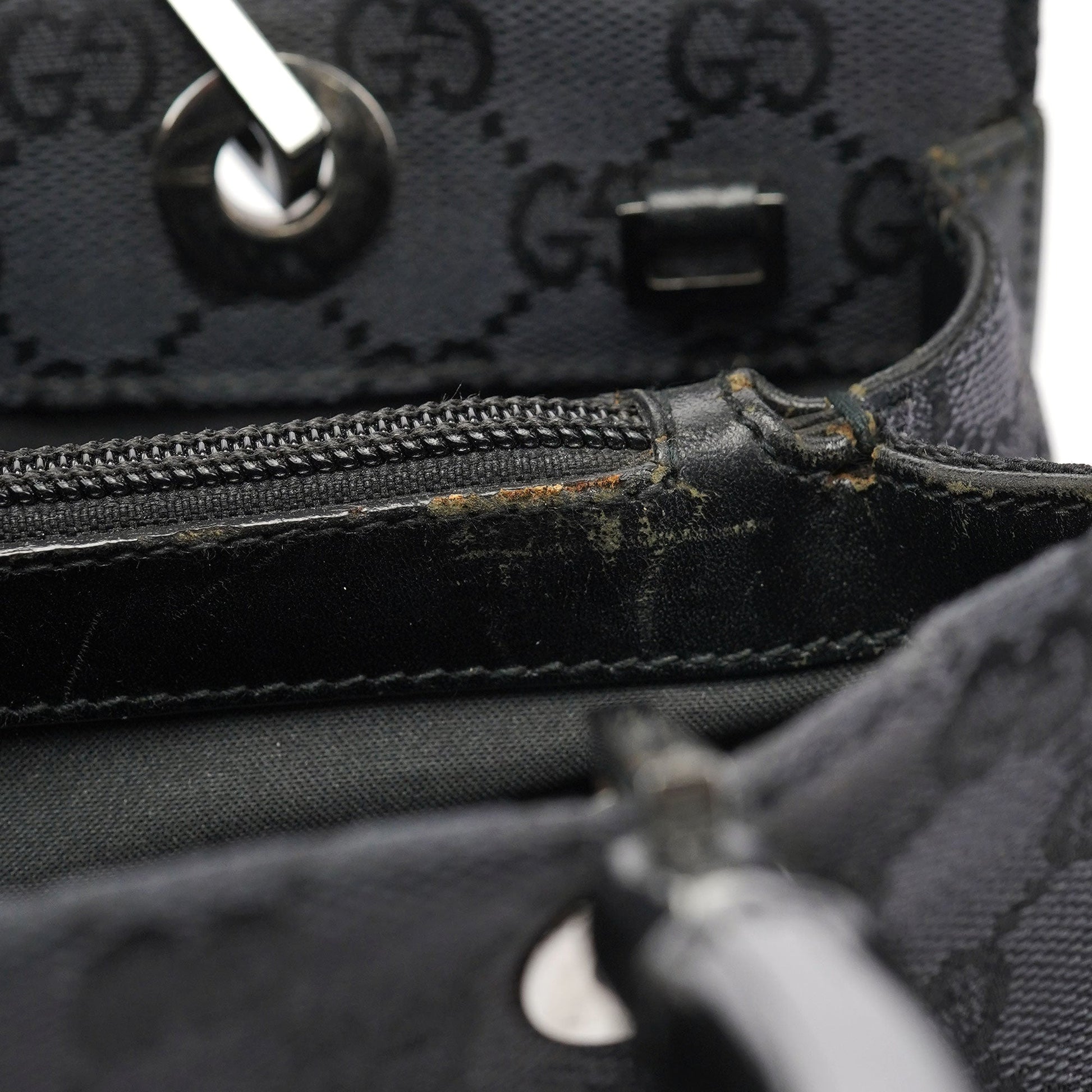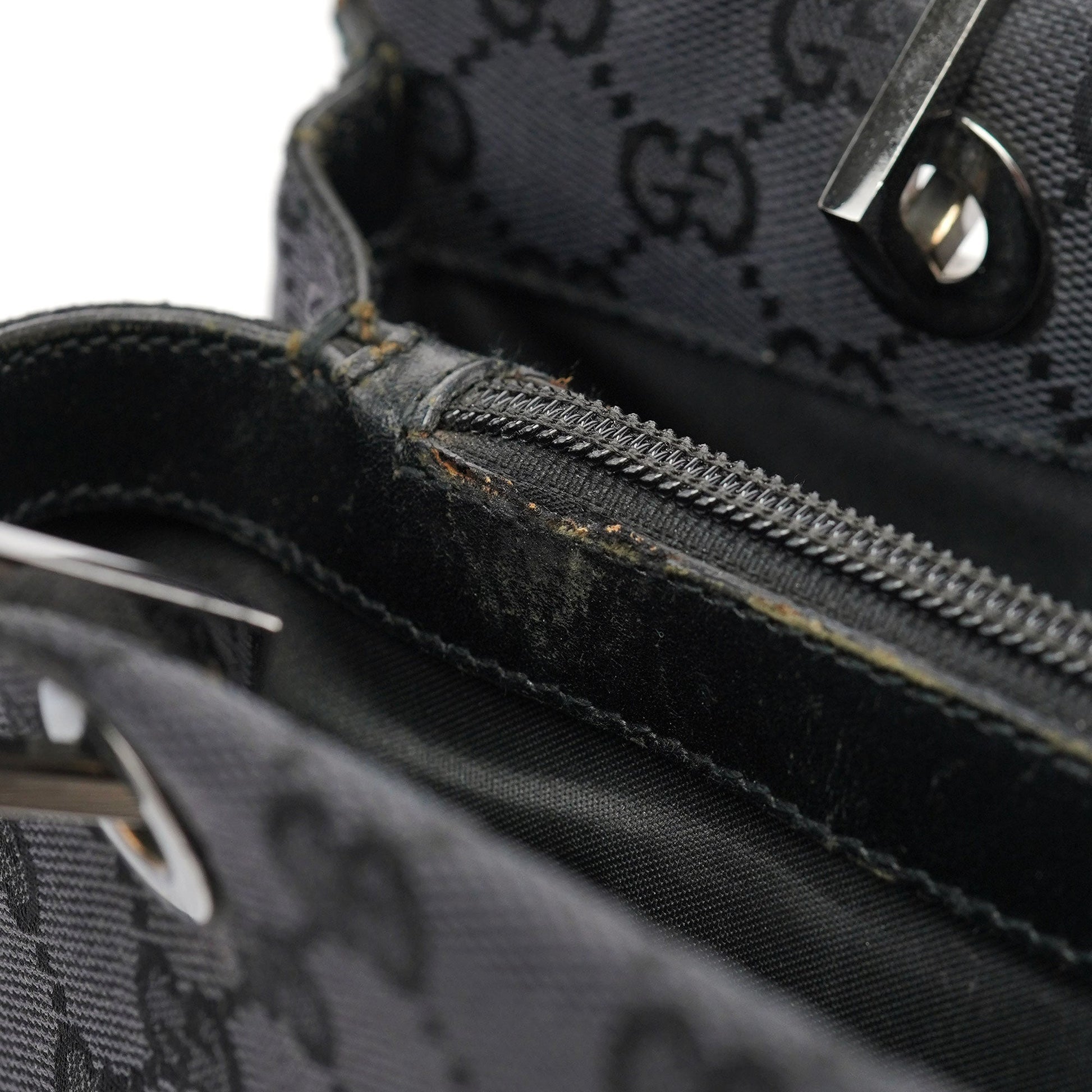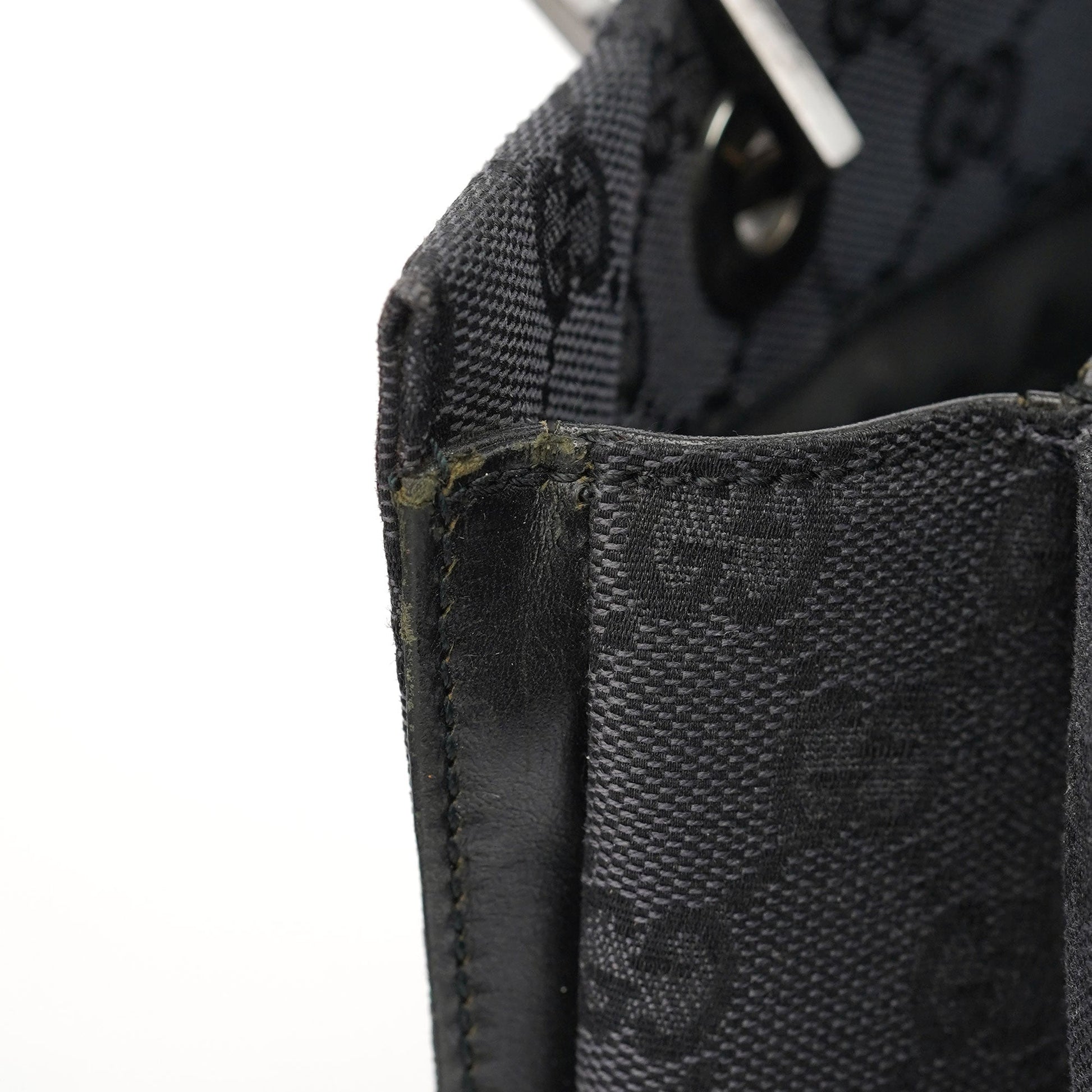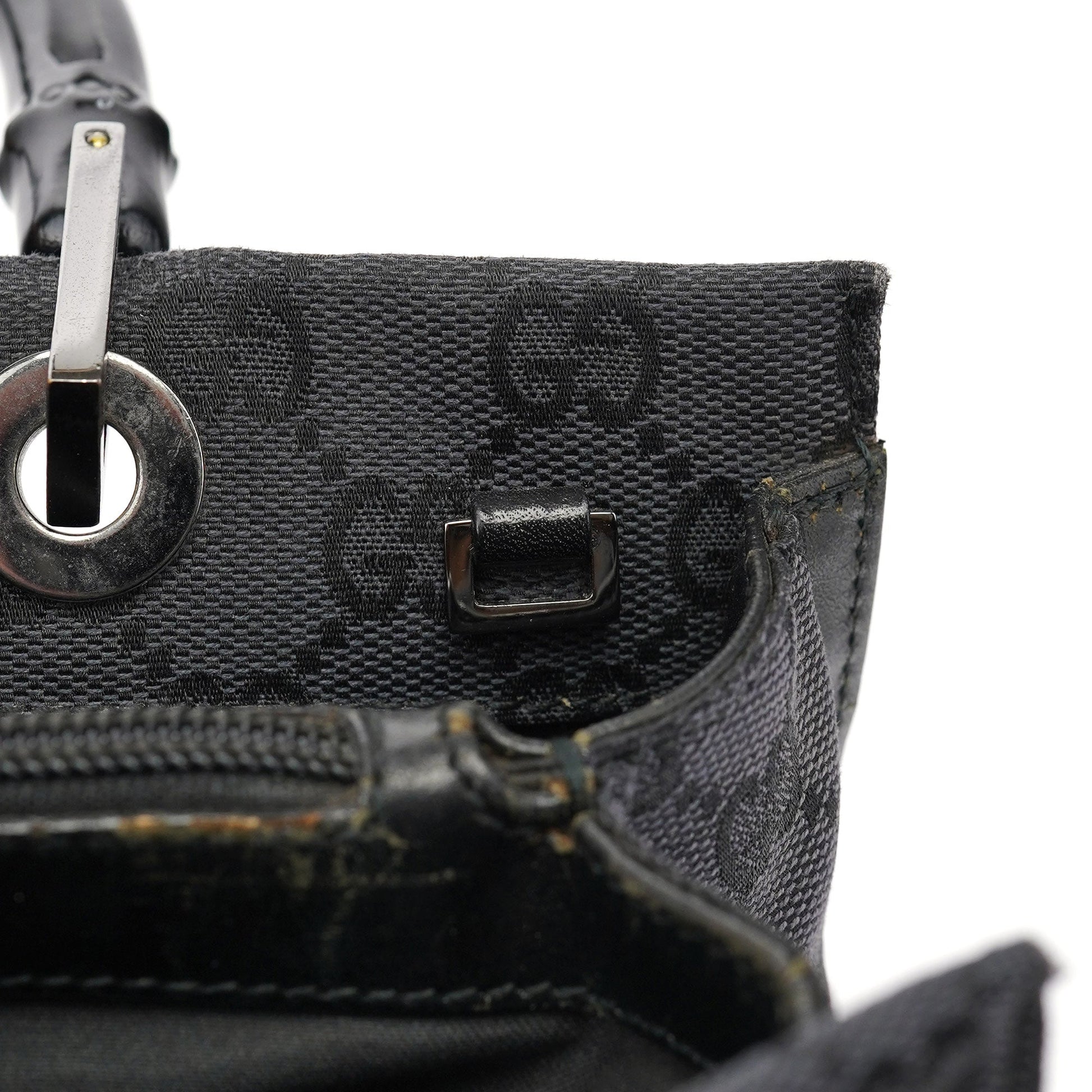 Designed by Tom Ford in the late 1990s, this Gucci Bamboo GG tote bag features two elegant black bamboo handles, a detachable strap and silver-tone hardware. Crafted with the iconic GG monogram canvas, it offers three interior compartments lined with satin, including an interior zipper pocket for organized storage, blending luxurious design with practical functionality.
