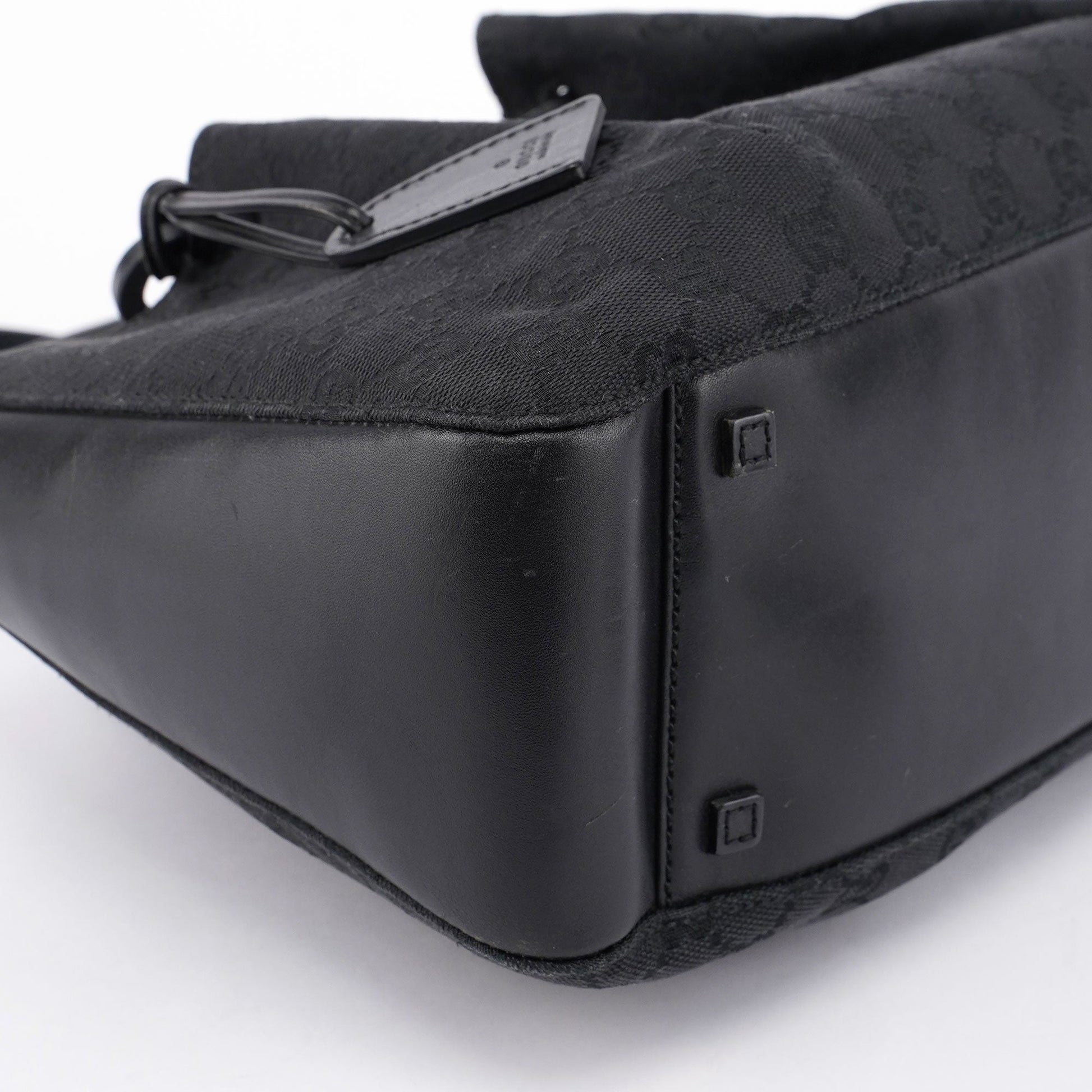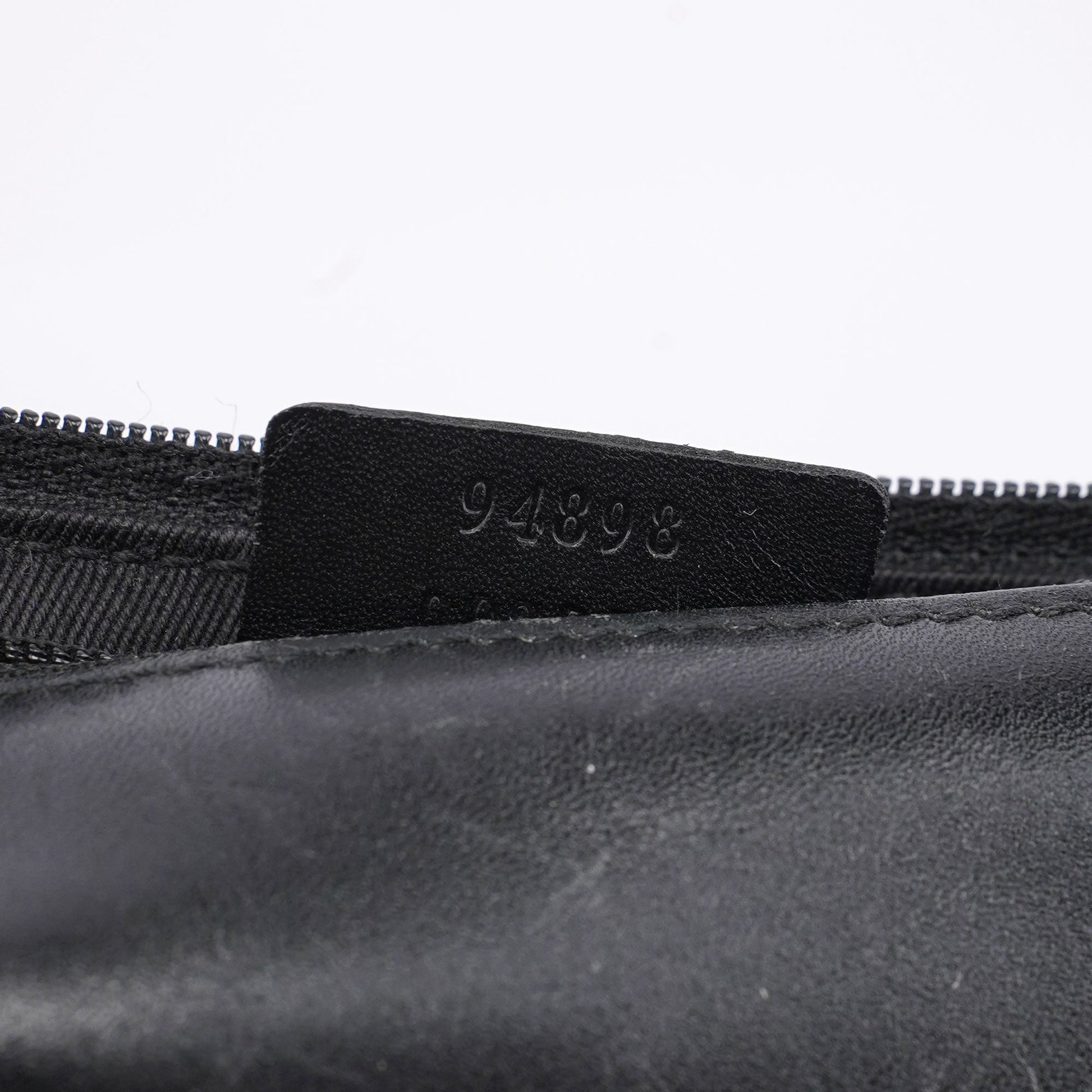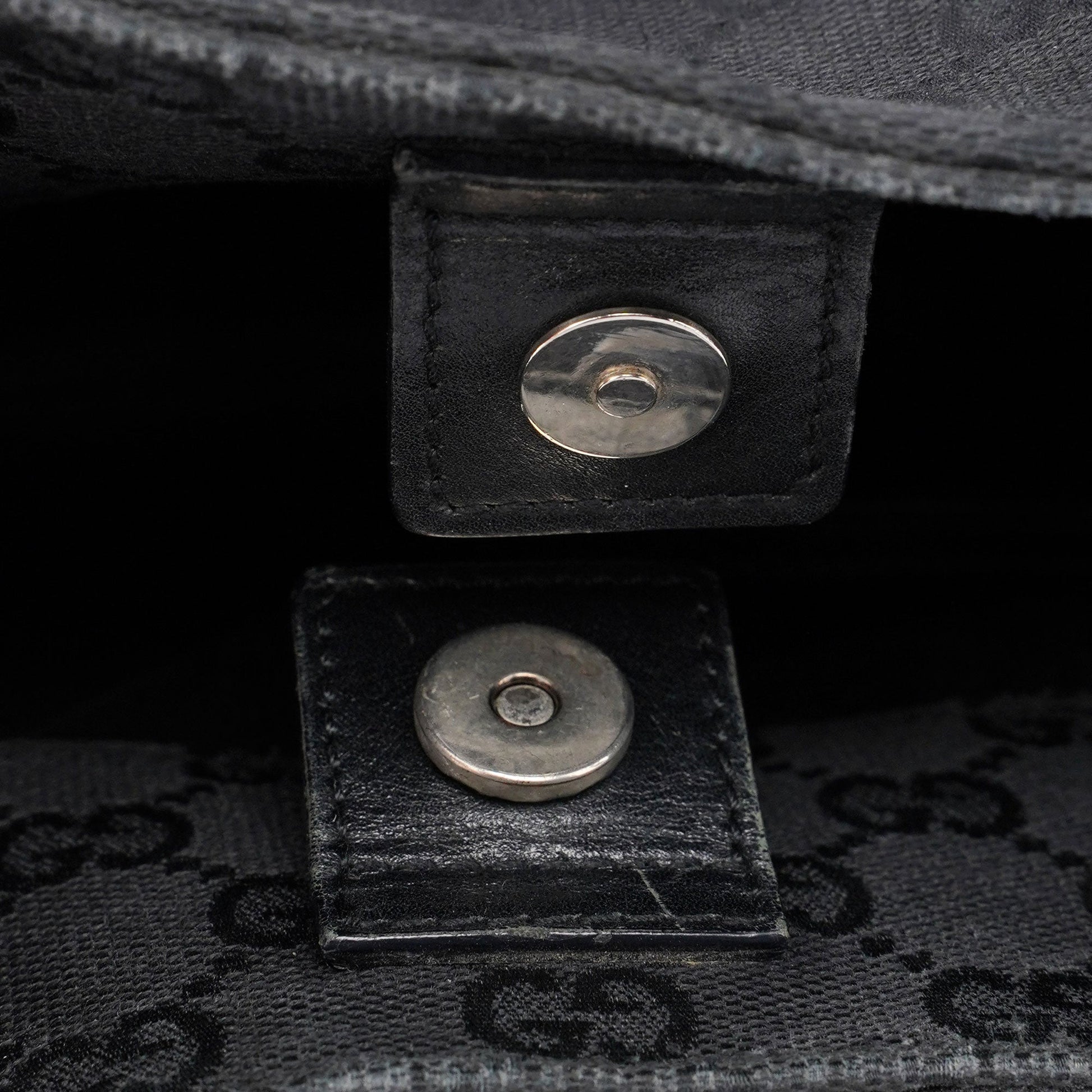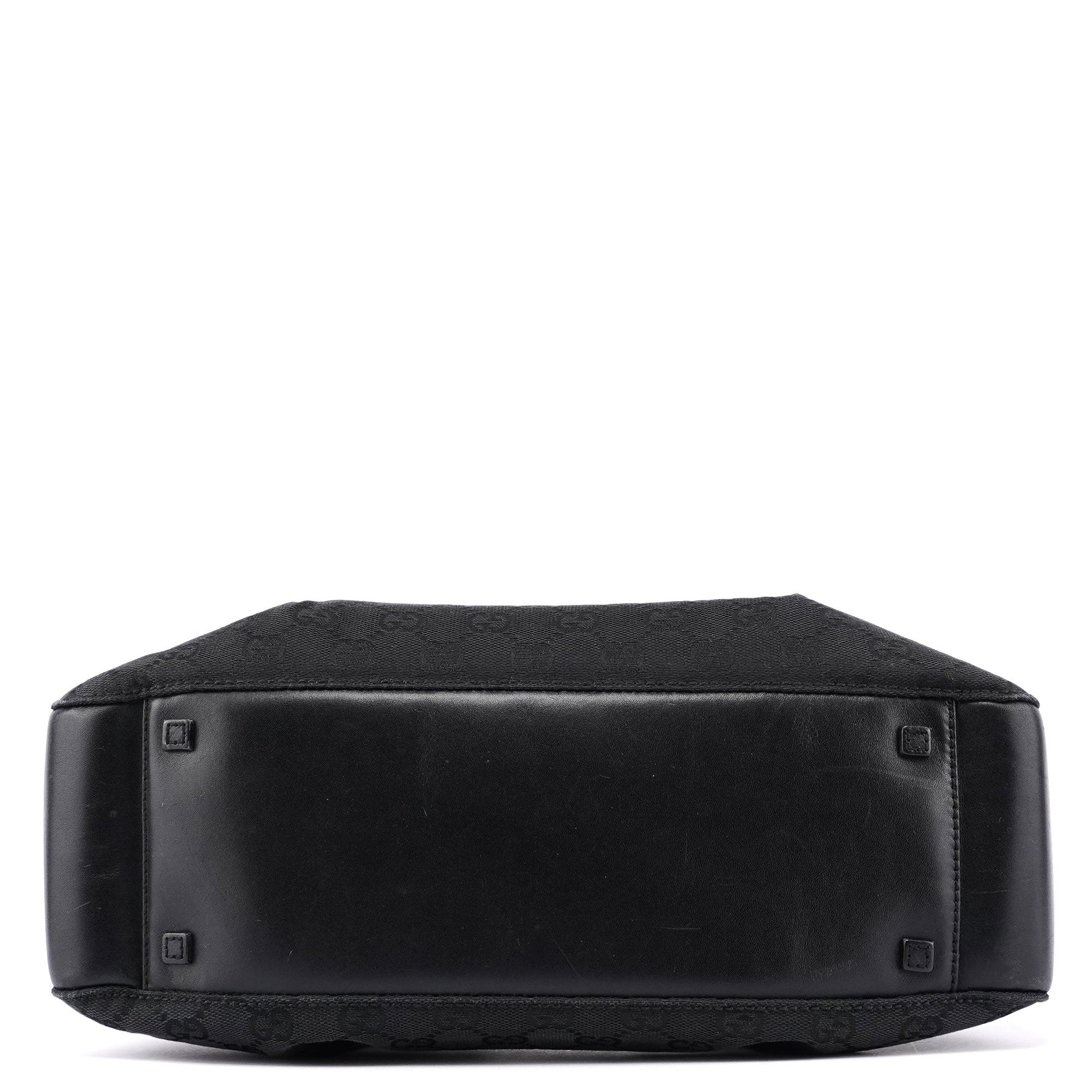 Explore timeless elegance with the Gucci GG Monogram bag by Tom Ford, circa late 1990s. This exquisite piece combines black GG canvas with tonal calfskin leather trim and silver-tone hardware. Its secure magnetic closure and cotton-lined interior offer luxury and practicality, while the subtle Gucci charm adds a touch of heritage.