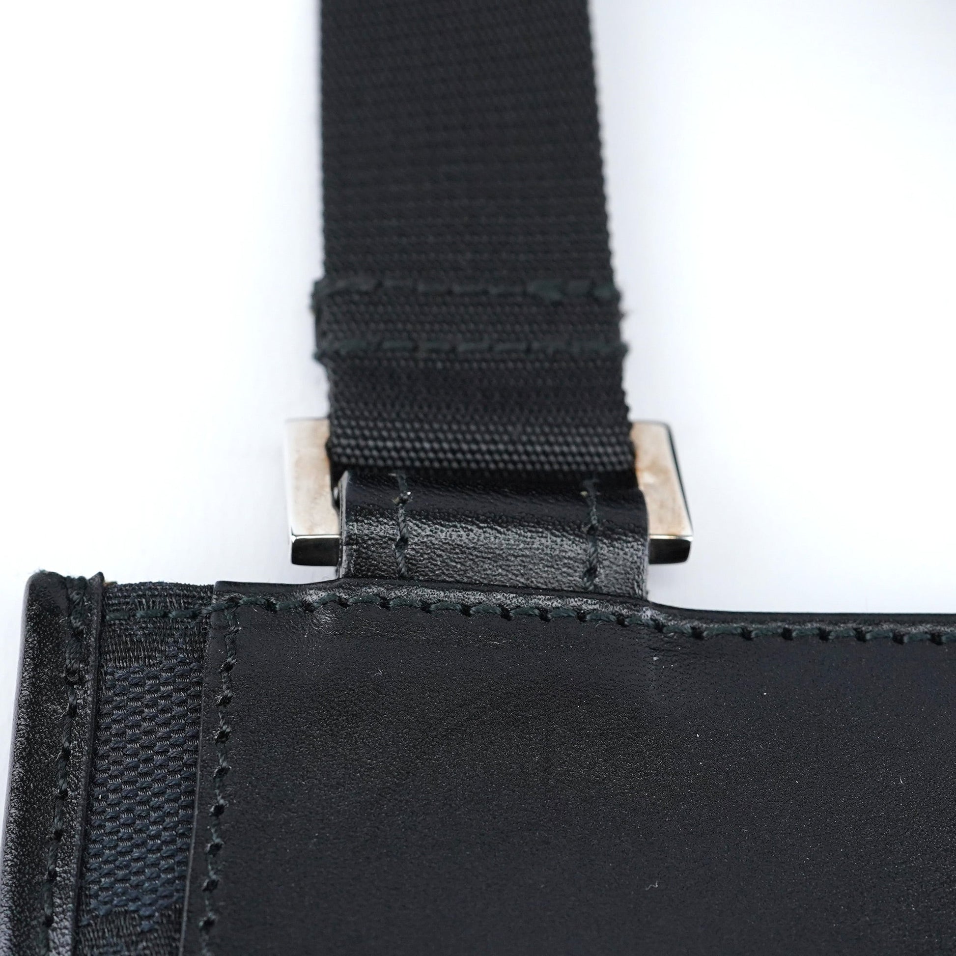 Discover the Gucci GG crossbody bag, designed by Tom Ford in the late 1990s. Handcrafted in black GG monogram canvas with tonal calfskin leather trim, it features silver-tone hardware engraved with the Gucci logo. The bag has a velcro closure, a satin-lined interior with a pocket, and a Gucci logo plate at the front for a signature touch.