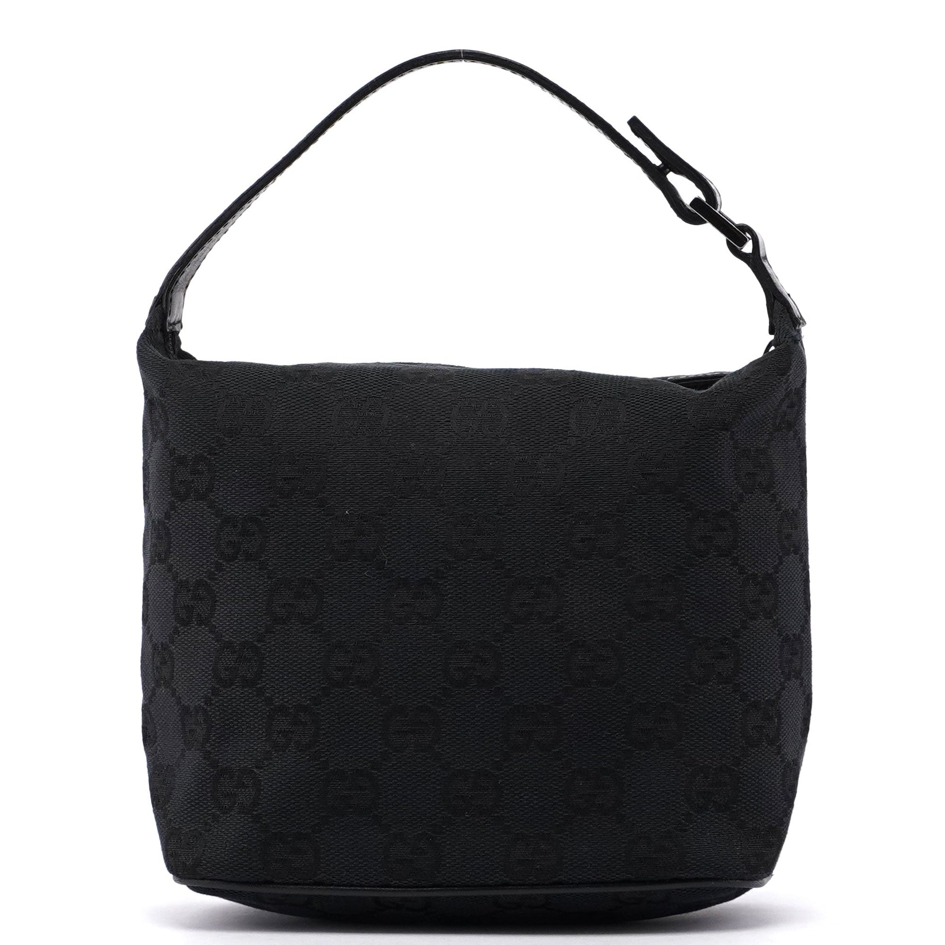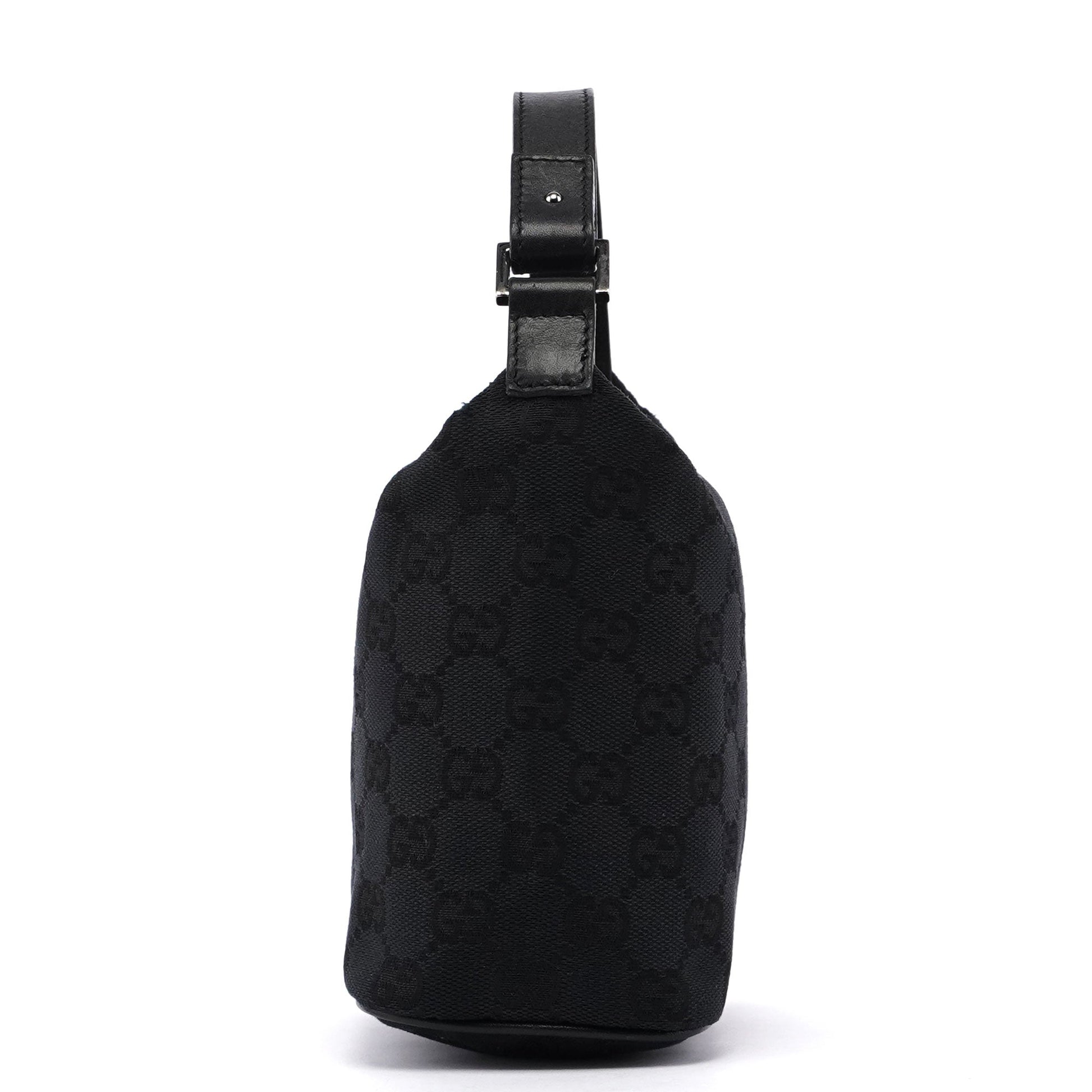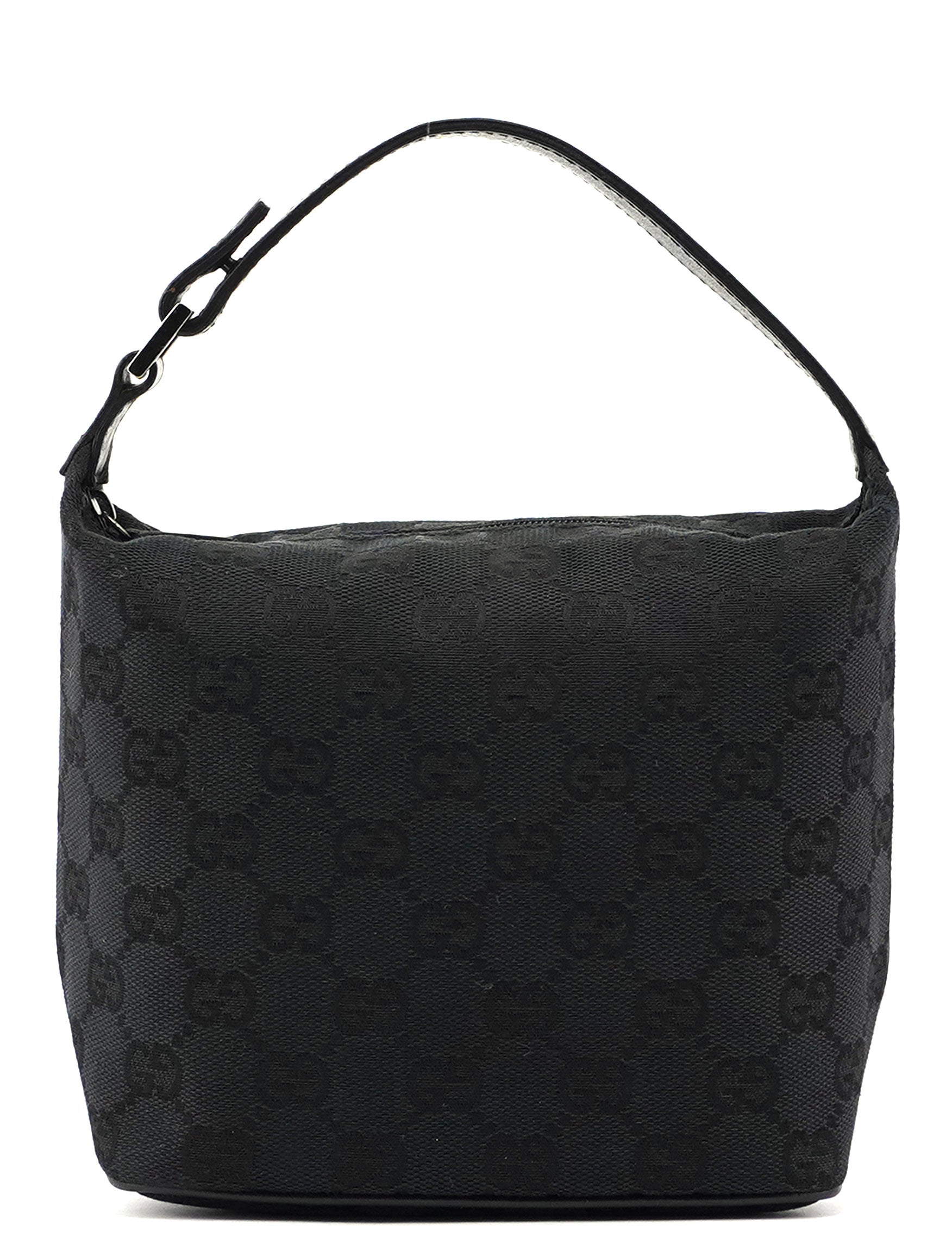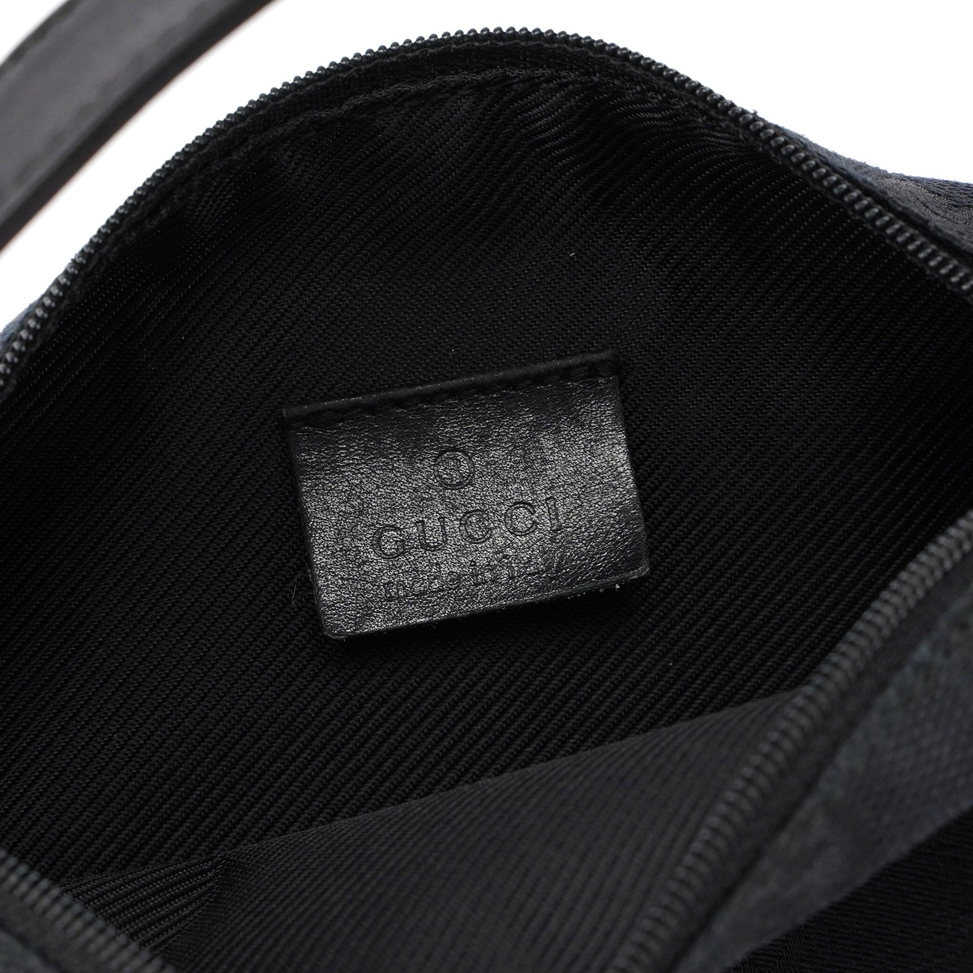 Designed by Tom Ford in the late 1990's, this Gucci GG mini bag is crafted from the iconic black GG monogram canvas with tonal leather trim. Its silver-tone hardware adds a touch of elegance, while the satin-lined interior features a convenient pocket for organization.