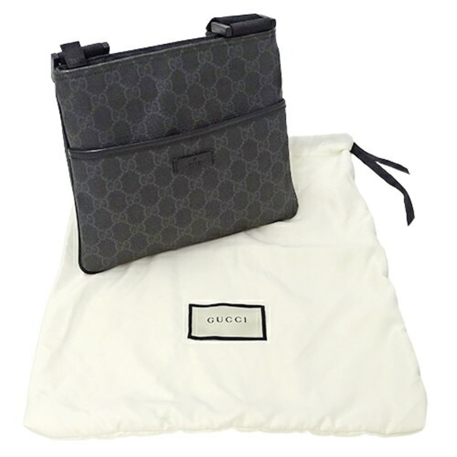 Brand: Gucci, Color: Black, Material: GG Supreme, Canvas, Dimensions: 20cm x 24cm x 2cm / 7.87'' x 9.44'' x 0.78'', Condition: Rank AB. Rank AB Used - Traces of usage, scratches / dirt can be seen but generally in good condition. Before purchasing, please refer to the images for the exact condition of the item. Before purchasing, please refer to the images of the accessories included with the item. Damage Ranking: Slight
