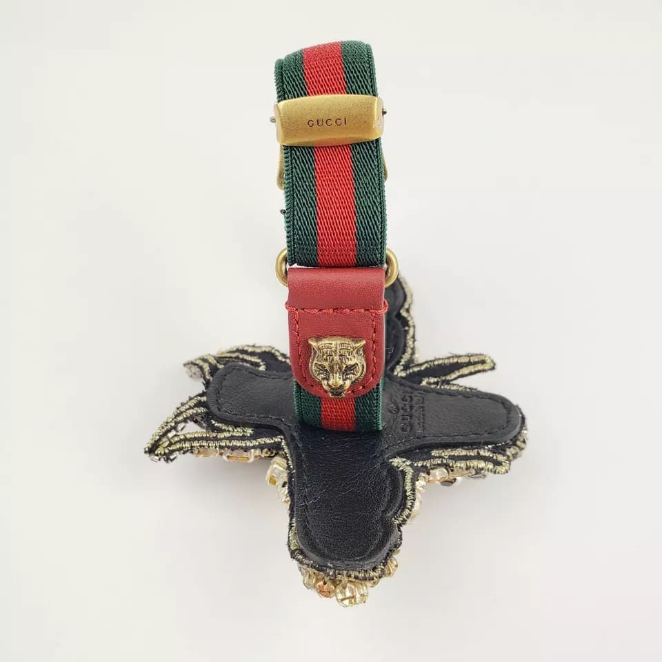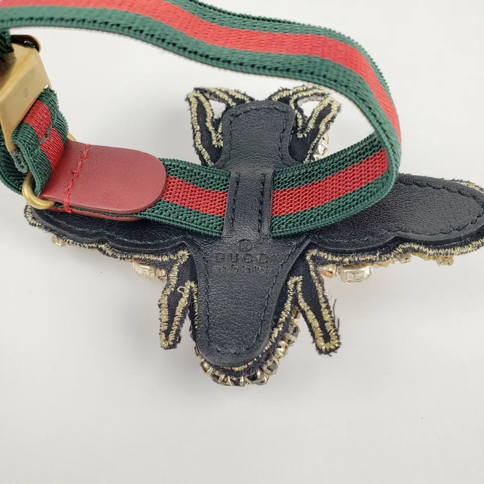Gucci Black/Gold Crystal Bee Bracelet w/Tiger Head and GRG Elastic Band