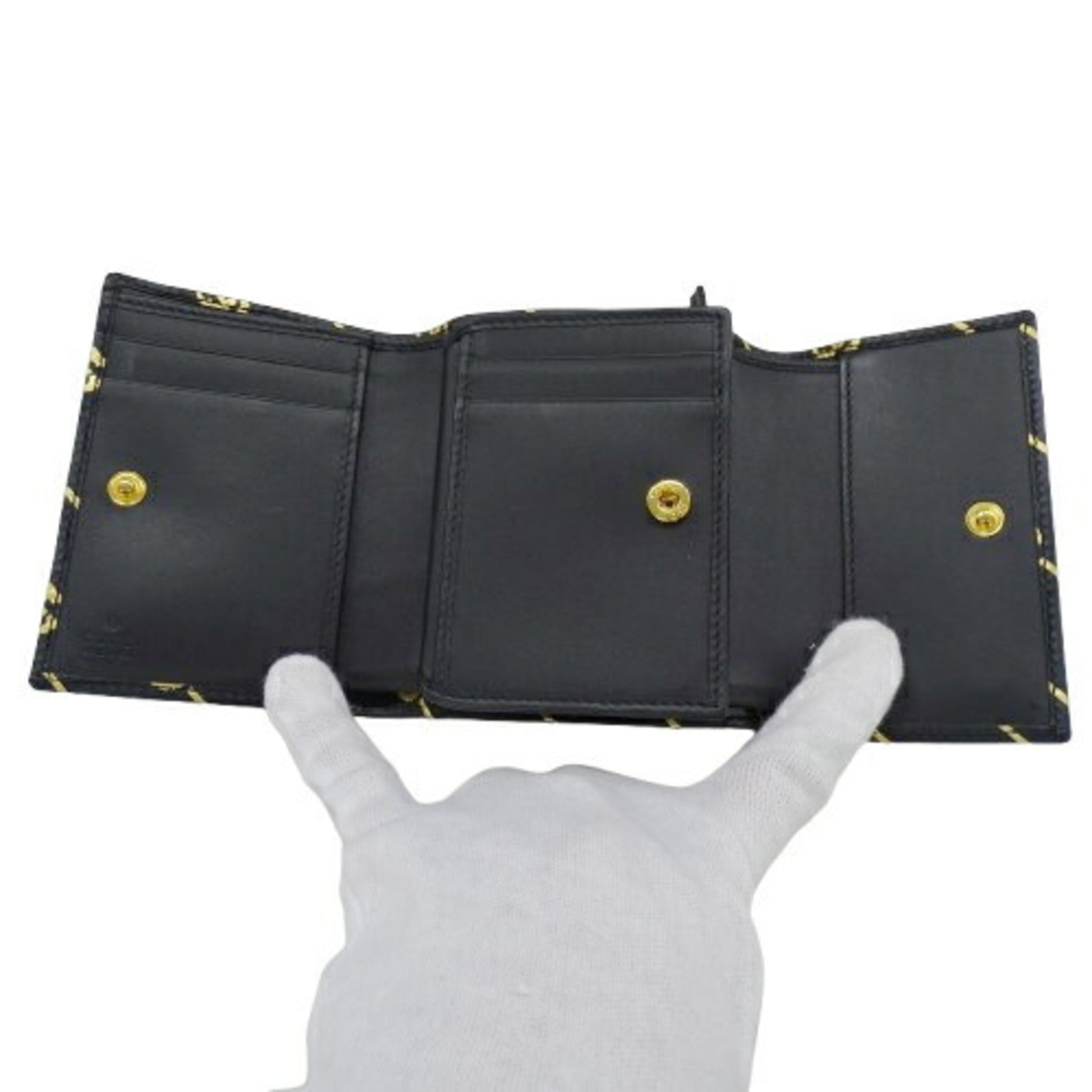 Gucci Black Gold Leather Wallet (Tri-Fold) ()