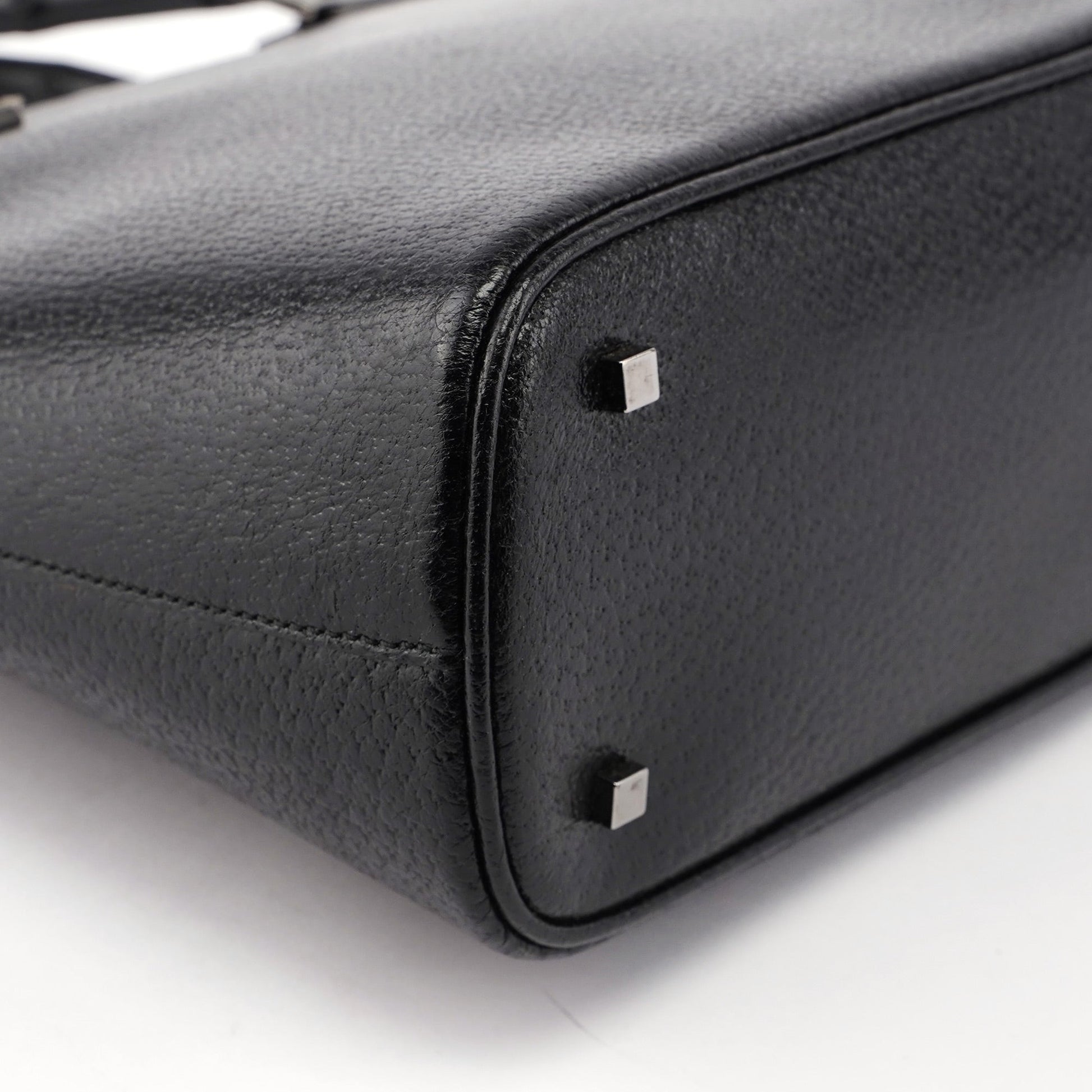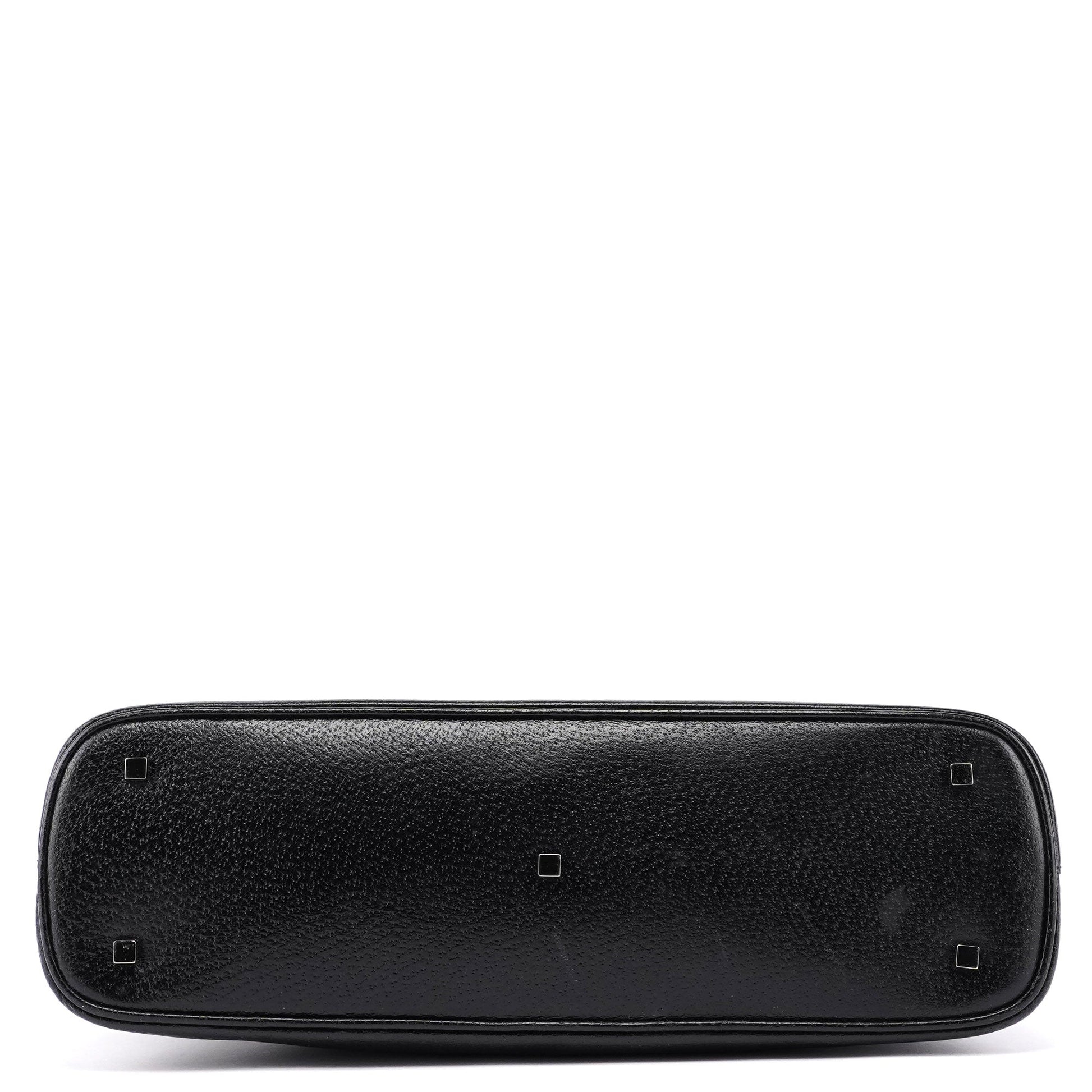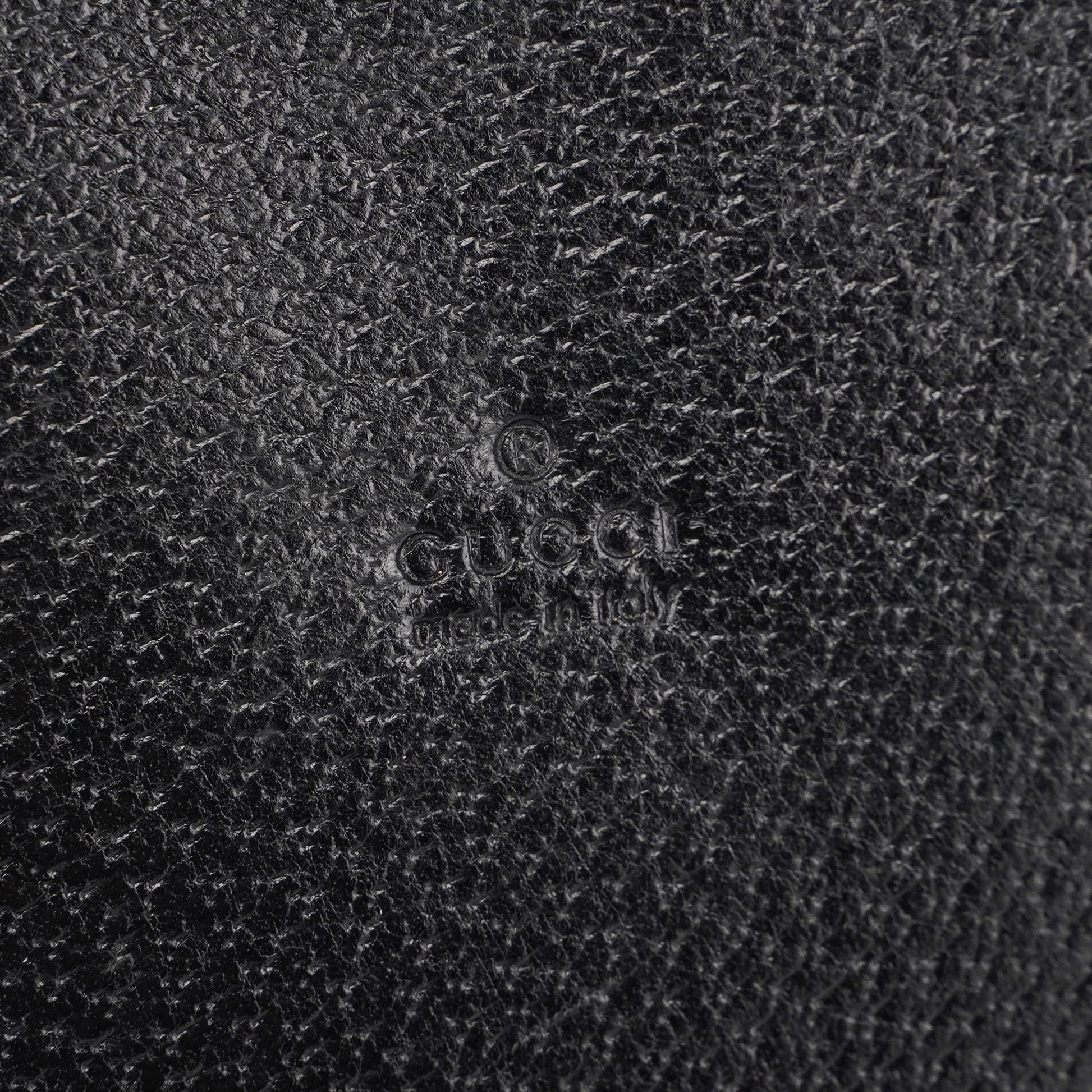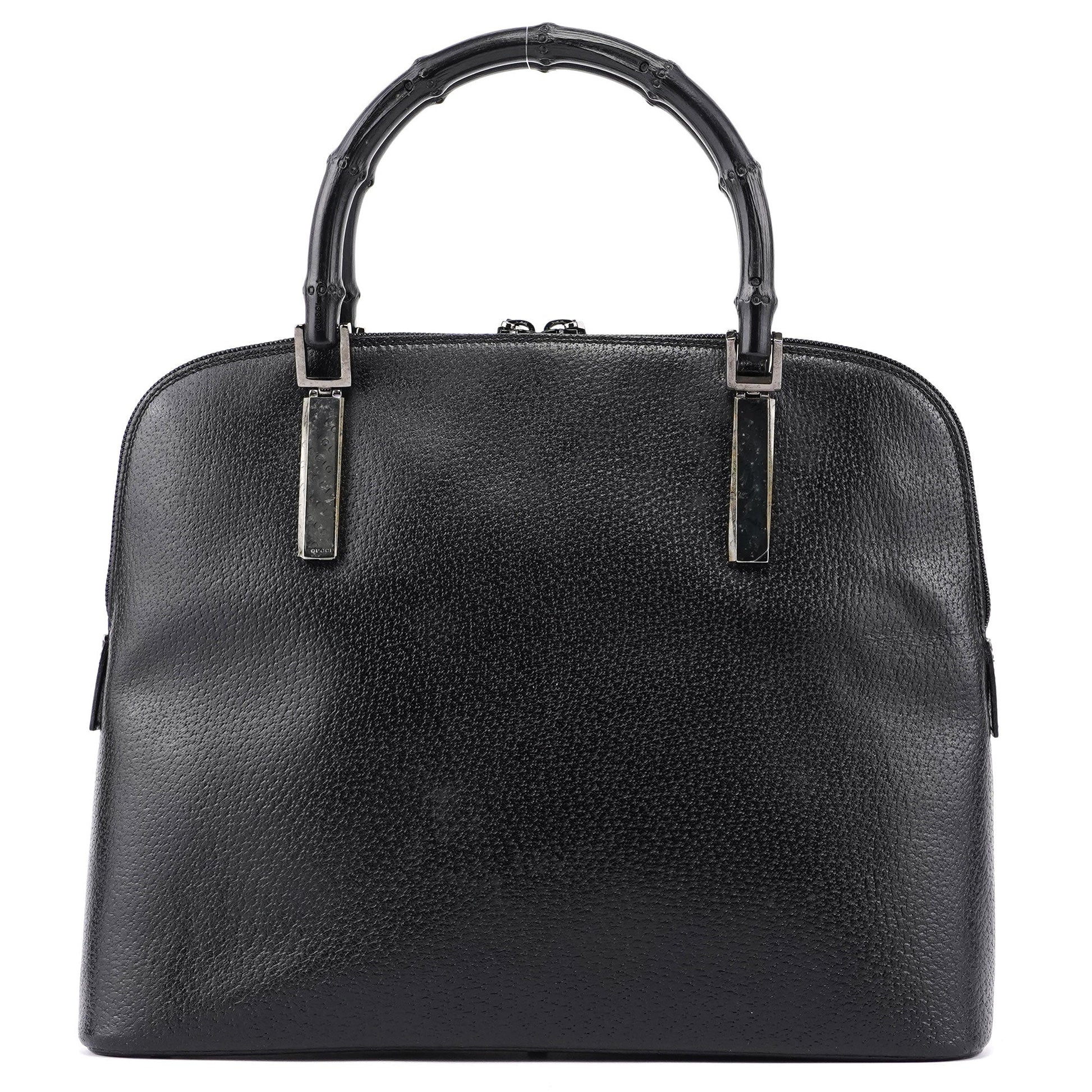 Designed by Tom Ford in the late 1990s, this Gucci Bamboo 2-Way bag is handcrafted from black leather with dual black bamboo handles engraved with the Gucci logo. It features silver-tone hardware, a zipper closure, and a leather-lined interior with a zipper pocket. A removable shoulder strap adds versatility, while the embossed Gucci logo at the front highlights its refined elegance.